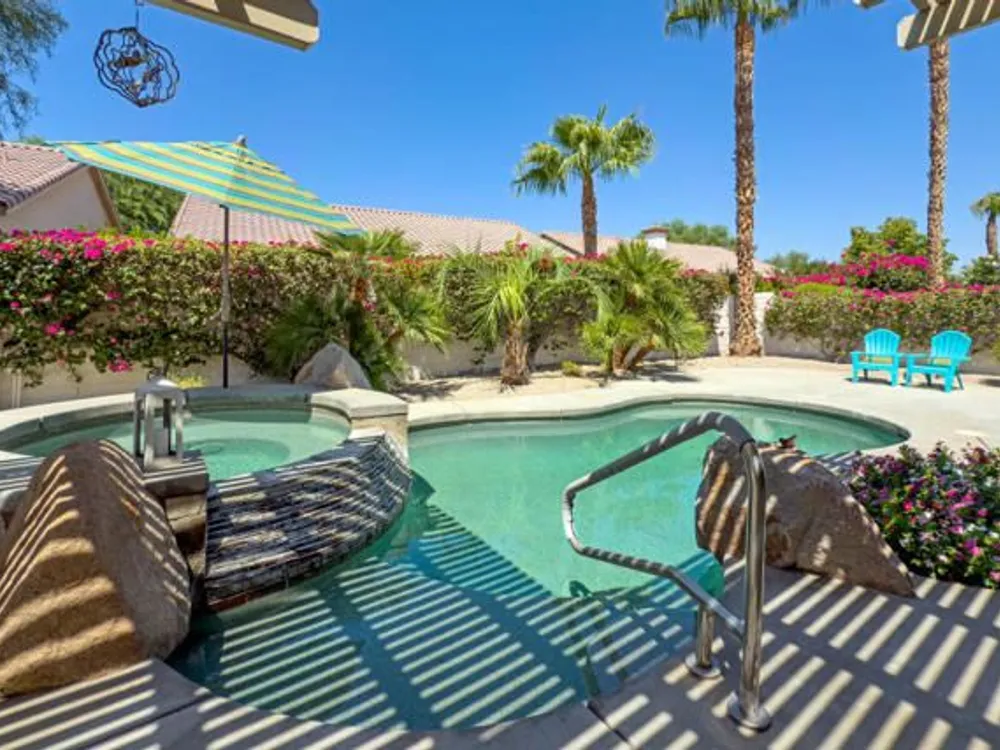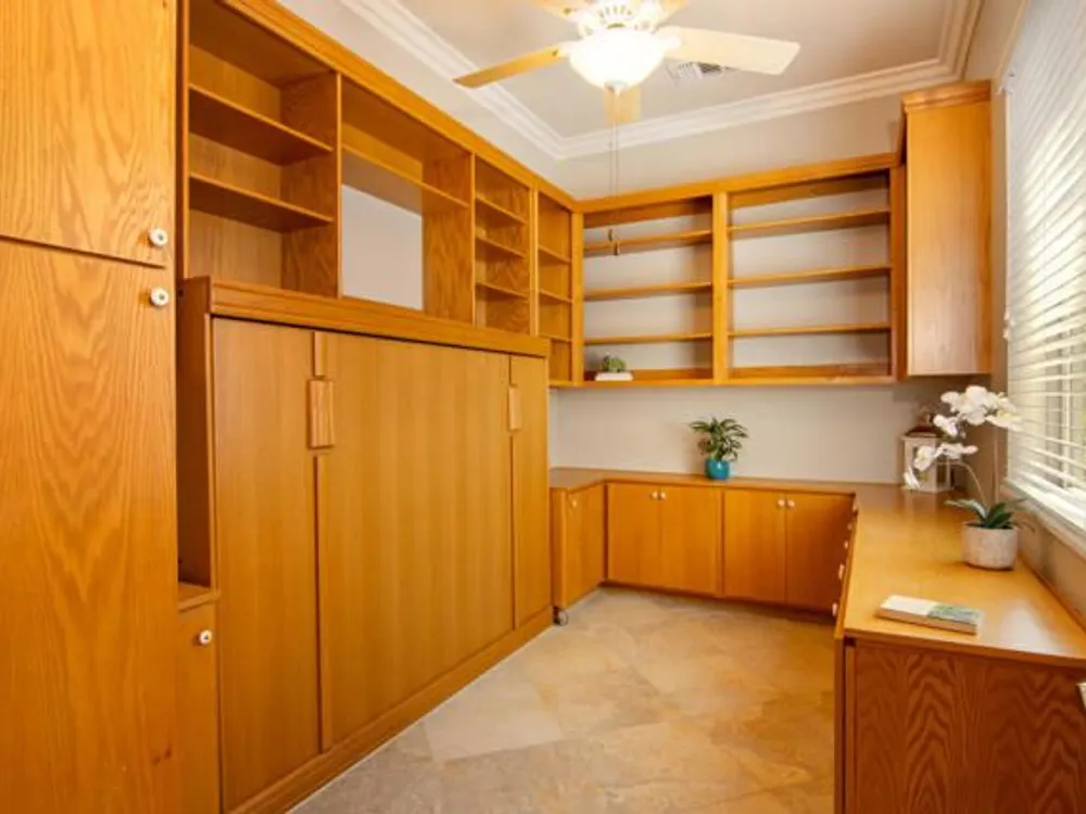 San Benito Model with Salt System Pool/Spa& Solar! Upgraded 4 Ton AC8-3-2021. Two Bedrooms, 2 Baths, Den/Office+ Hobby Room with Built-In Murphy Bed.... you'll appreciate the extra space the Hobby room provides which is Ideal for crafts, 2nd office, and/or to accommodate your extra guest(s). Freshly painted Neutral Interior. Crown Molding, Ceiling Fans, Recessed Lighting, Surround Sound in Great Room! Blinds throughout. Freshly painted Kitchen Cabinetry, New Hardware. Stainless Steel Fridge Included. Newer GE Profile Dishwasher. GE 5 Burner Cook Top, Plenty of cabinet storage, Granite counter tops, Lazy Susan, Pantry. Breakfast Nook with Custom Hutch for extra storage space! Granite Breakfast Bar, Formal Dining Area Open to Spacious Great Room with view of Private Pool/Spa. Slider door to access Covered Patio and Aluma-wood Cover. Easy maintenance landscaping. Lemon Tree, Lime Tree and Orange Tree! Primary Bedroom is King Sized with room for Armoire, Sofa, & Recliner! Primary bath with Dual Sink Vanity, Soaking tub, Separate Shower. Large Walk in Closet! Secondary bedroom is Queen Sized, bath located adjacent. Laundry Room with deep soaking sink, Counter space, freshly painted Cabinetry, with Lots of storage space. Washer and Dryer Included! 2 car garage, Golf Cart Bay. Evaporative Cooler in Garage! Located in Phase 1, closet proximity to main Montecito Clubhouse, Walking Trails! You'll Love the Del Webb Active Retirement Lifestyle with over 60 Clubs, 2 Clubhouses, Restaurant, 2 Bistros, 2 Golf Courses, Putting Greens, Driving Range! 2 Fitness Centers (one with indoor walking track), Golf Pro Shops, Tennis, Pickleball, Bocce, Shuffleboard. Miles of walking, 2 dog parks! Concerts, Performing Arts, Craft Rooms, Billiard Room, Banquet Room, Catering Kitchen. 2 Pools, Spas, One Indoor Pool/Spa. Aerobics, flex room & So Much More to Enjoy! Easy access to shopping, Dining, Entertainment, Acrisure Arena, Casinos!
