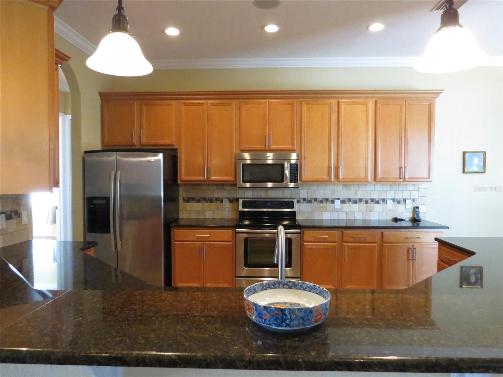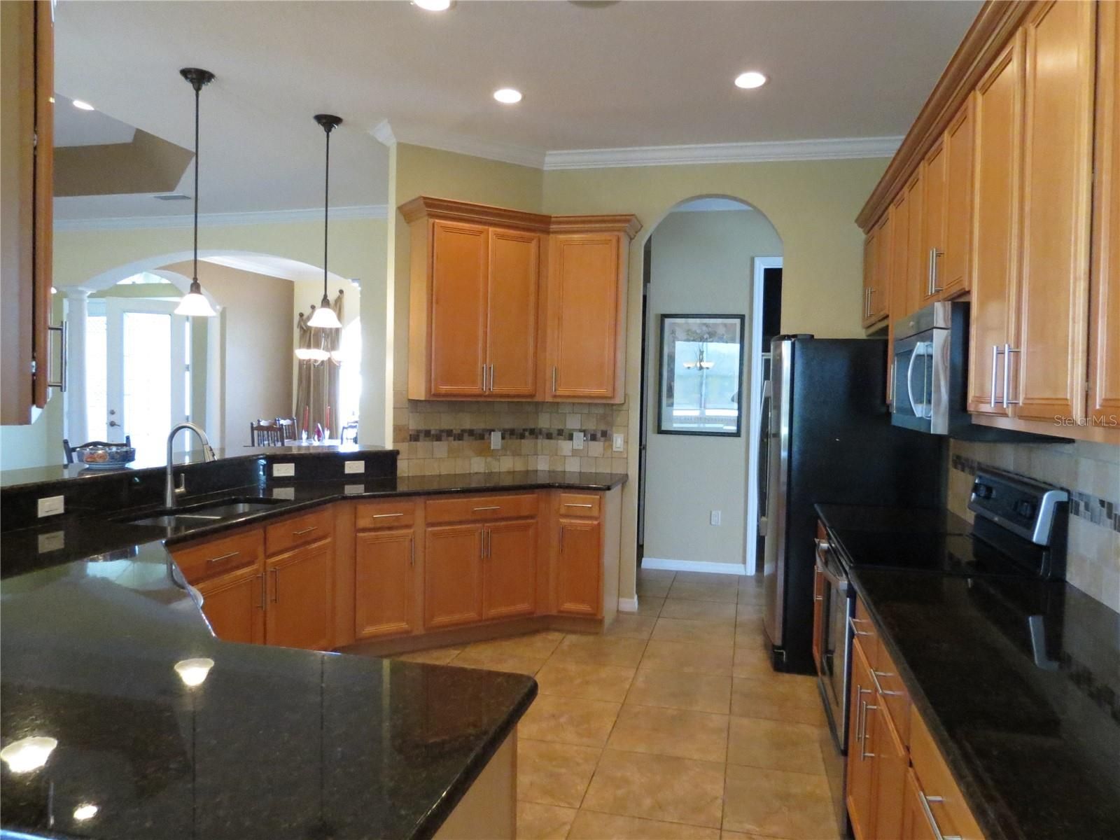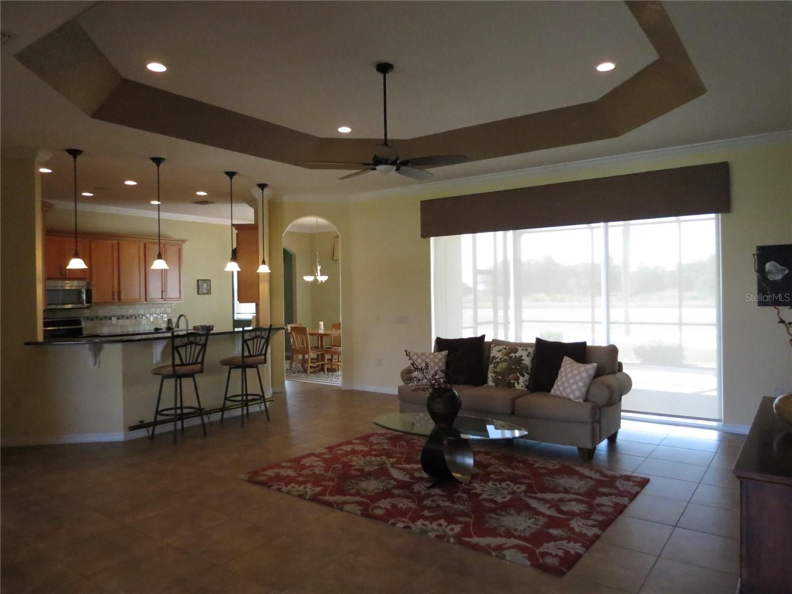 - Ceiling Fan(s), Eat-in Kitchen, Kitchen/Family Room Combo, Living/Dining Room, Solid Surface Counters, Split Bedrooms, Walk-In Closet(s)