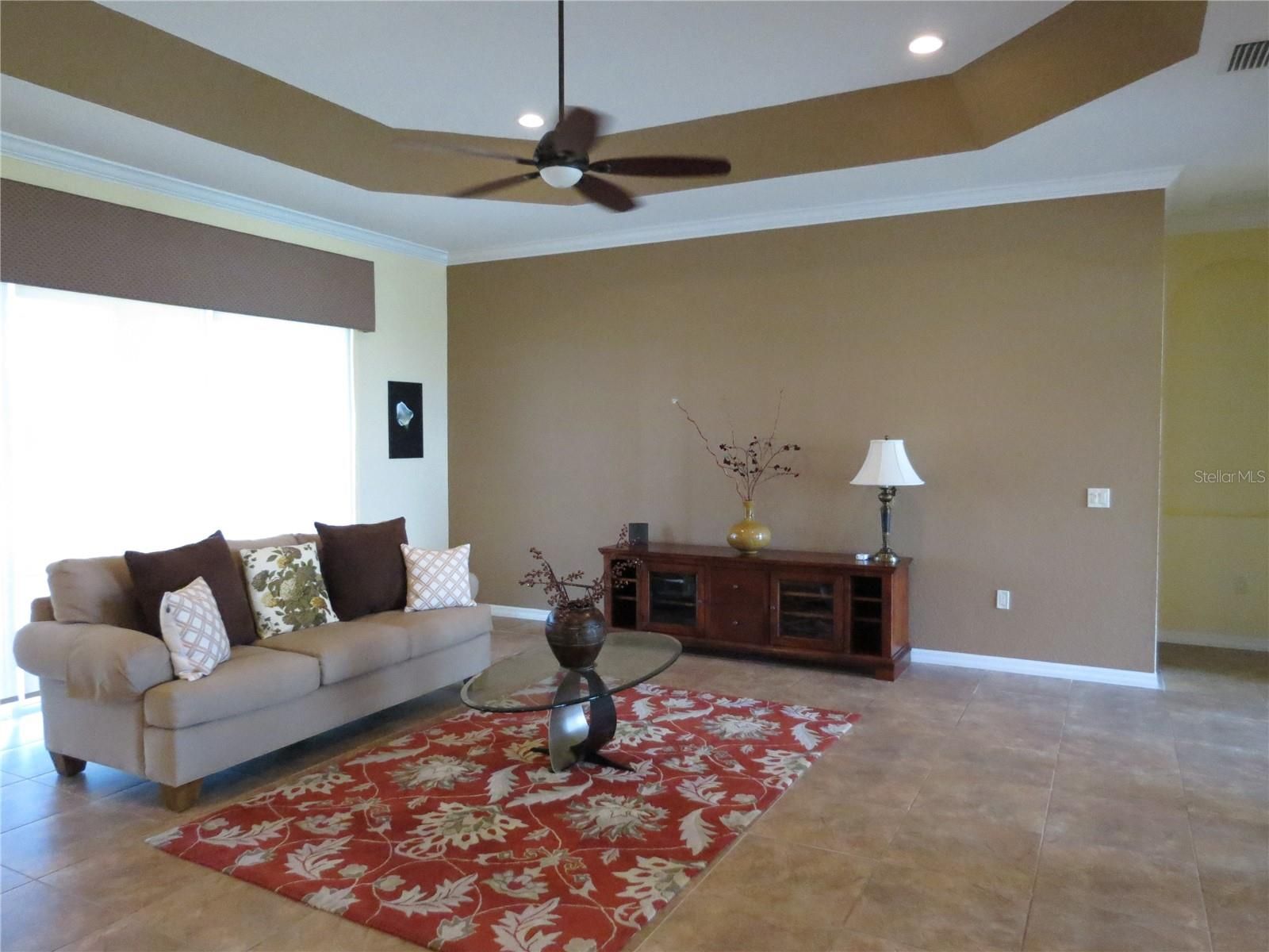 Lake Ashton is a 55+ golf community with all the amenities you could ask for including movie theatre, bowling alley, pickle ball, tennis, bocce, fitness centers, two clubhouses and so much more! This highly upgraded 3-bedroom, St John floor plan home is breathtaking! Once inside the elegant beveled double French glass door entry you will be amazed at the impeccably executed home finish. Such as, round columns frame the dining area, while raised archways lead to the kitchen and breakfast nook. The great room features coffered ceilings with recessed lighting, 8’ triple sliders that open to the lanai, a ceiling fan, and crown molding that flows throughout the home. The kitchen boasts a bank of drawers, 42" raised-panel custom cabinets with crown molding, stainless steel appliances, granite countertops, pendant lighting, and a breakfast bar. This home has split plan for privacy. Wake up to serene views from your primary bedroom, complete with sliding doors to the lanai. The en-suite bath features two walk-in closets, a walk-in shower, double vanities, a soaking tub, and a linen closet. The large, screened lanai overlooks the 13th hole has pond and nature views. There is also the Health and Fitness center which has an indoor pool, sauna, racquet ball and basketball, for your enjoyment. There are so many more amenities, clubs, activities, dances, and entertainment. Don't miss out on the opportunity to live in Lake Ashton, Central Florida's premier 55+ active adult resort style living community. This is a must see to appreciate home and community! SELLER MOTIVATED!!!