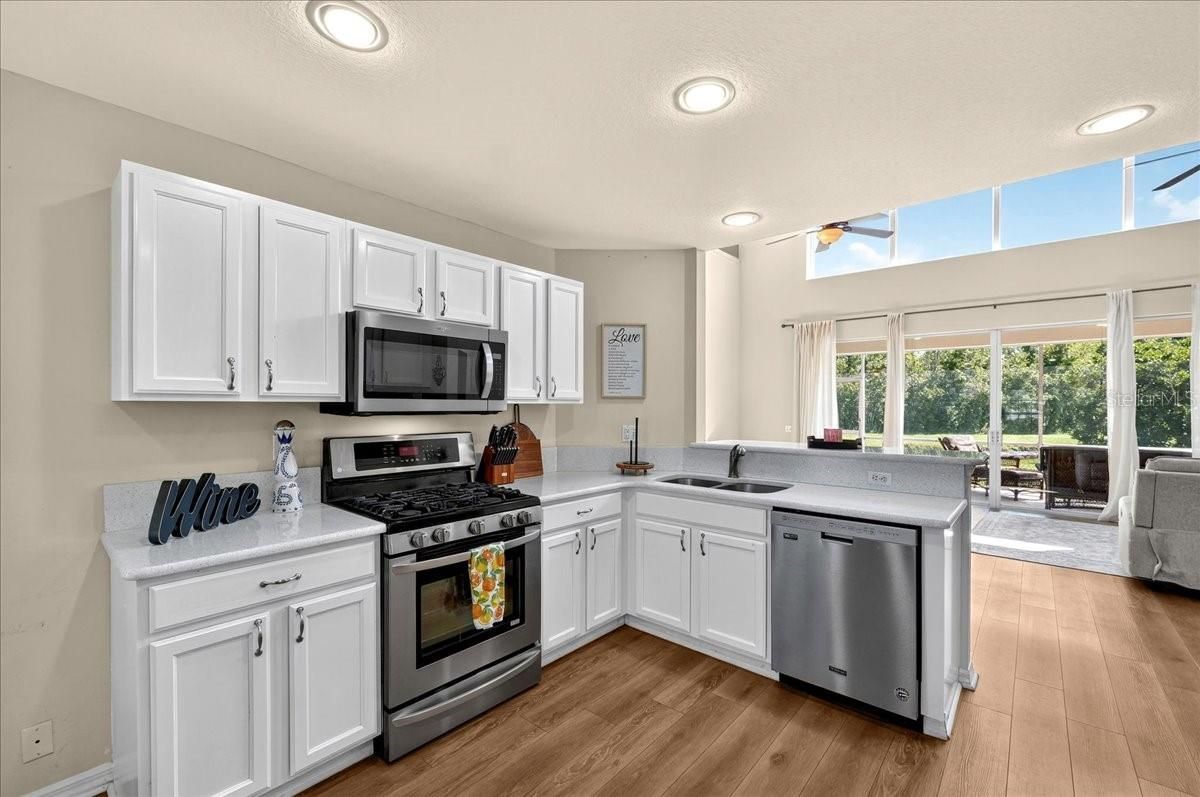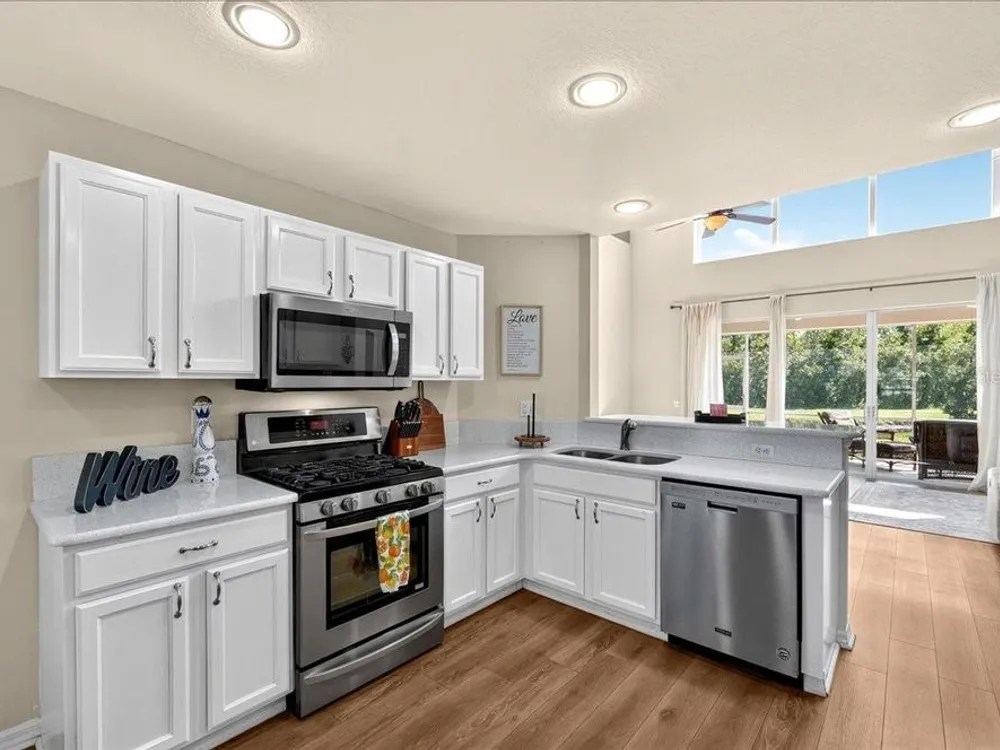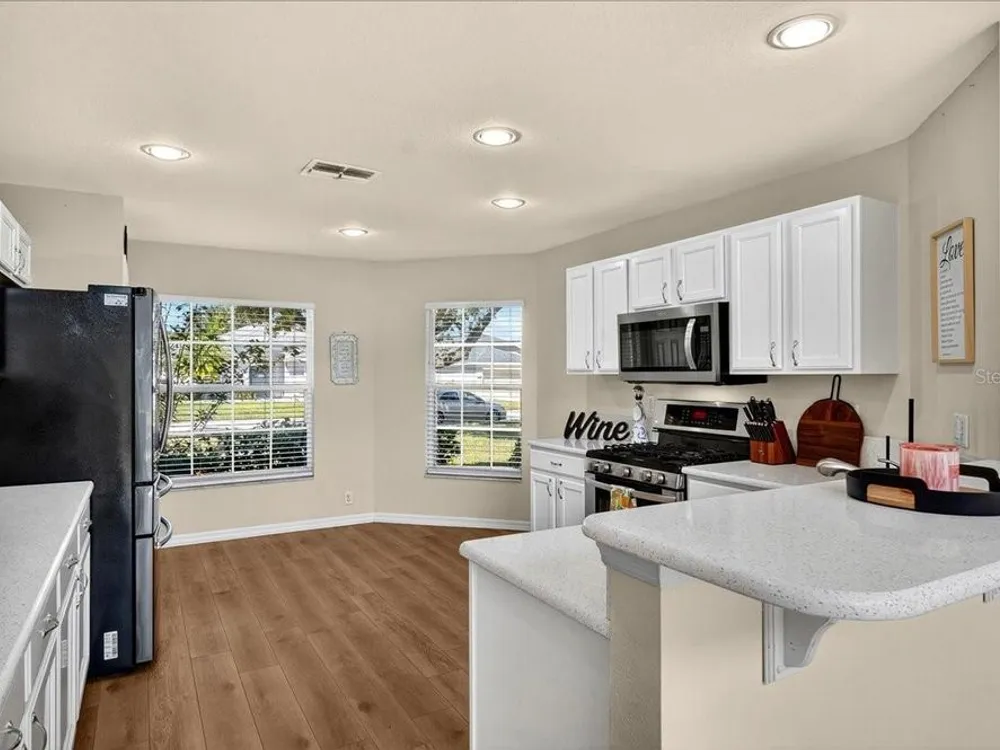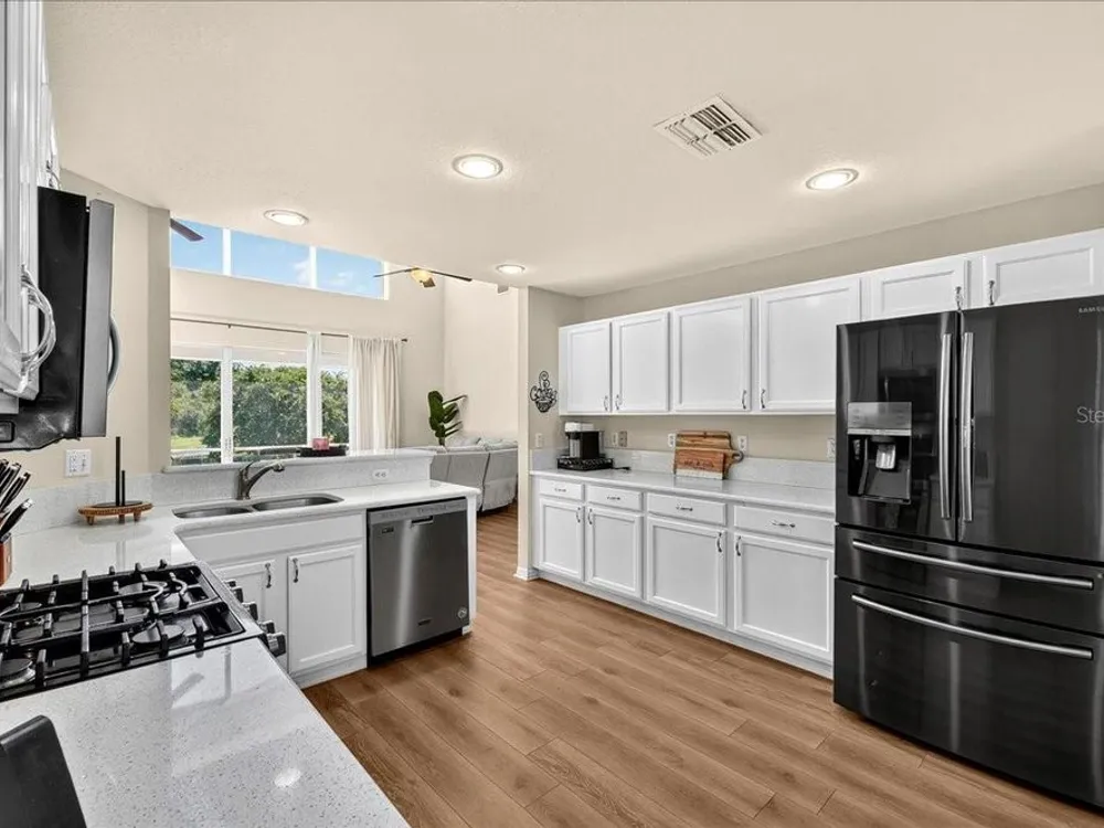 Beautifully Updated Waterfront Home! Welcome to this stunning 5-bedroom, 3-bath home located in the highly sought-after gated community of Carillon Lakes. Offering 2,788 sq. ft. of thoughtfully designed living space, this two-story residence perfectly combines modern updates, elegant style, and peaceful waterfront views. Step inside to find a bright, open floor plan accented by soaring ceilings, luxury vinyl plank flooring, and expansive picture windows that fill the home with natural light. The four-panel sliding glass doors open completely on both sides, creating a seamless transition between indoor and outdoor living while showcasing the tranquil lake beyond. The beautifully remodeled kitchen is a showpiece—featuring quartz countertops, stainless steel appliances, abundant cabinetry, and a cozy breakfast nook. The adjoining dining and living areas provide plenty of room for entertaining or relaxing with family and friends. The main floor features three spacious bedrooms, including the serene primary suite with peaceful lake views, dual closets, and a luxurious en-suite bath with quartz counters, frameless glass shower, and stylish finishes. A versatile additional bedroom on this level is ideal for a home office or den. Upstairs, you’ll find a flexible loft space—perfect for a playroom, media room, or second office—along with two additional bedrooms and a full bath. Enjoy the best of Florida living from the oversized screened lanai overlooking the water—a quiet spot to unwind, entertain, or simply take in the view. Carillon Lakes offers residents resort-style amenities, including a clubhouse, pool, tennis and pickleball courts, fitness center, walking trails, playground, and a fishing pier. The community’s convenient location near the Polk Parkway and I-4 provides easy access to Tampa, Orlando, shopping, dining, and medical facilities. With updates including a new roof (2018), HVAC (2018), water heater (2020), and full kitchen and bath renovations (2016), plus no carpet throughout, this home is move-in ready and low-maintenance. Don’t miss your chance to own this exceptional waterfront property in one of Lakeland’s most desirable neighborhoods—schedule your private showing today!