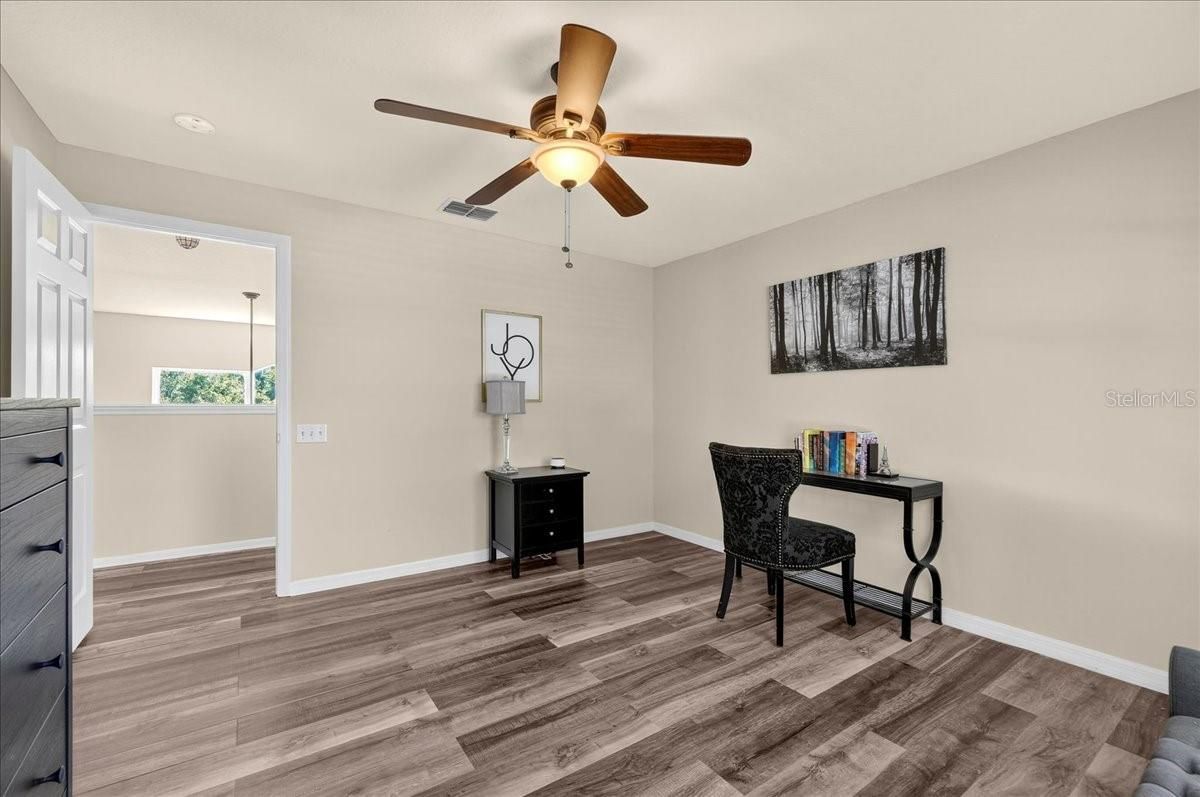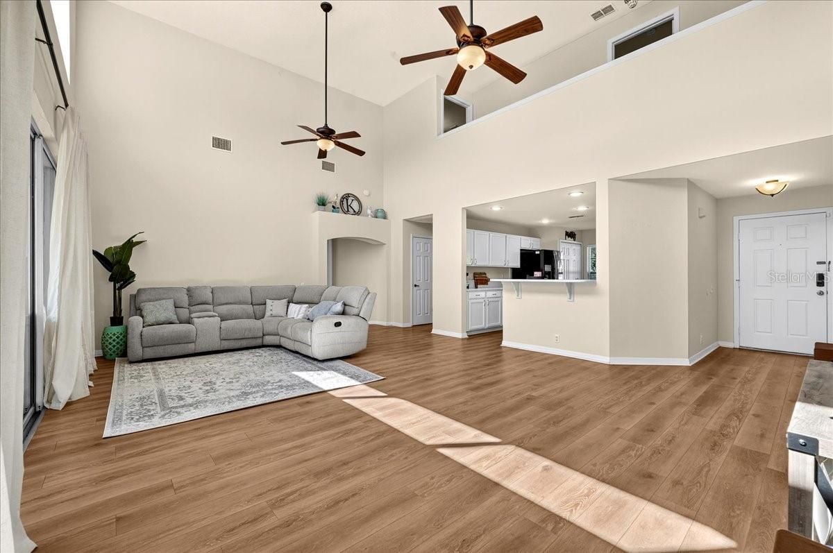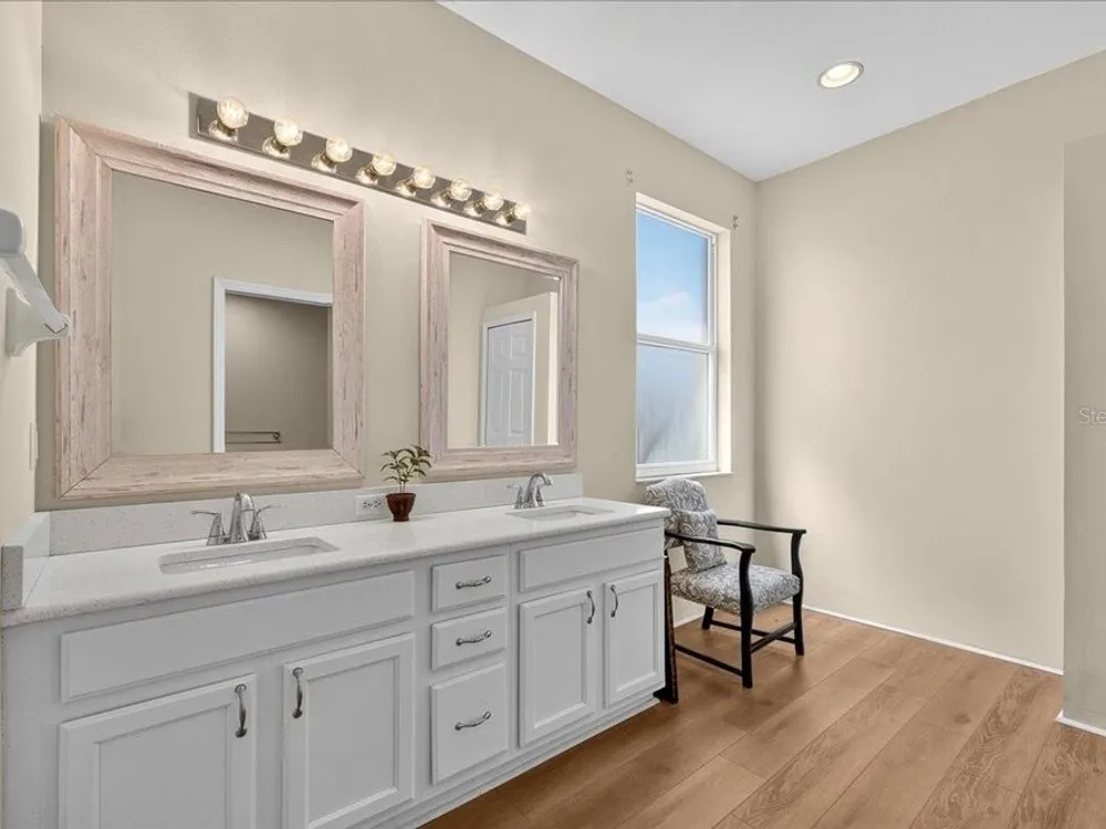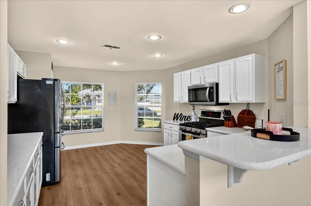 Beautifully Updated Waterfront Home! Welcome to this stunning 5-bedroom, 3-bath home located in the highly sought-after gated community of Carillon Lakes. Offering 2,788 sq. ft. of thoughtfully designed living space, this two-story residence perfectly combines modern updates, elegant style, and peaceful waterfront views. Step inside to find a bright, open floor plan accented by soaring ceilings, luxury vinyl plank flooring, and expansive picture windows that fill the home with natural light. The four-panel sliding glass doors open completely on both sides, creating a seamless transition between indoor and outdoor living while showcasing the tranquil lake beyond. The beautifully remodeled kitchen is a showpiece—featuring quartz countertops, stainless steel appliances, abundant cabinetry, and a cozy breakfast nook. The adjoining dining and living areas provide plenty of room for entertaining or relaxing with family and friends. The main floor features three spacious bedrooms, including the serene primary suite with peaceful lake views, dual closets, and a luxurious en-suite bath with quartz counters, frameless glass shower, and stylish finishes. A versatile additional bedroom on this level is ideal for a home office or den. Upstairs, you’ll find a flexible loft space—perfect for a playroom, media room, or second office—along with two additional bedrooms and a full bath. Enjoy the best of Florida living from the oversized screened lanai overlooking the water—a quiet spot to unwind, entertain, or simply take in the view. Carillon Lakes offers residents resort-style amenities, including a clubhouse, pool, tennis and pickleball courts, fitness center, walking trails, playground, and a fishing pier. The community’s convenient location near the Polk Parkway and I-4 provides easy access to Tampa, Orlando, shopping, dining, and medical facilities. With updates including a new roof (2018), HVAC (2018), water heater (2020), and full kitchen and bath renovations (2016), plus no carpet throughout, this home is move-in ready and low-maintenance. Don’t miss your chance to own this exceptional waterfront property in one of Lakeland’s most desirable neighborhoods—schedule your private showing today!