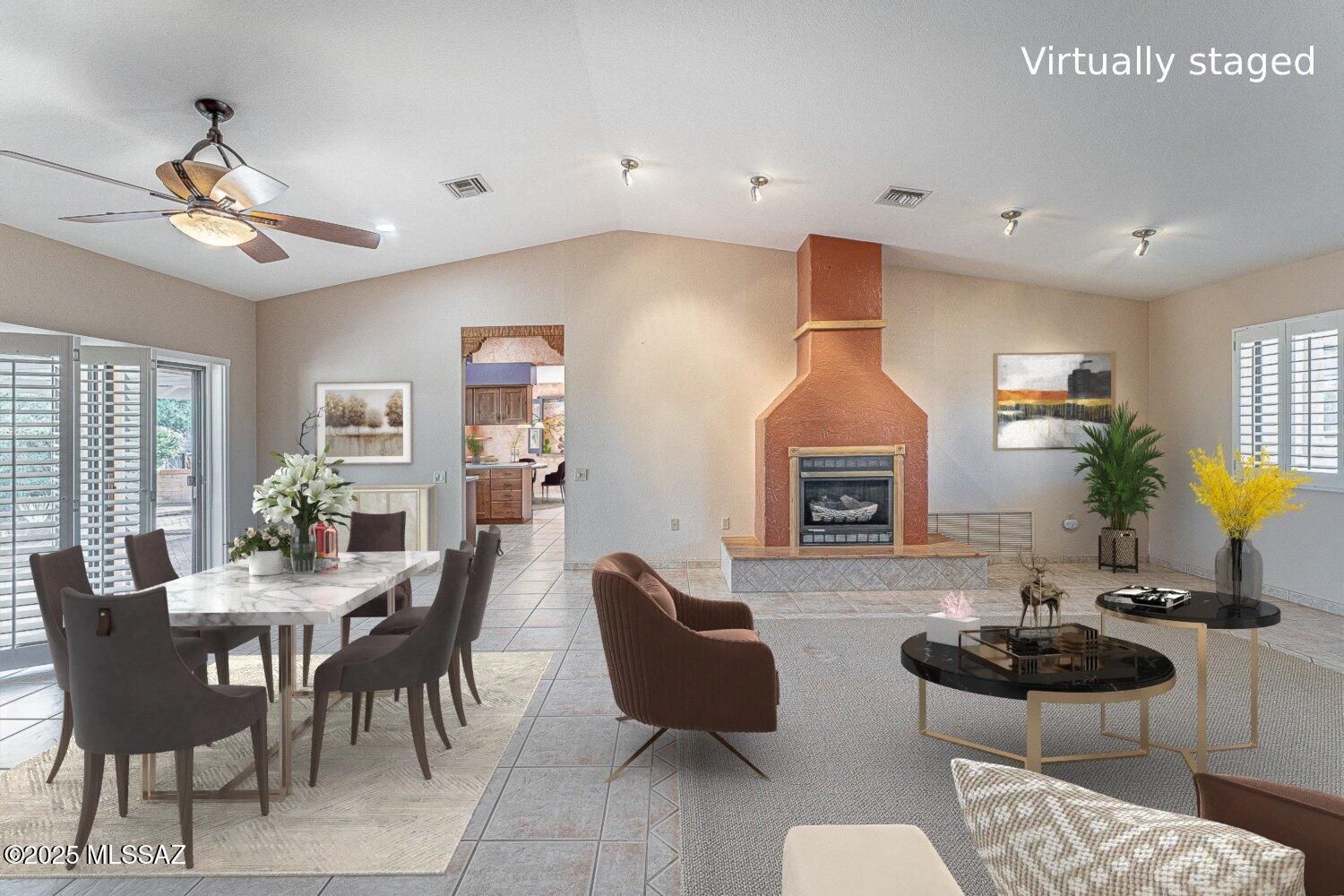 Fantastic Golf Course Home with Mountain Views and Modern Upgrades! This fantastic golf course property, sitting on a ⅓ acre lot, combines all the charm of Southwest style with the comfort of modern updates. Step inside to a spacious living and dining area with tall ceilings, a cozy gas fireplace, plantation shutters, and beautiful wood accents that make the space feel warm and inviting. The property is range-priced, with the seller open to negotiating offers between $399,900 and $420,000.You'll love the recently remodeled kitchen featuring quartz counters, sleek self-close cabinets, stainless steel appliances, and a striking backsplash. It opens up to a bright breakfast nook with extra built-in cabinetry--great for storage and everyday convenience! Tile flooring runs throughout the