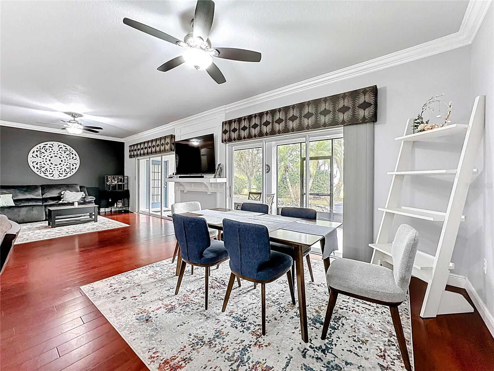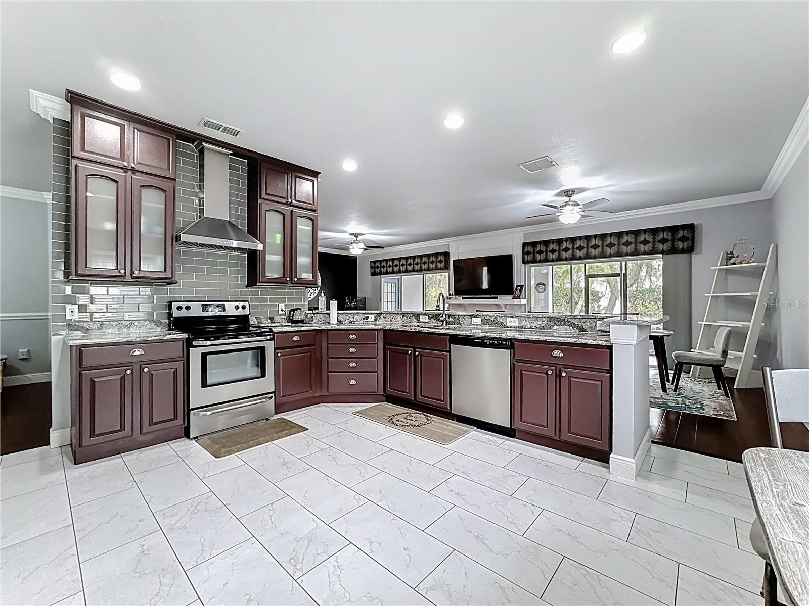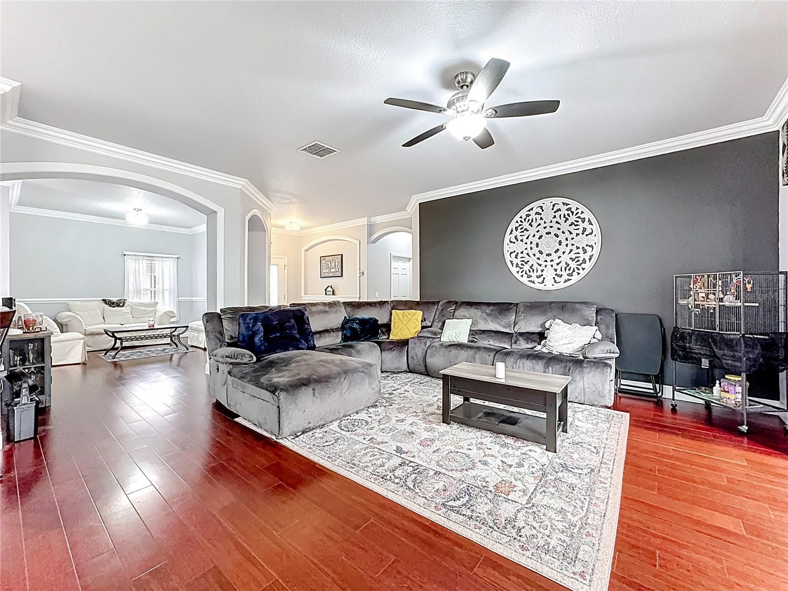 - Ceiling Fan(s), Crown Molding, Kitchen/Family Room Combo, Living/Dining Room, Open Floorplan, Solid Surface Counters, Stone Counters, Walk-In Closet(s)