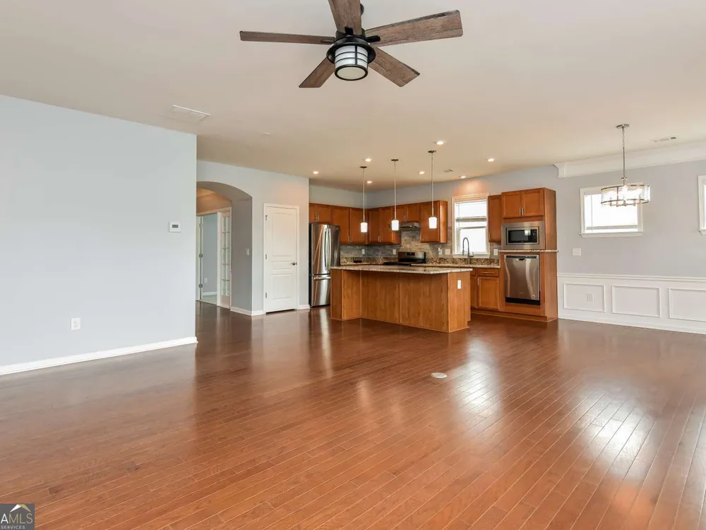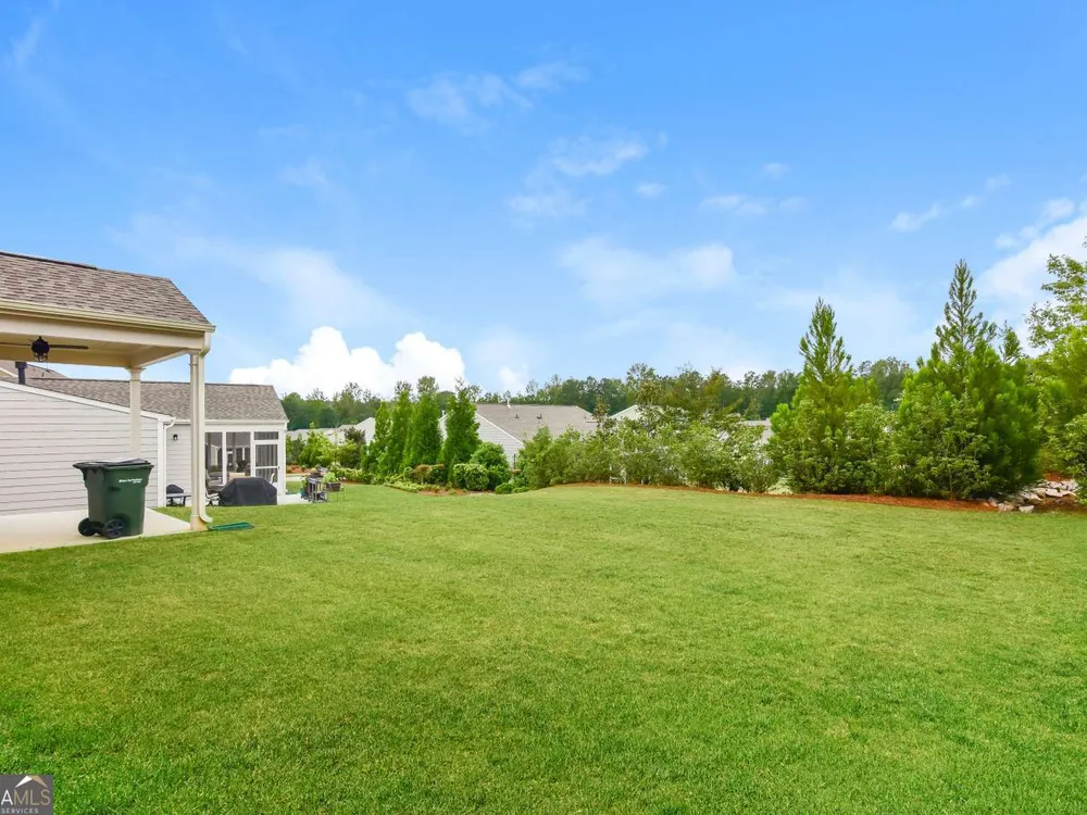 Welcome to this beautiful 2019-built ranch home in the resort-style, age-qualified community of Sun City Peachtree. Offering approximately 1,600 sq. ft. of thoughtfully designed living space, this home features 2 bedrooms, 2 full bathrooms, and a versatile flex room perfect for an office, den, or hobby space. The open kitchen is a chef's delight with quartz countertops, stainless steel appliances, and a center island that flows seamlessly into the great room and light-filled dining area. Hardwood flooring enhances the main living spaces, while triple sliding doors open to a covered patio overlooking a level, HOA-maintained yard-ideal for easy indoor-outdoor living. The primary suite provides a private retreat with a double vanity bath and a spacious walk-in closet. A secondary bedroom with its own full bath offers comfort for guests. Additional highlights include a two-car garage, energy-efficient HVAC, and washer/dryer for move-in ease. As a Sun City Peachtree resident, you'll enjoy a vibrant lifestyle with access to world-class amenities including indoor and outdoor pools, a fitness center, golf, tennis, pickleball, clubhouse dining, and a full calendar of social events. Convenient shopping and medical services in Griffin are just minutes away. Don't miss this opportunity to enjoy low-maintenance living in one of Georgia's premier active adult communities