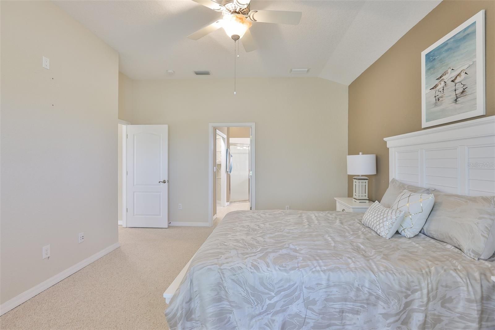 - Ceiling Fan(s), High Ceilings, Living/Dining Room, Open Floorplan, Solid Surface Counters, Solid-Wood Cabinets, Split Bedrooms, Walk-In Closet(s)