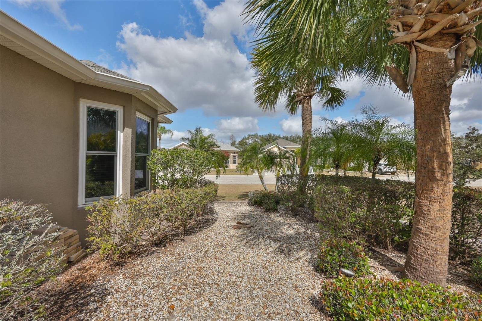 CHECK OUT THIS BEAUTY in the DESIRABLE RENAISSANCE COMMUNITY on a large corner lot of a quiet cul de sac street! The two bedrooms and office/den that can be used as a third bedroom, allow you space for friends and family to visit you in sunny Florida. You will enjoy getting outdoors with your morning coffee and/or a glass of wine in the evenings on your HUGE BRICK PAVER LANAI with lovely WATER VIEWS and the golf course beyond. Travel by golf cart anywhere in Sun City…the gorgeous community center, pool, clubs, visiting friends, golfing, restaurants, banks, medical facilities, grocery stores, and even the super Walmart. This split bedroom OPEN FLOOR PLAN is graced with tile in the main living areas, kitchen, baths and laundry, beautiful laminate in the office/den, and carpet in the two bedrooms. The already large great room was extended an extra 10x24’ giving you space to do with as you please. The kitchen has solid surface counters, stainless steel appliances including a NEW ELECTRIC RANGE in 2023, and wood cabinets that include some handy drawers. The cabinets are topped with crown molding for a classy touch. There is a breakfast bar where you can place some stools so friends can visit while you are in the kitchen. Recent upgrades/improvements include the NATURAL GAS WATER HEATER (2024), ROOF (2022), HVAC (2018), and ALL SLIDERS TO THE LANAI (2018). Club Renaissance is only a few minutes away where you have access to dining, social activities, fitness classes, the spa, a resort-style pool, and much more. Centrally located between Sarasota/Bradenton and the Tampa Bay Area. And if you love to get sand between your toes, you are not far from some Award-Winning Gulf Beaches!