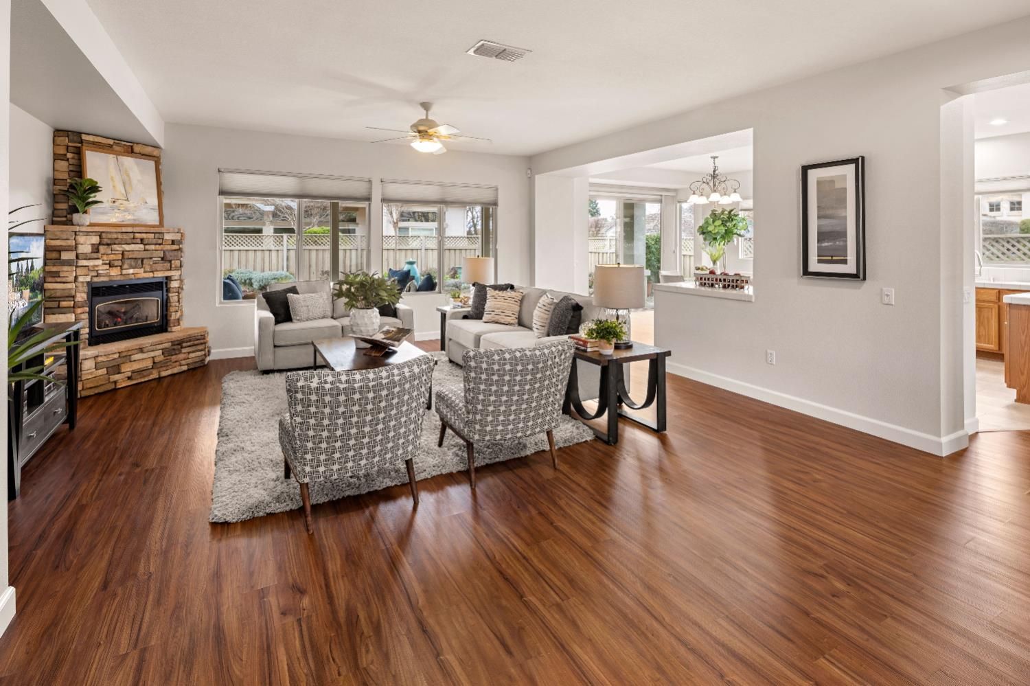 - 1, Living Room,Raised Hearth,Family Room,Stone,Gas Piped