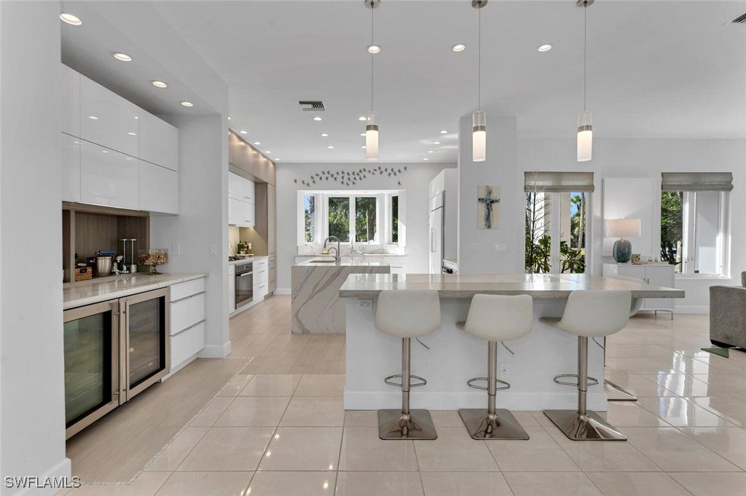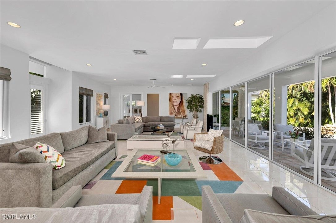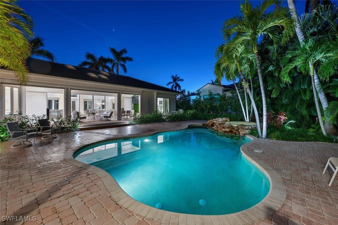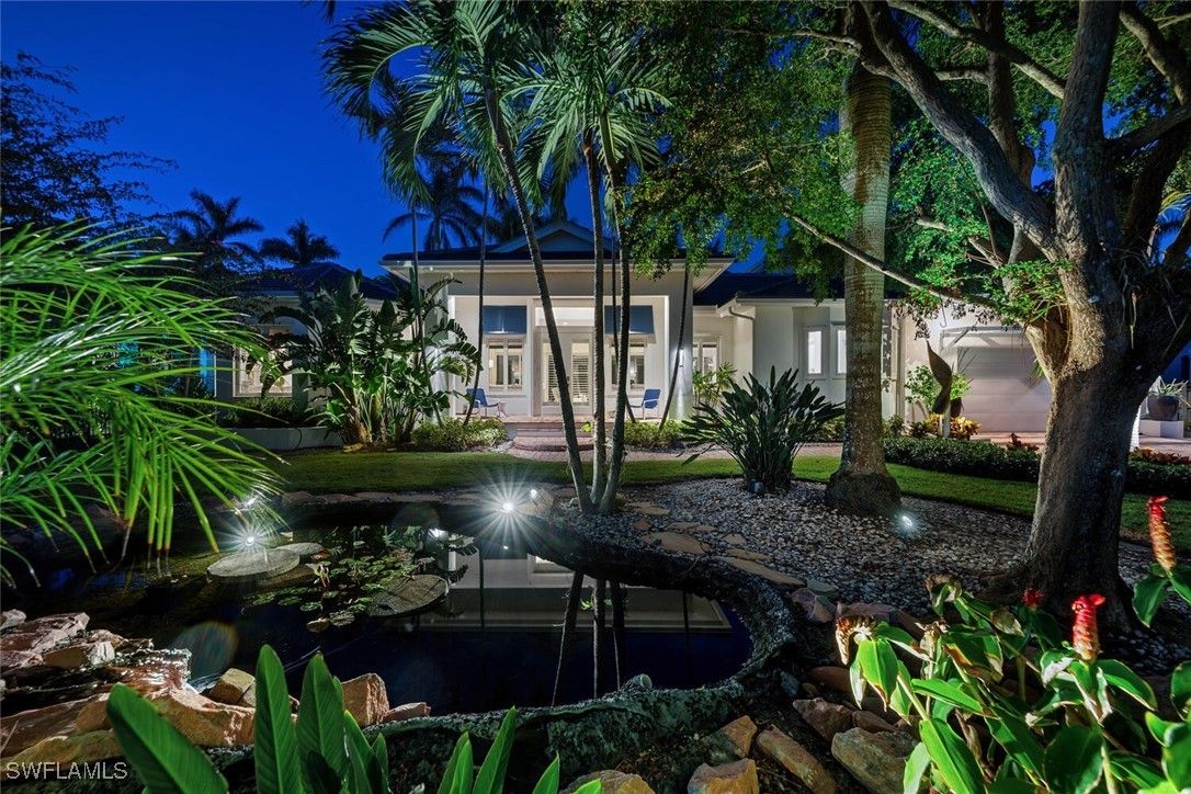 405 Rudder Road in Naples, Florida, is a stunning coastal residence located in the exclusive Moorings neighborhood. This beautifully designed home offers 4,405 square feet of elegant living space on a lush 0.39-acre lot. Built in 2003 and recently updated, the property features four bedrooms, including two ensuite master suites, along with three full bathrooms and one half bath. Inside, the designer-decorated interiors blend luxury with comfort, featuring a state-of-the-art kitchen equipped with top-tier Miele appliances. The spacious layout includes a den, a loft, and a balcony overlooking the sparkling pool. High ceilings and large windows bring in natural light, creating an inviting and open atmosphere. The outdoor space is just as impressive, boasting a tranquil front yard pond, tropical landscaping, and a private courtyard with a heated gas pool, spa, and outdoor shower. A whole-house generator ensures uninterrupted comfort. Residents of this home enjoy access to the exclusive Moorings Private Beach Club, offering a pristine beach experience just minutes away. The property is also conveniently located near the upscale shopping and fine dining of 5th Avenue and 3rd Street, making it an ideal retreat for those who appreciate the best of Naples living. Listed at $4,000,000, this exceptional home offers luxury, privacy, and prime location in one of Naples' most sought-after communities.