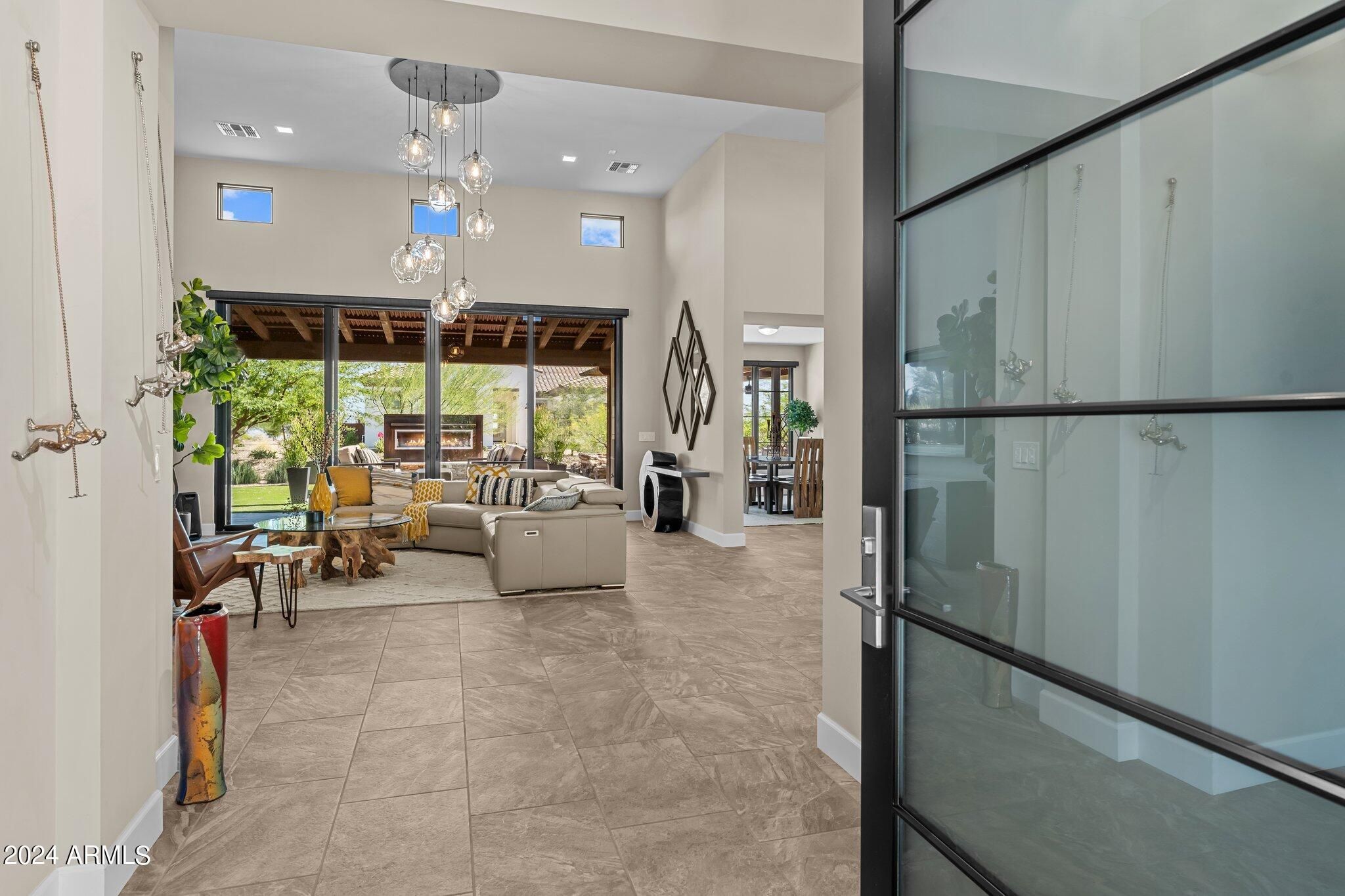 Welcome to this stunning custom home, meticulously designed with owned solar, a battery storage and an EV charging port. Step inside through the elegant custom glass entry doors and be captivated by the open floor plan, flooded with natural light and highlighted by exquisite tile flooring throughout. The living space flows seamlessly into the dining and kitchen areas, adorned with rustic yet sophisticated finishes that create an inviting ambiance.