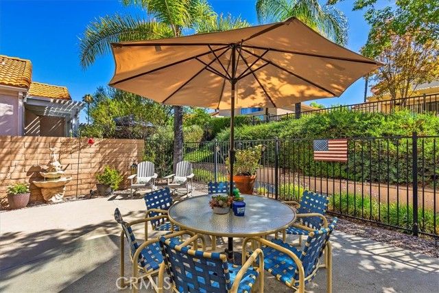 Move-in ready and beautifully maintained, this charming home boasts a bright interior with vaulted ceilings! Located in the highly desirable 55+ gated community of The Colony, this truly TURN-KEY, single-story offers residence a rare opportunity to experience upscale, active, adult living in one of America’s safest cities. Thoughtfully designed for comfort and entertainment, the home features 2 bedrooms, 2 updated bathrooms, a spacious living room, with a bright and airy atmosphere throughout. Upon entry, you’ll be greeted by a large and inviting gated courtyard leading to the front door. The cozy living area features a fireplace, creating a perfect spot for relaxation. The updated kitchen is equipped with modern appliances, new cabinetry, sleek counter-tops and a convenient breakfast nook. Wood tile flooring throughout adds both style and durability. The primary suite offers a private retreat with new windows and carpet. The updated en-suite bathroom is complete with a shower and dual sinks. The additional bedroom is generously sized and share a well-appointed updated second bathroom. The home features a two-car attached garage and a private backyard space with new iron fencing and gate leading to a walking path. Residents of The Colony enjoy access to pickleball, tennis, bocce ball, a sparkling pool and spa, and a scenic golf course that winds through the community. Don’t miss this opportunity to live in one of the area’s most desirable 55+ neighborhoods!