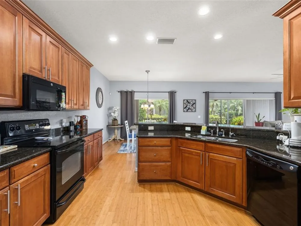 Welcome to this stunning, move-in-ready home located in one of Lake Wales’ most desirable 55+ communities. Featuring 2 bedrooms and 2 bathrooms, this property has been meticulously maintained and thoughtfully upgraded for comfort and style. Step through the screened entryway and into the home through elegant French doors, where you’ll find a spacious open layout with bamboo flooring throughout the main living areas. The oversized living room offers ample space for relaxing or entertaining, flowing seamlessly into a customized kitchen complete with 42” all-wood cabinets, granite countertops, and a modern design ideal for any home chef. The master suite includes dual closets and an ensuite bath featuring an updated walk-in tile shower and matching granite vanity. The second bedroom is generously sized with convenient access to a full guest bathroom. Enjoy the Florida lifestyle year-round in your beautifully extended screened lanai, surrounded by lush greenery, mature plants, and trees—creating a peaceful, private outdoor retreat. The roof is just 2 years old, adding extra peace of mind. Located in a vibrant, amenity-rich community that spans over 1,200 scenic acres and is nestled among three spectacular lakes and nature preserves, you’ll enjoy a serene environment with opportunities for walking, biking, and wildlife viewing.