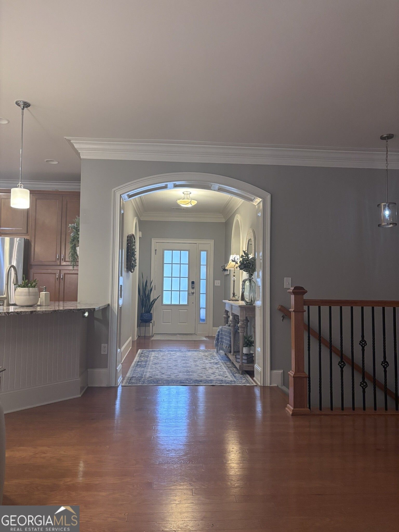 Welcome to this beautifully maintained home in the highly desirable Sun City Peachtree active adult community. Designed for comfortable living and effortless entertaining, this residence features an open and inviting floor plan filled with natural light and neutral finishes. The spacious great room flows seamlessly into the dining area and bright sunroom, creating the perfect setting for both everyday living and hosting guests. The kitchen offers abundant cabinetry, ample counter space, and a functional layout with an adjoining breakfast area. The owner's suite provides a relaxing retreat with generous space, large windows, and a private bath. A well-appointed guest bedroom and guest bath featuring a steam shower offer comfort and flexibility for visitors. Upstairs, a dedicated office provides the perfect space for working from home, hobbies, or quiet reading. The finished basement greatly expands the living area and includes a large TV and gathering room, two additional bedrooms, a full bath, a workout area, and a craft/workroom - ideal for guest, entertaining, or multi-purpose use. Enjoy outdoor living on the custom patio overlooking the private fenced and landscaped yard, perfect for morning coffee, evening relaxation or entertaining by the gas fire pit. Additional features include: Extensive custom architectural features (coffered ceiling, arched entries, built-in cabinetry, crown molding), Open-concept living and dining areas, Light-filled sunroom, Upstairs office, Steam shower in guest bath, Finished basement with multiple living space, Ample storage throughout including motorized lift in garage, Move-in ready, Low-maintenance exterior. Located in Sun City Peachtree, residents enjoy access to exceptional amenities, including a clubhouse, golf course (addtl cost), fitness center, indoor and outdoor pools, tennis, pickleball, walking trails, and a full calendar of community activities. Experience comfortable living in a vibrant and welcoming neighborhood. Owner/agent