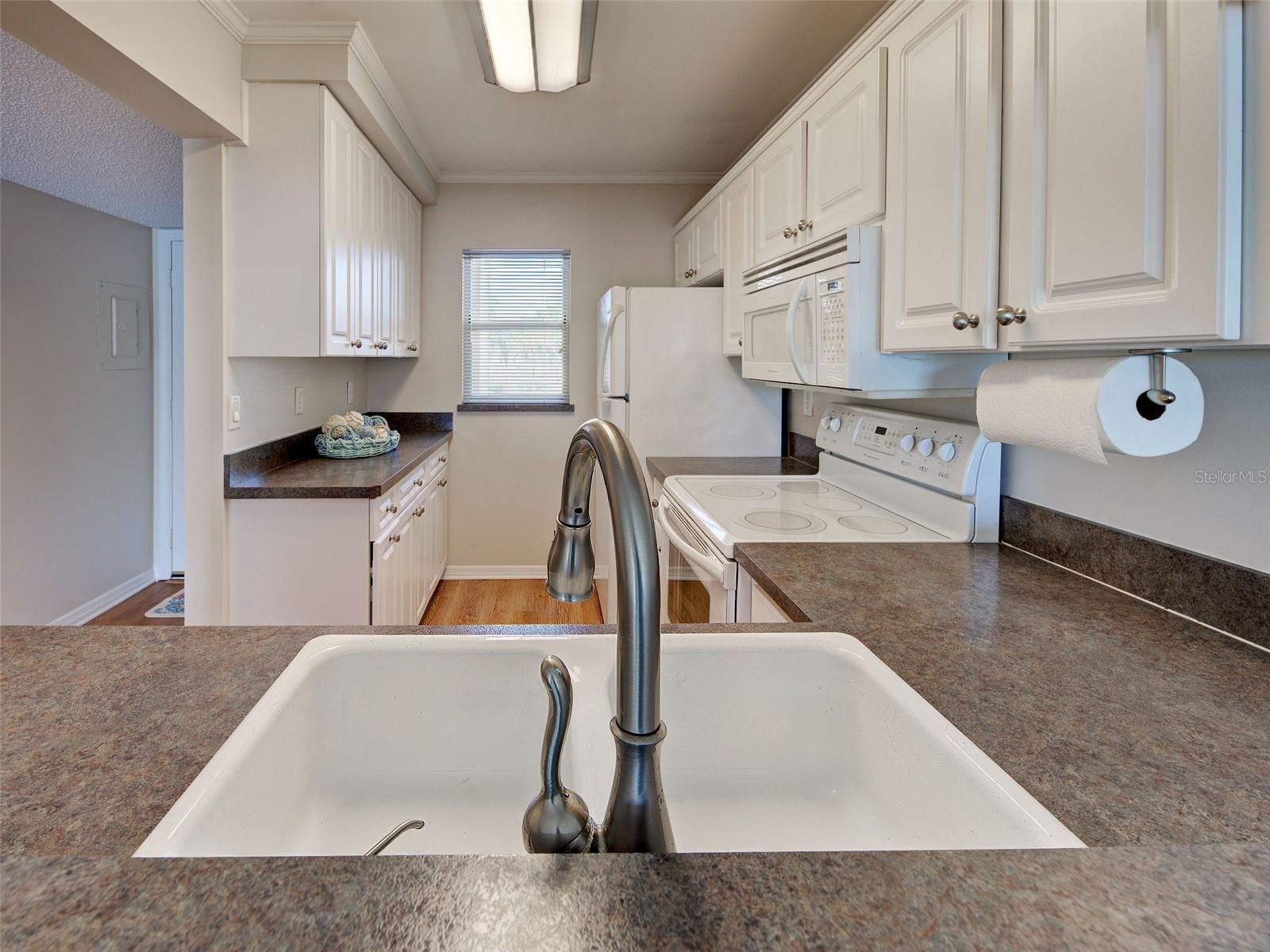 Beautifully RENOVATED and FRESHLY PAINTED condo with GOLF AND WATER VIEWS in Westchester Gardens at Plantation. It features a newer HVAC (2023), LUXURY VINYL FLOORING (2024) throughout and a spacious COVERED AND SCREENED LANAI with TILE FLOORING, offering serene GOLF COURSE VIEWS with no rear neighbors for added privacy. The kitchen offers WHITE CABINETRY, Frigidaire appliances, and a scenic outlook you'll appreciate while cooking. It blends seamlessly with the bright dining and living areas, from where you can also enjoy the views from the SLIDING GLASS DOORS that flood the space with natural light and lead directly to the inviting LARGE LANAI, perfect for relaxing or entertaining while enjoying the peaceful golf course and water views! The primary bedroom offers DIRECT LANAI ACCESS, stunning views, and an en suite bathroom with tile flooring, a walk-in shower, and a generous walk-in closet. The second bedroom is light-filled and conveniently located next to the guest bathroom, which features a TILED TUB SURROUND and a GRAB BAR for added safety. For added convenience, the laundry closet is tucked away in the primary bedroom and it features newer Frigidaire washer and dyer. This second-floor condo comes with a NEWLY ROOFED CARPORT offering covered parking for one vehicle. There is also a storage space, ideal to keep your belongings. The building exterior was recently painted and the ROOF REPLACED, enhancing both appearance and value. Enjoy effortless access via the community elevator. Whether you're looking for a full-time residence or seasonal retreat, the FLEXIBLE RENTAL POLICY, minimum 30-day lease, offers great versatility. Monthly fees conveniently cover cable TV, high-speed internet, water, sewer, and pest control. There are several different levels of memberships available to join through Plantation Golf & Country Club, to have access to multiple amenities and the Plantation 18-hole golf course. Westchester Garden at Plantation in Venice offers a prime location for enjoying the best of coastal and city living. Just 15 minutes away, residents can relax on the white sands of Venice Beach or look for shark teeth at Caspersen Beach. A short 10-minute drive brings you to Historic Downtown Venice, where charming boutiques, dining, and cultural events create a vibrant atmosphere. For everyday convenience and retail, shopping centers are all within a 10–15 minute radius, offering a mix of local favorites. This community blends tranquility with easy access to beaches, shopping, and the heart of Venice.