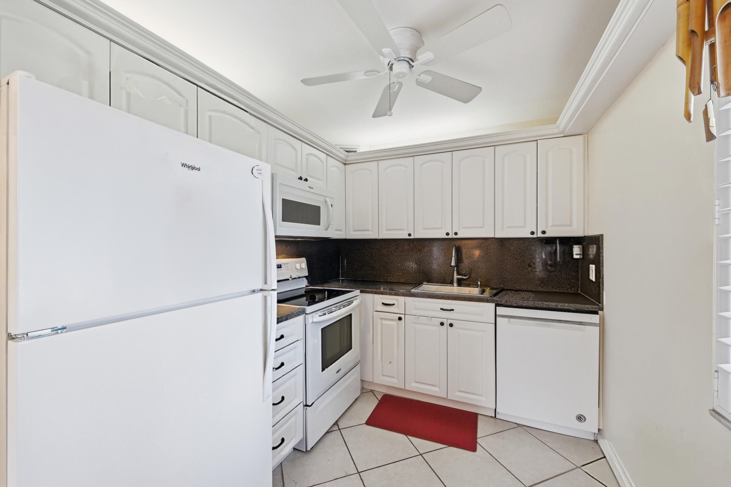 Welcome to 406 Saxony I located in the highly desirable Kings Point Golf and Country Club, a premier 55+ gated community in Delray Beach. This well-maintained unit is located in a solid CBS building and features all impact windows and doors, including impact sliders, plus additional storm protection with shutters throughout. The enclosed balcony offers relaxing water views and is equipped with weather sliding shutters, creating a comfortable year-round space to enjoy the scenery. Inside, the home features all tile flooring throughout and renovated bathrooms for a clean, updated feel. The kitchen is equipped with all white appliances, complemented by Bahama shutters in the living room and kitchen area that add both charm and functionality. A newer washer and dryer provide added convenience. Additional improvements include a 2013 water heater and a General Electric electrical panel. Enjoy resort-style living in Kings Point with access to golf, pools, clubhouse amenities, entertainment, fitness facilities, and courtesy transportation, all just minutes from shopping, dining, and vibrant downtown Delray Beach.