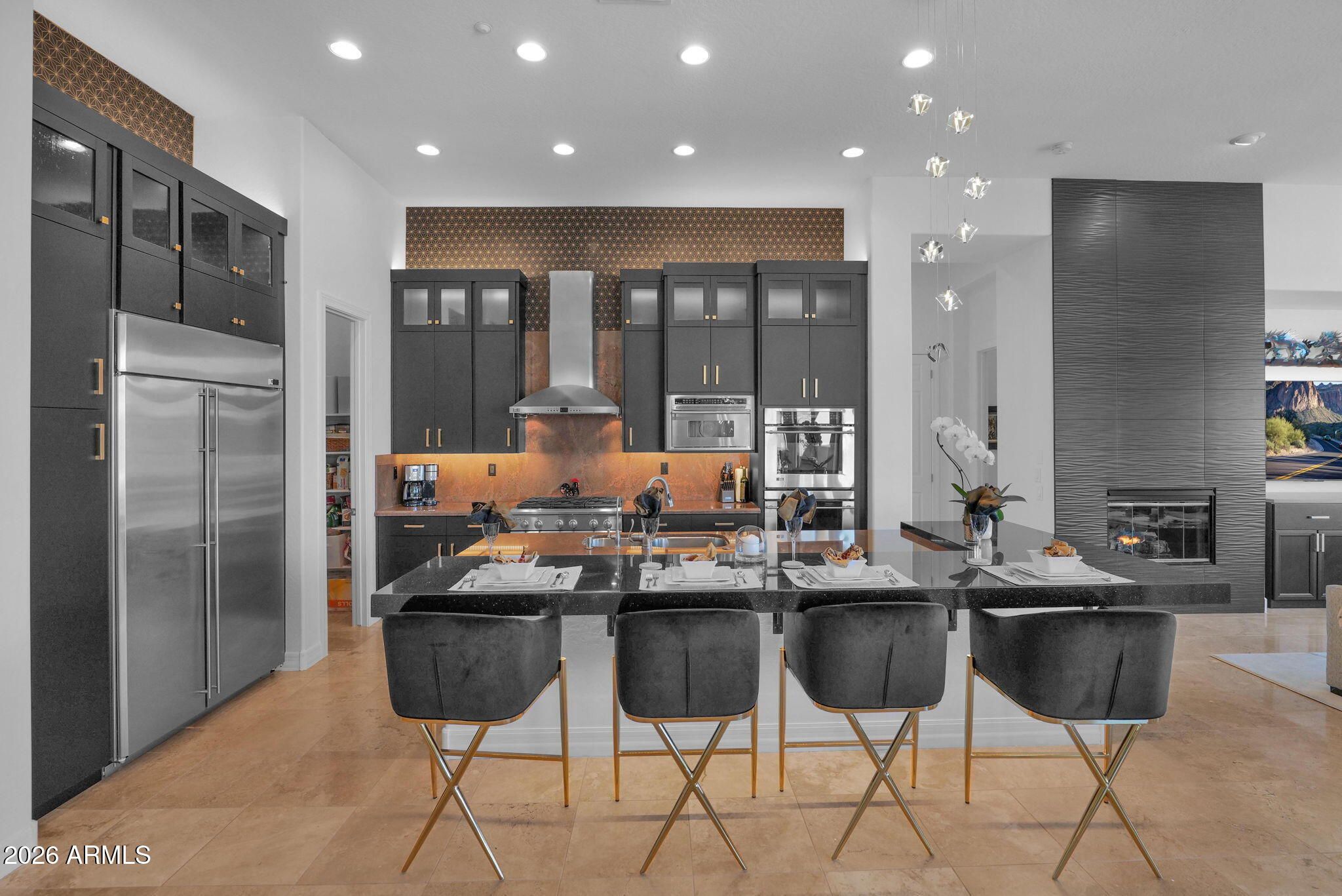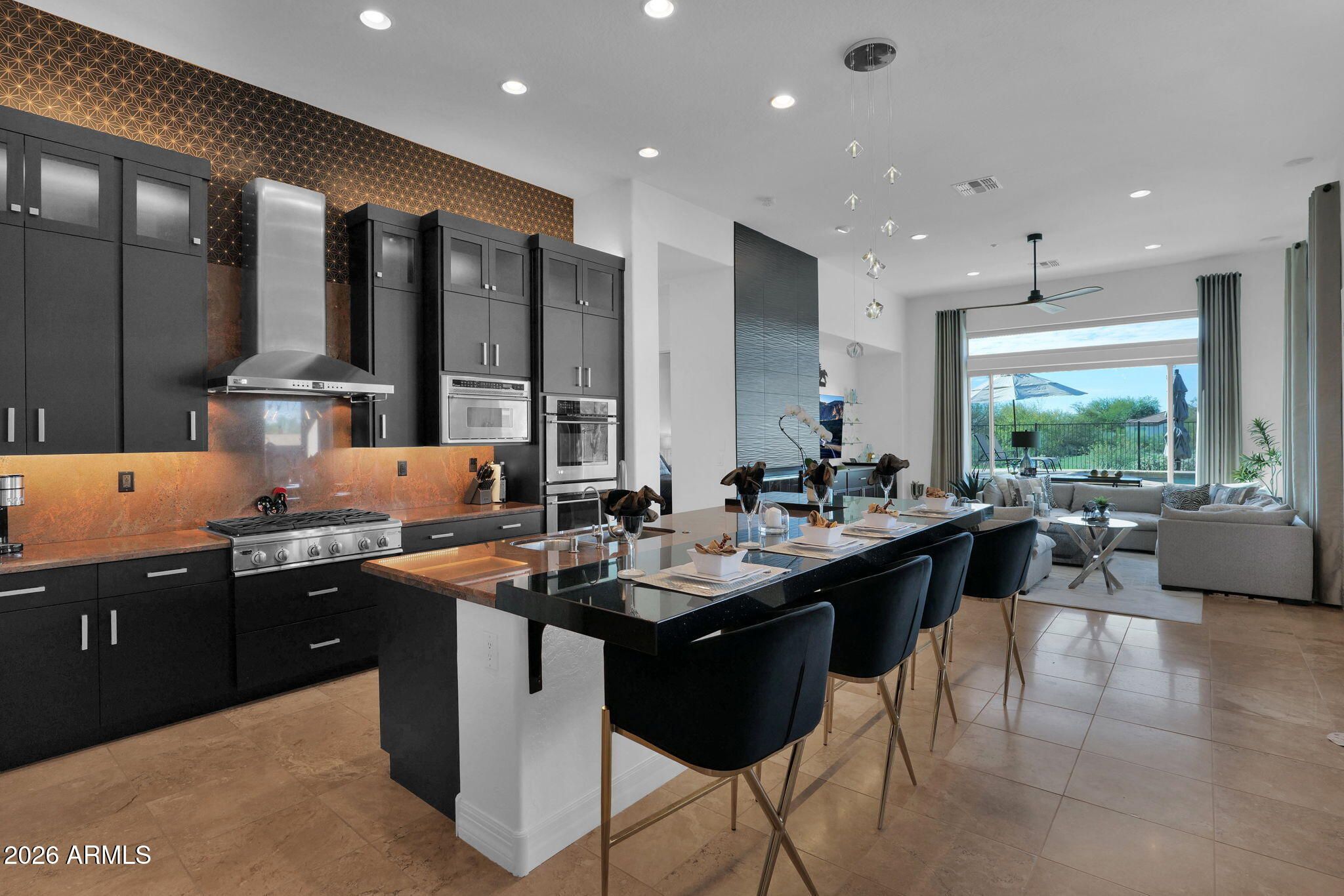 A MUST SEE! STUNNING GOLF COURSE VIEW LOT IN THE COVETED ANTHEM COUNTRY CLUB, close to Ironwood clubhouse. Rare Brentwood model w/ a 216sf casita & full bath. Nestled in a quite cul-de-sac, this luxurious TURN KEY home offers breathtaking mountain views from the lg entry courtyard and gorgeous sunsets from your resort style backyard. This contemporary gem is a designer showcase, elegantly remodeled in 2025 w/ custom cabinetry, LED lighting in the kitchen, new granite counter, bev refrig, remodeled baths, fresh paint throughout, 18'' travertine floors, 12' ceilings, floor to ceiling drapes, new windows, Trane HVAC units, lg master suite w/french door to your backyard oasis that incl. extensive stone w/raised negative-edge pool, spa,, solar heating, BBQ island & fireplace.. OPEN 1/31