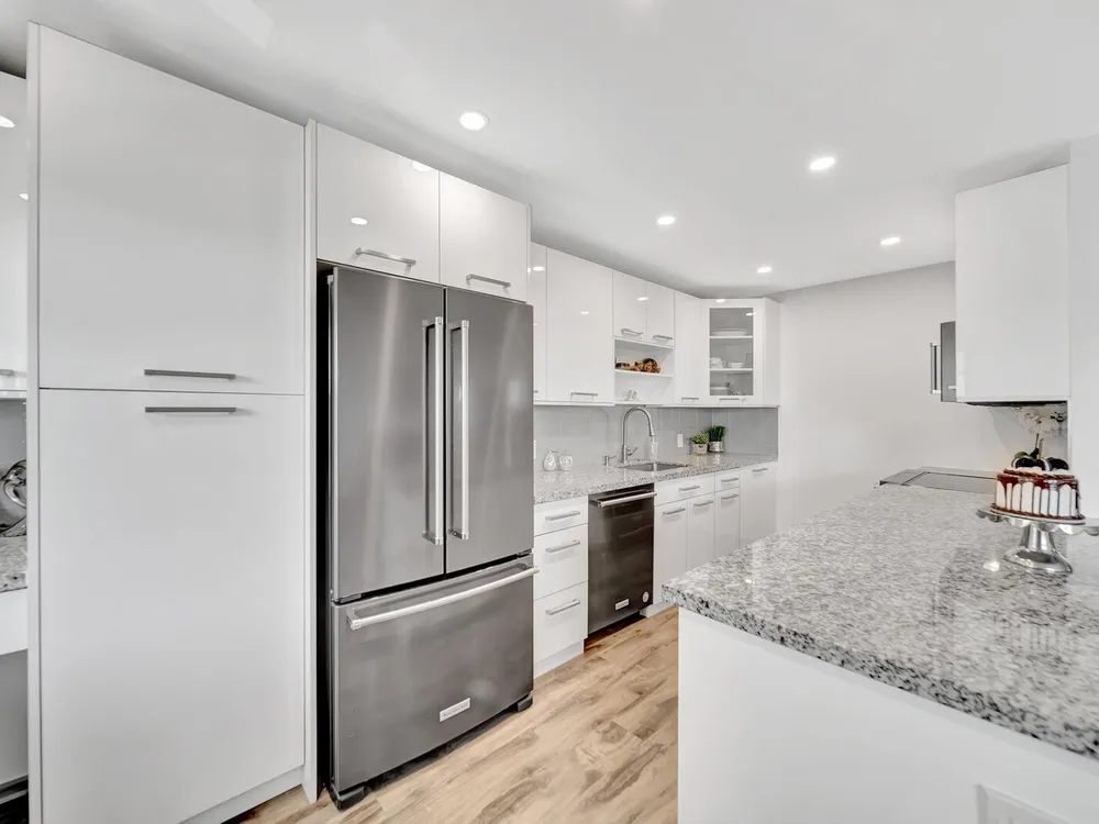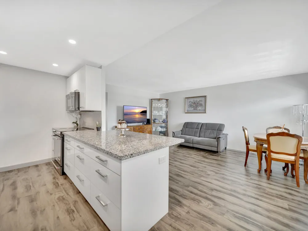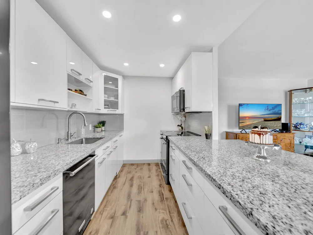 Move right in to this 2/1.5 recently renovated bright penthouse condo with magnificent lake views and prime location just steps away from the pool. Enjoy an expanded open concept designer kitchen with soft close cabinets, granite countertops, black stainless KitchenAid appliances and bright LED recessed lighting to complement. Luxury vinyl flooring in all living areas. All closets complete with organizers, power operated zebra shades and large fans for comfort. The electrical panel has been replaced as well. All windows, sliders and doors have been upgraded to storm impact. Bathrooms completely redone with new vanities, tile flooring, and walk-in shower with glass frameless doors. Relax and enjoy sunsets from your large screened-in balcony that offers the most amazing panoramic lake views