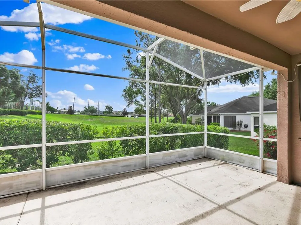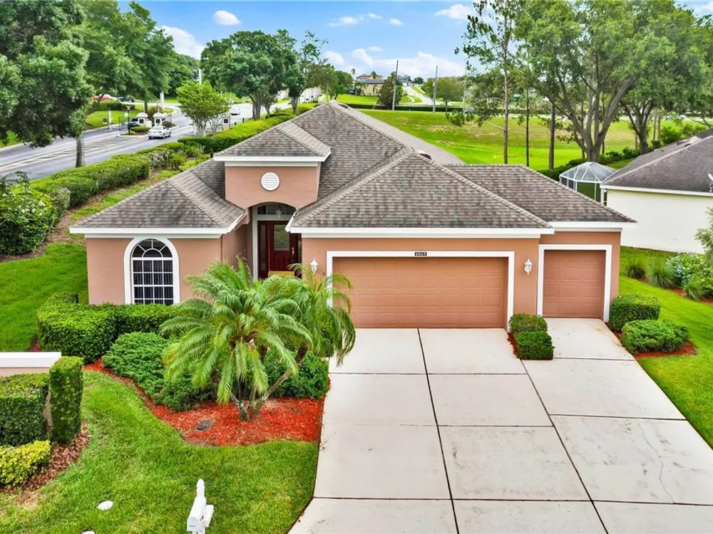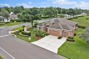 Welcome to Kings Ridge, a secure, gated 55+ golf community nestled in the rolling hills of Clermont, FL. This well-maintained St. Regis model from the King Arthur Series offers 1,997 sq ft of living space with 2 bedrooms, 2 bathrooms, and a den/office featuring wood flooring and a built-in Murphy bed, perfect for guests. The open-concept layout includes a spacious living room, large dining area, and an eat-in kitchen. Ceramic tile flooring flows throughout the main living spaces. The home also includes a golf cart garage and numerous updates: roof and major appliances (2017), washer/dryer (2018), disposal (2019), tile upgrades (2018), and fresh interior (2024) and exterior (2022) paint. Kings Ridge offers resort-style amenities including a 24,000 sq ft clubhouse, 3 heated pools, 2 golf courses with a driving range, tennis and pickleball courts, fitness center, spa, and more. Residents enjoy golf cart access to nearby shops, restaurants, and medical offices. HOA fees cover lawn care, irrigation system maintenance and water, exterior home painting, tree and shrub trimming, and cable TV/internet through Opti Tel.