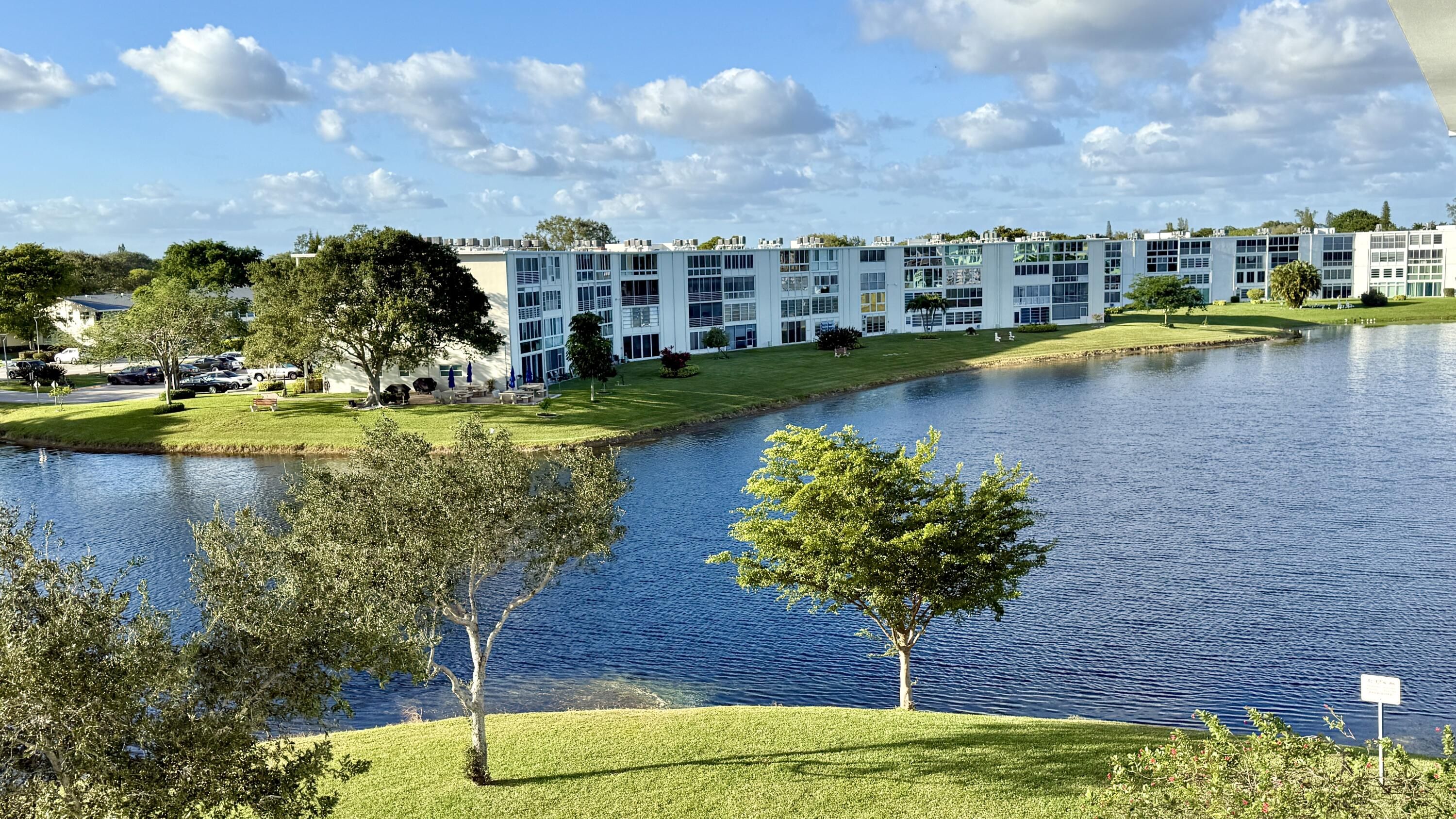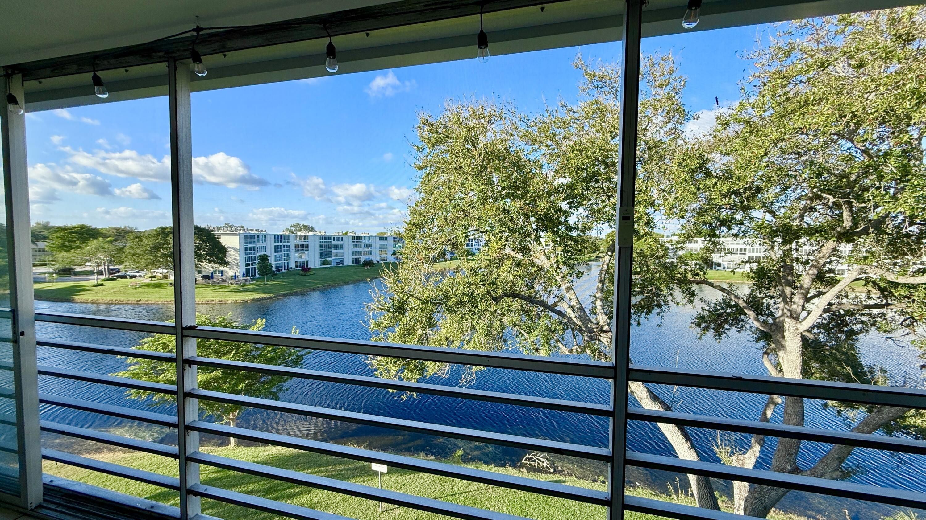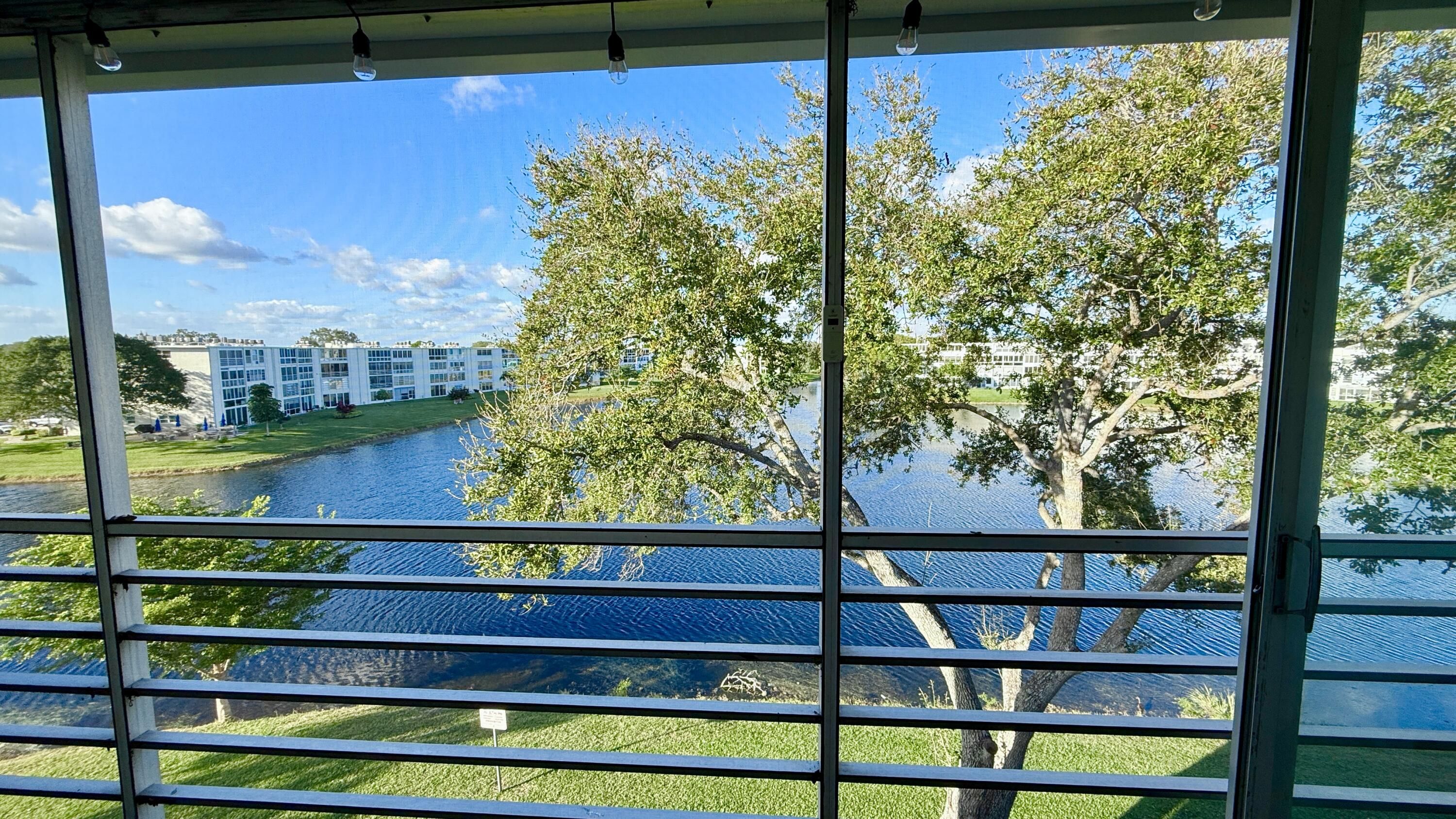 Spectacular LAKE VIEWS from every window & enclosed Patio. CORNER 2 Bedroom, 1.5 Bath 860 SF. ROOF Replaced 2025. LOW MONTHLY HOA FEE! Replaced AC, Smart Thermostat Ecobee & Garbage Disposal 2025. Hot Water Heater 5 years. Kitchen has Water Filtration. Freshly PAINTED 2025 walls & ceilings. Patio with tile flooring & sliding doors for protection. Come see what this condo has to offer. It is ready for you to make it your Own. The main Clubhouse has Indoor & Outdoor Pool, Restaurant, 1600 Seat Theater, Clubs, Classes, Billiards, Tennis, Pickleball, Volleyball, Ping Pong, Bocce Board, ShuffleBoard, Fitness Center, Hiking Trails, Putting Green, Bike Trails & more. Close to Beaches, Entertainment, Dining, Shopping. Association claims 55+ community. Approval required