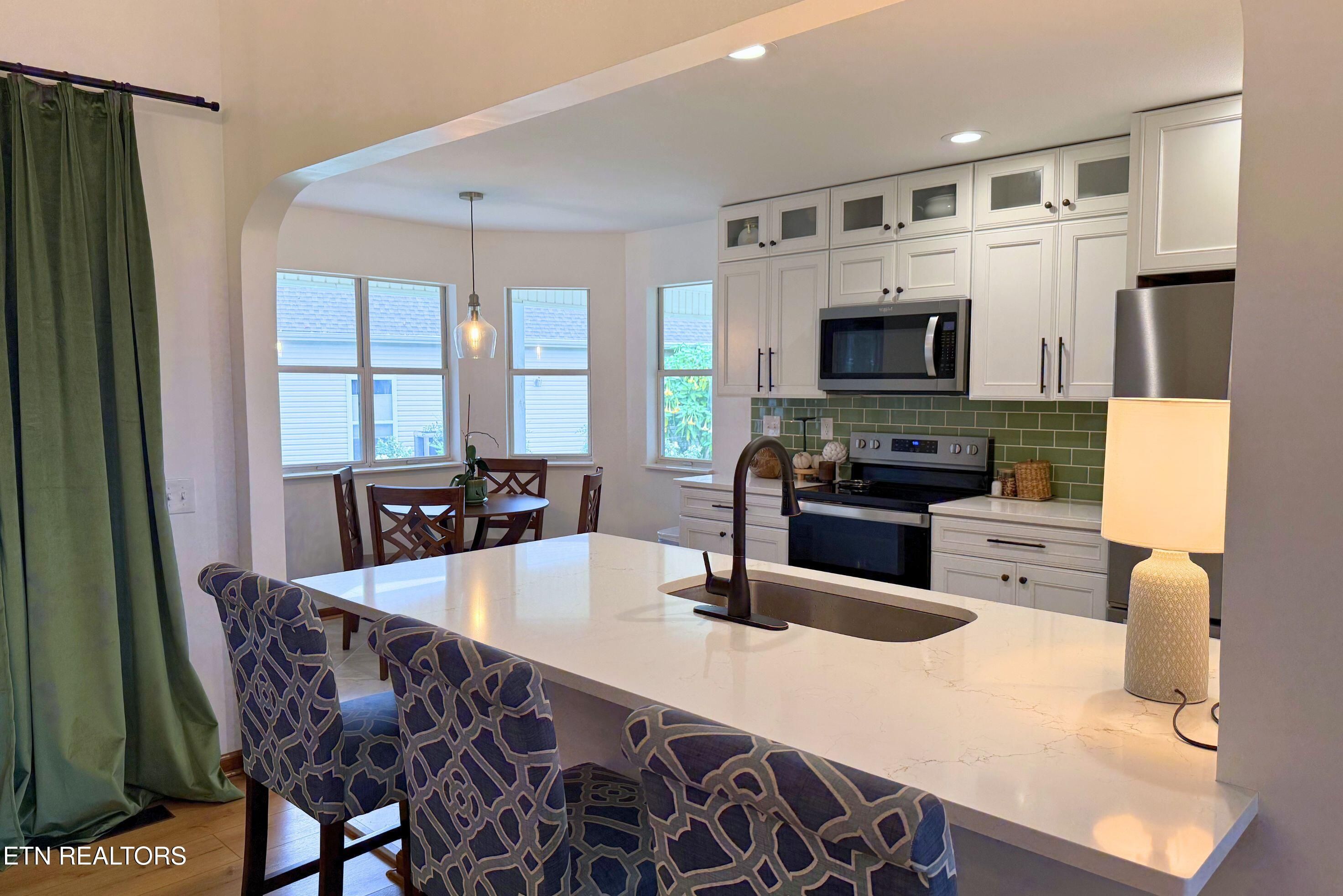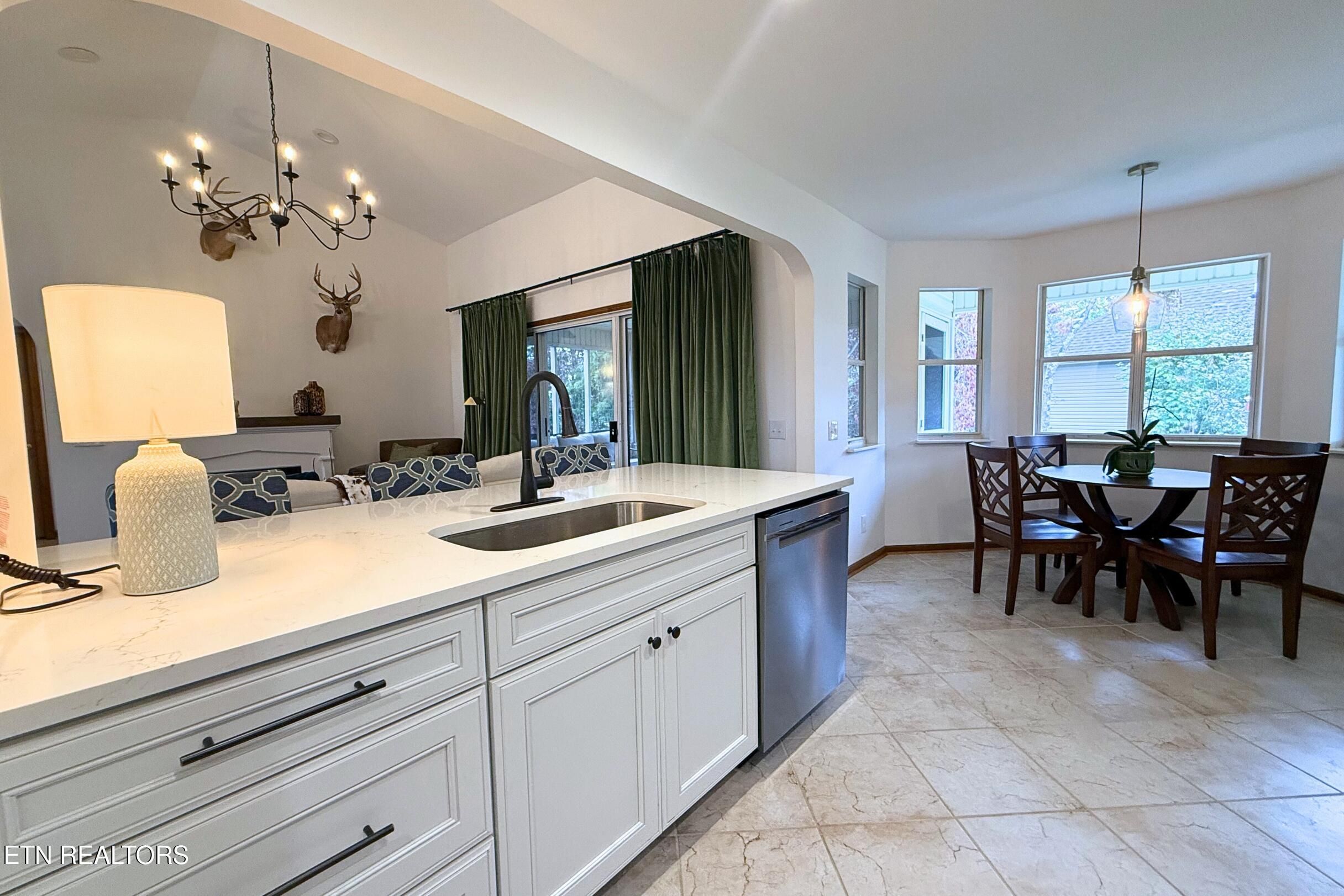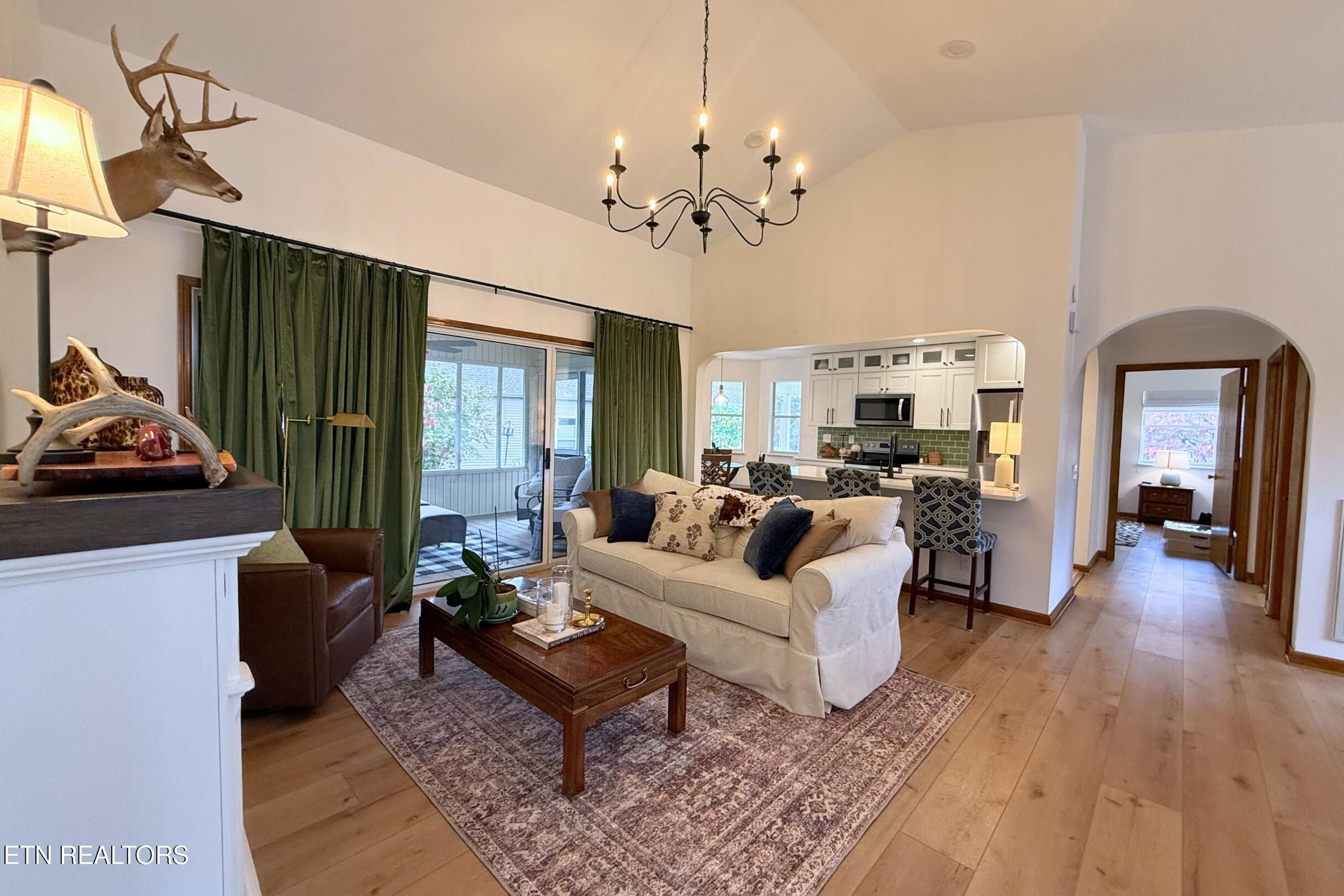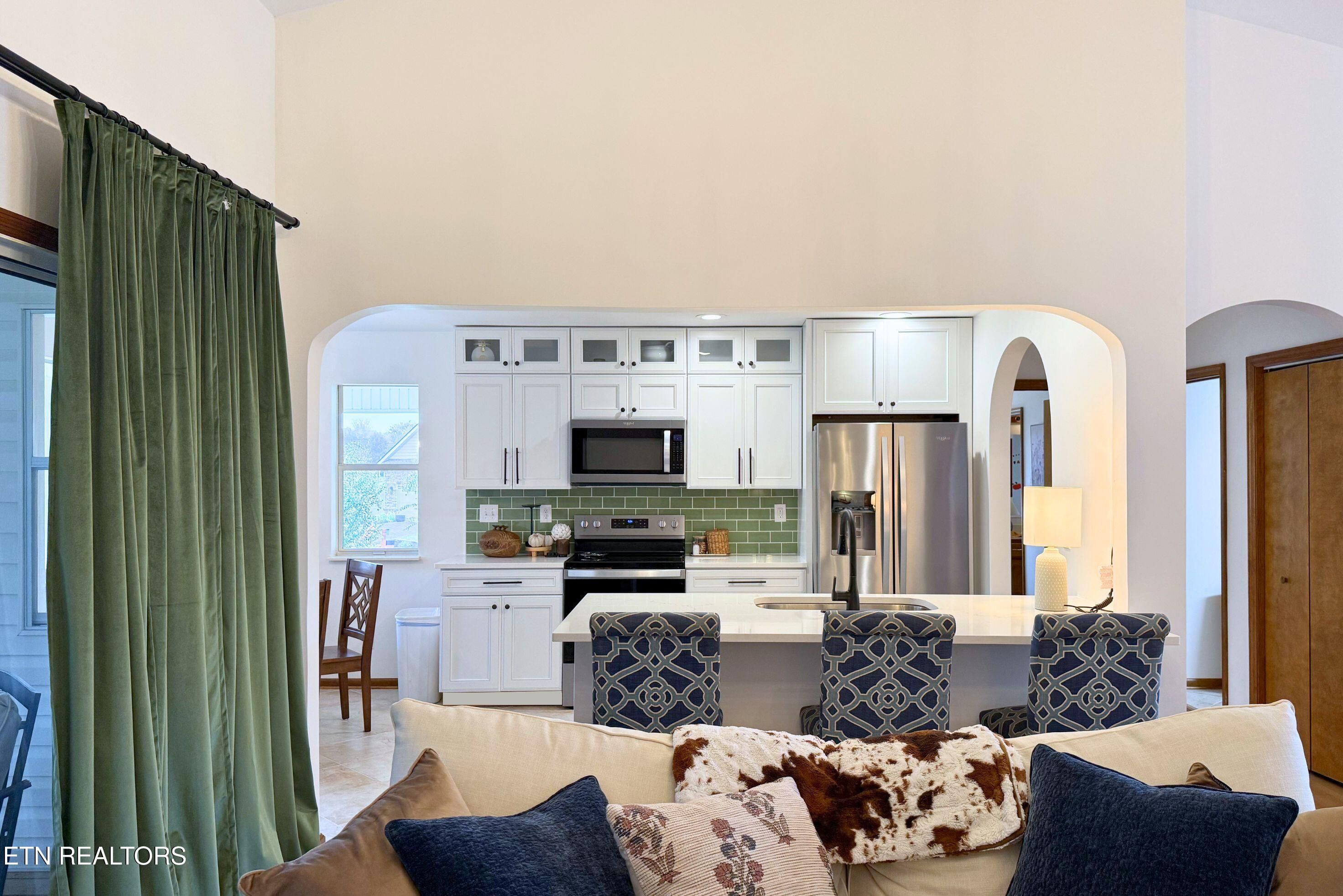 Updated 3BR / 2BA home in Tellico Village situated on a level, 0.35-acre corner lot! This home is move-in-ready, offers a wonderful layout, and has tons of privacy on a quiet cul-de-sac street. Vaulted ceilings and an open-concept layout centered around the kitchen with counter height island seating. This beautifully updated home features LVP flooring throughout main living areas and bedrooms. The kitchen has new cabinetry, quartz countertops, Whirlpool appliances, and a large single-basin sink. The primary suite has lots of natural light and offers private deck access through sliding doors. An ensuite master bath offers a new vanity, tile flooring, walk in shower, updated lighting, paint, a walk-in closet, and a linen cabinet. Split-bedroom floor plan, both guest bdrms include a walk-in closets. The laundry room includes a utility sink, storage closet, and additional upper cabinetry. Storage is abundant throughout the home for it's size, including walk-in closets in all bedrooms, attic storage, and large garage. Major updates include: New water heater, newer HVAC, and crawl space dehumidifier. Large screened porch is a great outdoor space and could be converted into beautiful sunroom. For its size, this home truly lives large -- thoughtfully renovated, functional, and low maintenance!