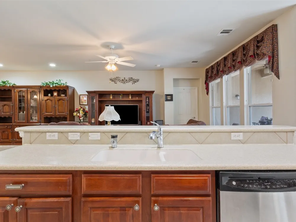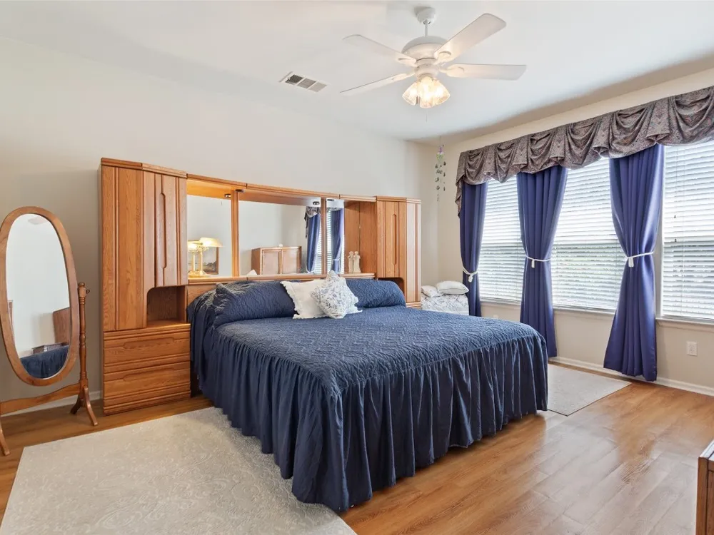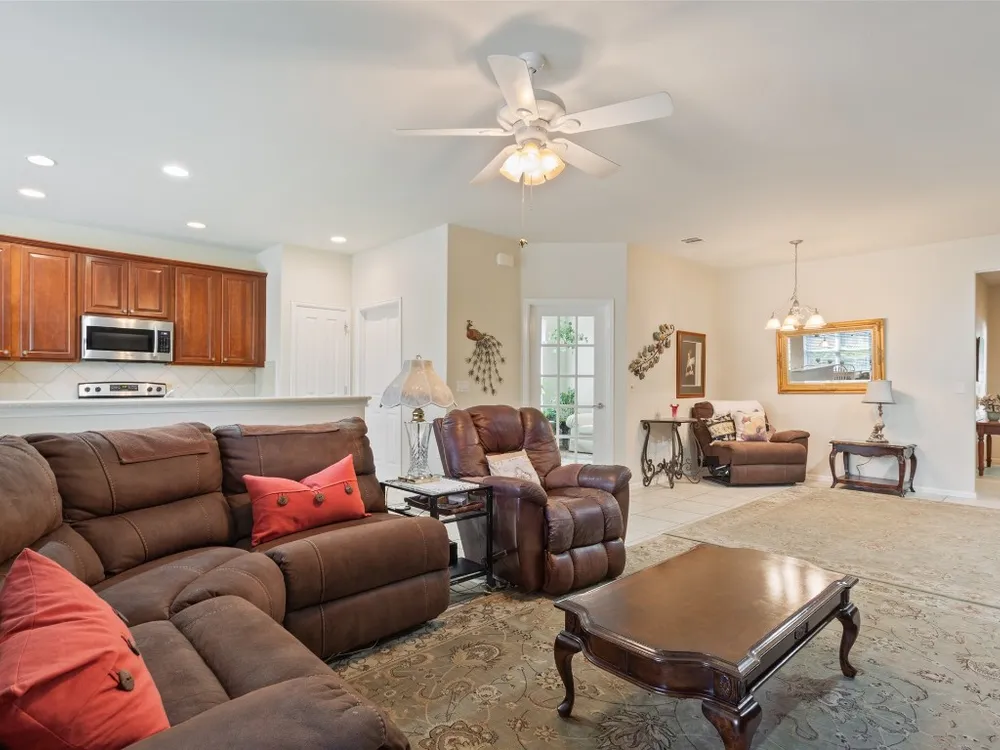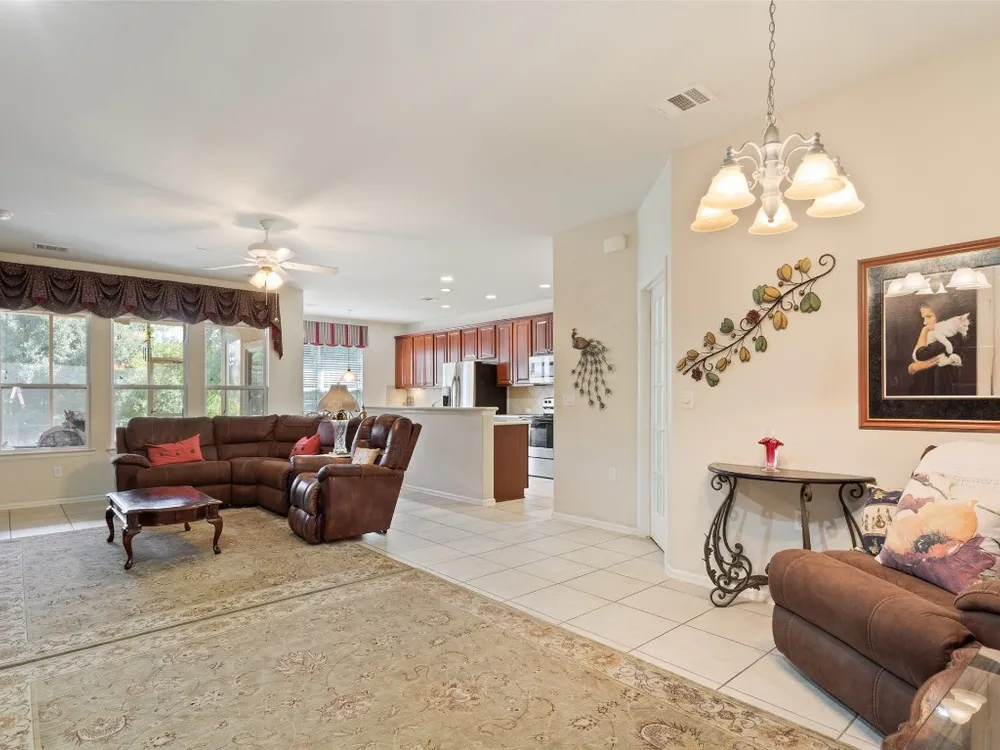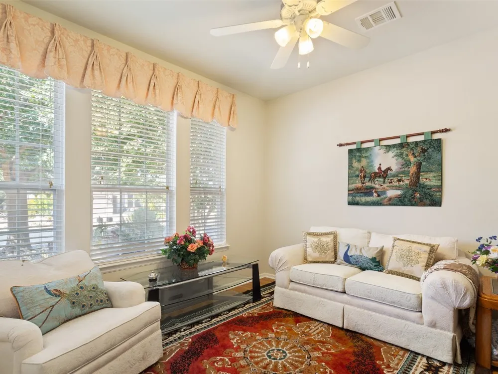 Searching for an affordable home with three bedrooms and an office? This is the perfect fit for you! With plenty of room for everything, you’ll have a guest room, a craft or hobby space, or even a second office. The Longstreet (Vernon Hill) model offers an office with double French doors, while the kitchen features stainless steel appliances and opens up to the living and dining areas. If you don’t need a separate dining space, it’s a fantastic area for a bar, game room, or anything you can imagine. The spacious primary bedroom includes a private bath with dual vanities and a walk-in closet, ensuring privacy for you and your partner. The original patio has been screened in, and an extended outdoor area overlooks a serene natural greenspace, providing a peaceful retreat. Enjoy your morning coffee or the cool evening air without any pesky mosquitoes. The fully fenced back yard provides loads of play space for your furry, four-legged companion, plus the xeriscaped front yard saves on lawn care costs and time, letting you make the most of this vibrant 55+ community.