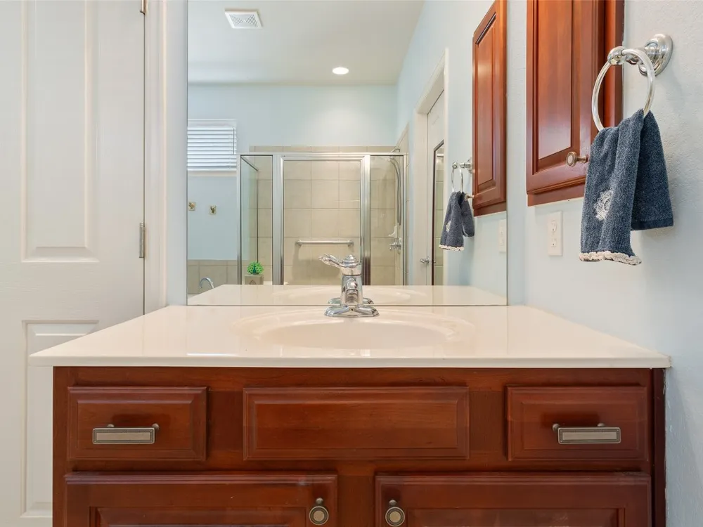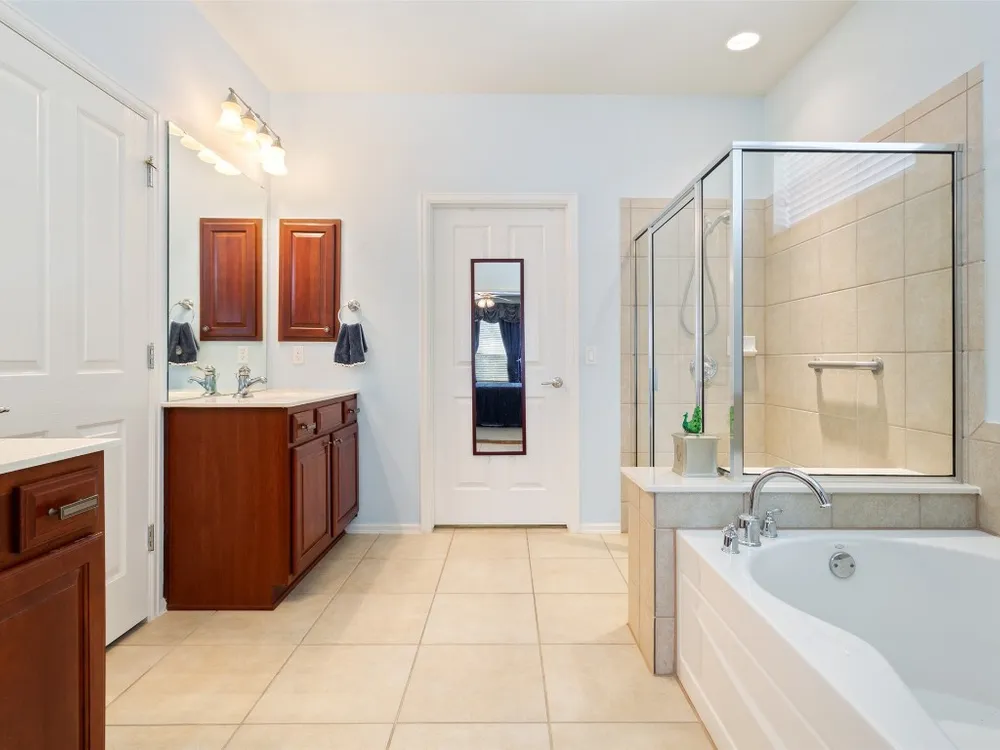 - Breakfast Bar, Ceiling Fan(s), Separate/Formal Dining Room, Double Vanity, Entrance Foyer, Eat-in Kitchen, French Door(s)/Atrium Door(s), Multiple Dining Areas, Main Level Primary, NoInteriorSteps, Open Floorplan, Pantry, Recessed Lighting, Storage, Solid Surface Counters, Soaking Tub, Walk-In Closet(s), High Speed Internet