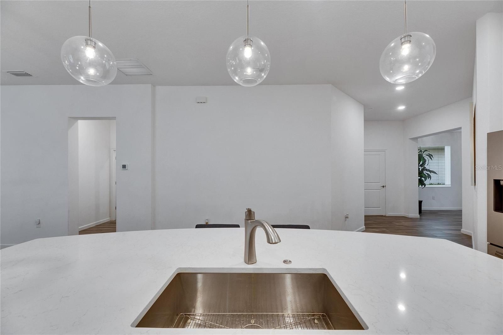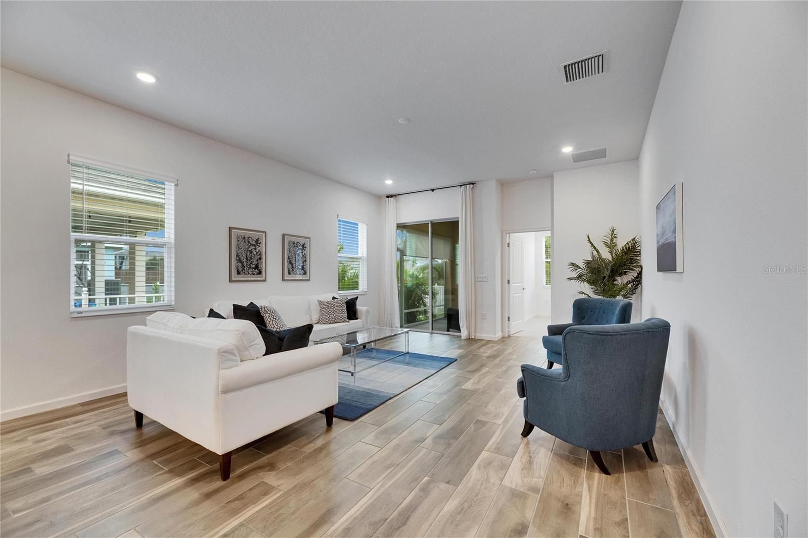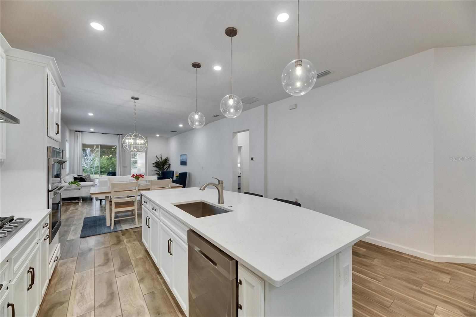 407 Sandsend, Apollo Beach – This 2021-built Park Square Homes Seville floor plan offers 1,932 square feet of single-story living on a peaceful private conservation lot with no rear neighbors. Located just a short distance from the MiraBay clubhouse, this home combines modern design with a prime location in one of Tampa Bay’s top communities. Inside, the open floor plan features 3 bedrooms and 2 baths. The kitchen is designed for cooking and entertaining, with stainless steel appliances, a gas cooktop, 42” cabinets, quartz countertops, and a large island with a breakfast bar overlooking the living room. The Spacious primary suite includes an extra-large walk-in closet and a private bath with dual quartz sinks and a giant walk-in shower. The home has been upgraded with beautiful porcelain wood-look tile flooring in the main living areas, custom light fixtures, and window treatments. A flexible entrance can be used as a dining area or home office. The split floor plan provides privacy, with the first guest bedroom and bath in a separate hallway, making it a great option for an in-law suite. The covered and screened rear patio offers a relaxing space to enjoy the view of the pond and conservation area. A brick paver driveway adds to the curb appeal, and the seller is open to considering a turnkey sale. MiraBay residents enjoy resort-style amenities, including a 10,000 sq ft clubhouse, two outdoor heated pools with lap lanes and a water slide, a 24-hour fitness center, tennis, basketball, and pickleball courts, scenic trails, Fishing pier, ponds, and parks. The community also features a café, lounge, and an on-site activities director. The nearby Wolf Creek Preserve is perfect for outdoor enthusiasts. This is a great opportunity to own a well-maintained home in a popular neighborhood. This is a gated golf cart friendly neighborhood.