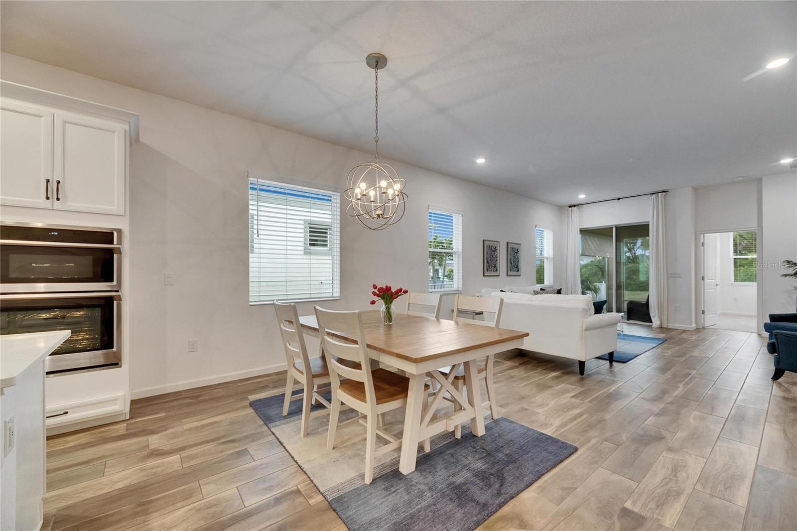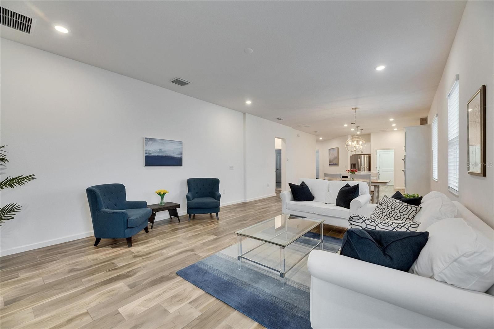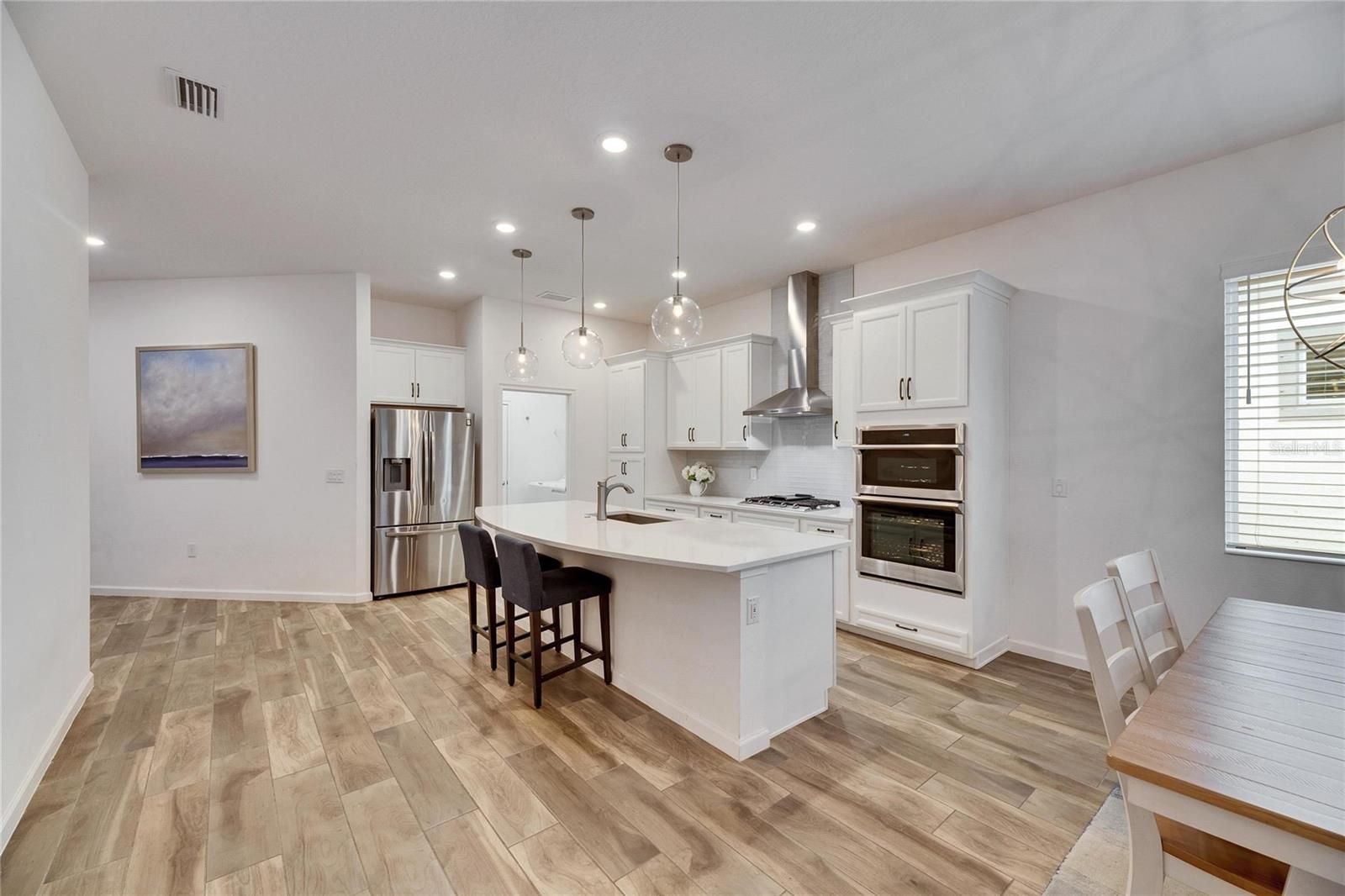 407 Sandsend, Apollo Beach – This 2021-built Park Square Homes Seville floor plan offers 1,932 square feet of single-story living on a peaceful private conservation lot with no rear neighbors. Located just a short distance from the MiraBay clubhouse, this home combines modern design with a prime location in one of Tampa Bay’s top communities. Inside, the open floor plan features 3 bedrooms and 2 baths. The kitchen is designed for cooking and entertaining, with stainless steel appliances, a gas cooktop, 42” cabinets, quartz countertops, and a large island with a breakfast bar overlooking the living room. The Spacious primary suite includes an extra-large walk-in closet and a private bath with dual quartz sinks and a giant walk-in shower. The home has been upgraded with beautiful porcelain wood-look tile flooring in the main living areas, custom light fixtures, and window treatments. A flexible entrance can be used as a dining area or home office. The split floor plan provides privacy, with the first guest bedroom and bath in a separate hallway, making it a great option for an in-law suite. The covered and screened rear patio offers a relaxing space to enjoy the view of the pond and conservation area. A brick paver driveway adds to the curb appeal, and the seller is open to considering a turnkey sale. MiraBay residents enjoy resort-style amenities, including a 10,000 sq ft clubhouse, two outdoor heated pools with lap lanes and a water slide, a 24-hour fitness center, tennis, basketball, and pickleball courts, scenic trails, Fishing pier, ponds, and parks. The community also features a café, lounge, and an on-site activities director. The nearby Wolf Creek Preserve is perfect for outdoor enthusiasts. This is a great opportunity to own a well-maintained home in a popular neighborhood. This is a gated golf cart friendly neighborhood.