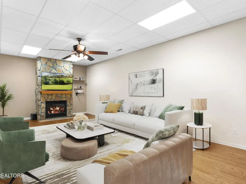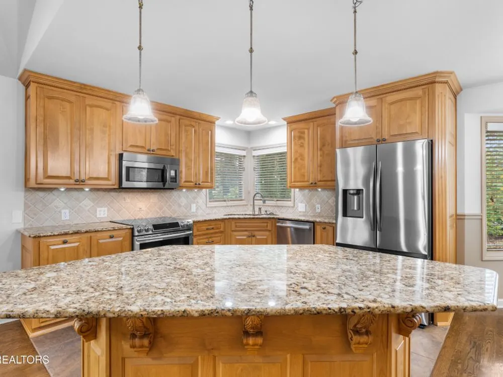 Welcome to your beautifully maintained 4-bedroom, 3-bathroom basement rancher nestled in the heart of the prestigious Tellico Village Community in Loudon, TN! This gorgeous home offers a perfect blend of comfort, functionality, and updates, ideal for both everyday living & entertaining. Step inside to discover a spacious main level with an inviting living area and updated kitchen with modern finishes, including a brand-new refrigerator and Bosch dishwasher, sleek granite countertops and abundant cabinetry & counterspace. Hard surface flooring flows throughout the whole main level, creating a clean and polished aesthetic. The bright and inviting enclosed sunroom is a true highlight. Complete with a cozy fireplace this makes a perfect spot to unwind year-round. Also, on the main floor you'll find the primary suite with private bath and large walk-in closet, two additional bedrooms and full bathroom. Travel downstairs to the fully finished basement offering a generous family room with gas fireplace, additional bedroom and full bathroom perfect for guests and the expansive workshop/storage area ideal for hobbies, projects and those extra storage needs. Walk outdoors and you will feel like you have stepped into your own private oasis. The large patio deck is an ideal space for entertaining or simply enjoying the picturesque outdoor surroundings. The professionally landscaped and hardscaped areas have been meticulously cared for and the irrigation system offers easy maintenance and ensures lush, healthy grounds year-round. All of this located in the highly desirable Tellico Village Community where residents enjoy access to golf, lake amenities, walking trails, wellness facilities and a vibrant active lifestyle. Don't miss the opportunity to tour this amazing home and see all it has to offer for yourself!