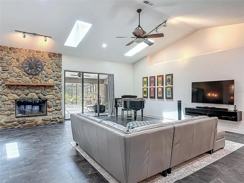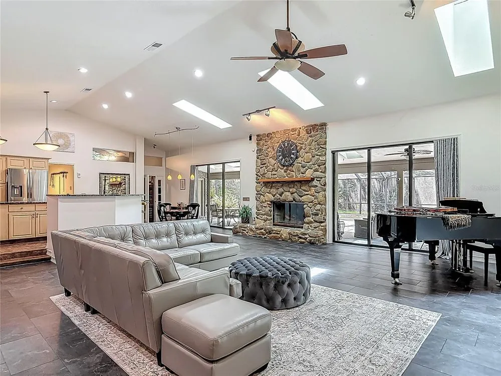 SELLERS MOTIVATED! Exquisite 5-Bedroom, 3 bathroom, Pool Home with In-Law Suite in Sought-After Halifax Plantation Golf Community! Tucked away on a peaceful cul-de-sac, from the moment you arrive, you'll notice the attention to detail, modern upgrades and thoughtful features throughout, ensuring a comfortable and stylish living experience. The gourmet kitchen is a chef’s dream, featuring a Fulgor induction cooktop, Frigidaire oven, LG dishwasher, and brand new Samsung refrigerator. Entertain or unwind in the inviting living room with a wood-burning fireplace, or step outside to the recently resurfaced pool, screen enclosure, and a poolside garden sink and cabinet, perfect for weekend gatherings. Retreat to the spacious master suite, complete with a spa-style bathroom featuring a Whirlpool tub, walk-in shower, dual quartz sinks, European toilet, and a separate water closet. Solar film on the arched window ensures year-round energy efficiency and comfort. The attached mother-in-law suite with private bathroom and walk-in shower offers privacy and flexibility for guests or multi-generational living. The workshop with an overhang roof is perfect for additional storage or a place for hobbies. Safety and security are paramount, with a hurricane safe room built to code with cement walls, ceiling, floor, and a steel door and a 5.5KW generator that powers part of the house served by the secondary breaker panel. The home also features a brand new septic tank and drain field (December 2024). Roof, skylights, gutters and attic insulation were completed in 2021. Enjoy all the perks of Halifax Plantation—just 10 minutes to the beach, and only minutes from a fishing pier, boat launch, golf course, and local dining. This home offers the perfect blend of privacy, convenience, and luxurious Florida living. Don't miss your chance to own this exceptional, move-in-ready home in one of Ormond Beach’s premier communities. All information is intended to be accurate but cannot be guaranteed.