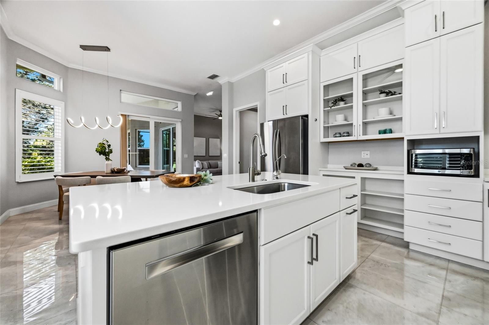 Situated privately in the 55+ community of Cascades of Sarasota, this FULLY REMODELED 3 bedroom plus den residence delivers the Florida lifestyle in an amenity-rich and maintenance-free gated neighborhood within minutes of the treasures of Sarasota’s Suncoast Living. The perfectly proportioned 2,238 square feet one-story plan boasts a re-imagined stylish interior, a multitude of upgrades, a 2025 NEW Tile ROOF, and even all IMPACT WINDOWS, Sliders and Doors. Seamlessly adjacent to the newly-screened lanai is an open great room with volume ceilings, plank tile flooring, crown molding, floor to ceiling impact windows, and an accent wall with built-in fireplace. Meanwhile chefs will delight in the remodeled and beautifully appointed gourmet kitchen with an unexpected and truly oversized custom walk-through pantry, quality wood cabinetry, stainless steel high performance appliances, oversized island with quartz counters, and an inviting dining area all grounded with luxurious Italian porcelain tile. Relax and unwind in the privately situated owner's retreat, offering tray ceiling, wood flooring, two customized walk-in closets, built in desk/vanity area, and a new spa-like bath with dual sink vanity, towel warmer, soaking tub, and invigorating shower with dual shower heads. Overnight visitors will be right at home with two additional guest suites on a separate wing, centered by the remodeled second full bath. Off the great room, the residence also offers an intimate office/den behind double doors with tile flooring and plantation shutters. Other notable highlights of this maintenance-free retreat includes laundry room with new 2025 washer and dryer, landscape lighting, screened front porch, elegant window shutters, all impact windows and doors, 2018 Trane AC with UV Halo Bulb, and a two car garage. Located in Cascades of Sarasota that embodies active living with its newly renovated 25,000-square-foot clubhouse, featuring a heated indoor-outdoor pool, six Har-Tru tennis courts, a state-of-the-art fitness center, and a banquet hall. Engage in a vibrant community with an array of social clubs and activities orchestrated by a full-time social director and tennis pro, with everything from travel clubs and card games, to pottery classes and yoga.