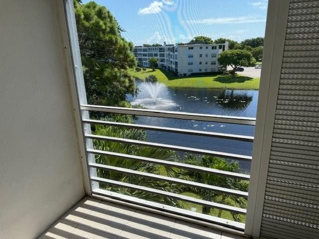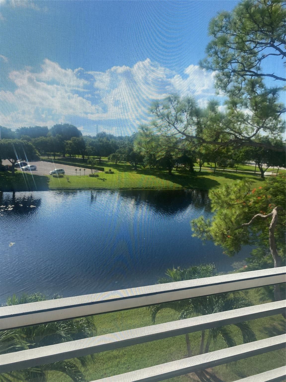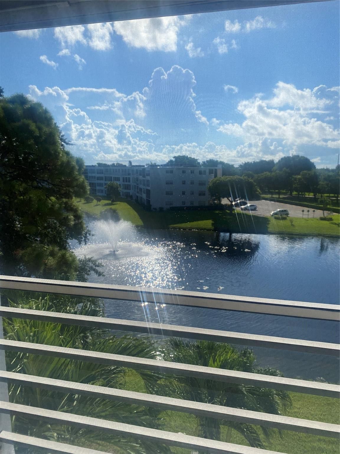 RARE 1 BEDROOM/2 FULL BATHROOM FLOOR PLAN IN DESIRABLE GRANTHAM AREA! 4th floor makes for great views and tranquility. Tile flooring throughout, built-in desk and storage area, newer hot water heater and a/c. Beautiful sunrise, lake and water fountain view from patio. Building has new elevator, roof and alarm system. Steps to Grantham pool and 5 minute walk to Clubhouse. Screened patio with storm shutters, guard gated community with massive clubhouse with 1500 plus seat theater featuring live shows and movies. Also, you'll enjoy the stained glass workshop, wood shop, art instruction, clay room, table tennis, fitness center, Heated pools, cafe, bus service, mini golf, tennis, pickleball, shuffleboard, ballroom, and so much more. You'll love this place!