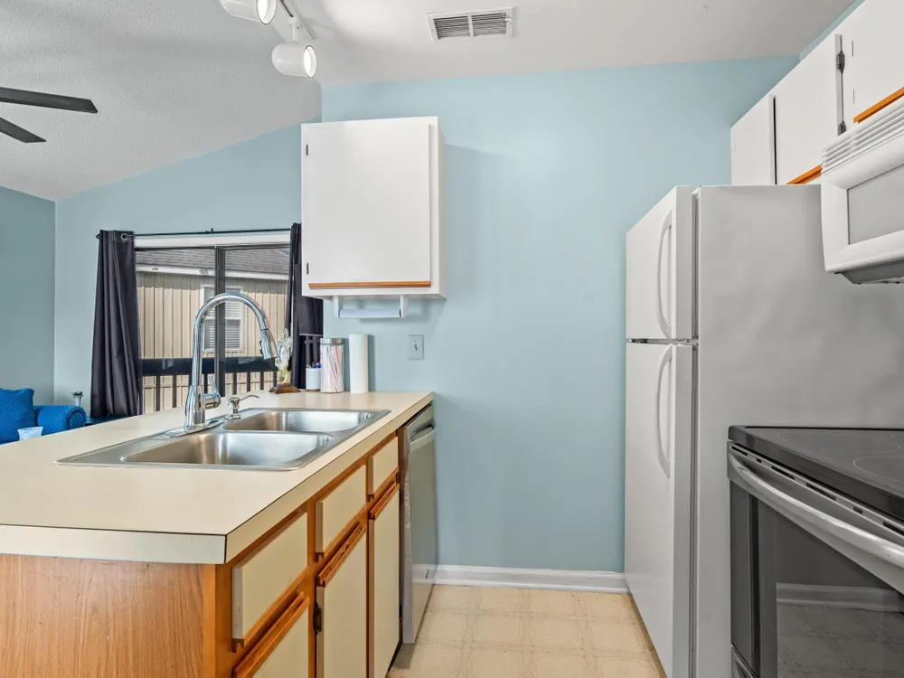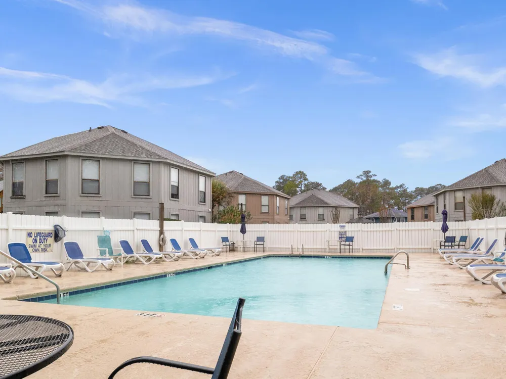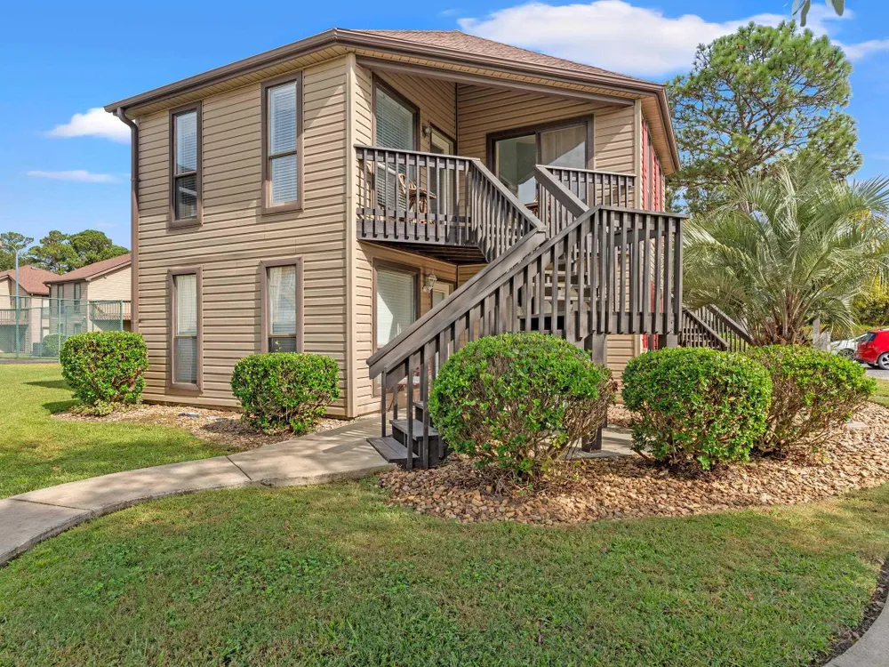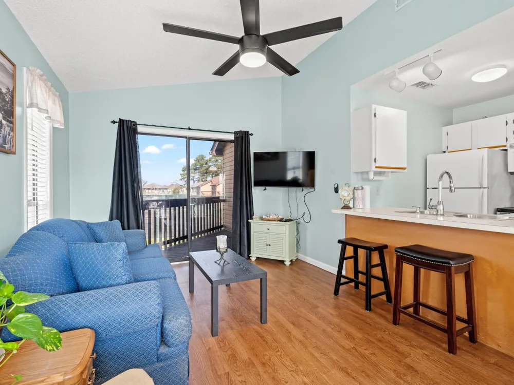 This 1BR/1BA condo is in one of the lowest HOA's in Tree Top Court. This maintenance free building has vinyl siding, shutters, a front and rear porch and assigned parking. The interior walls have been freshly painted and is sold furnished. The full size kitchen comes with range, microwave, dishwasher, refrigerator, garbage disposal, breakfast bar and is open to the living room. The living room has vaulted ceilings and access to the front and rear porch. The bedroom has its own sliding doors leading to front porch and offers plenty of natural light. This would make a great first time home buyer property, a 2nd home or investment property. The pool is privately owned and membership is optional. All measurements are approximate and must be verified by buyer/buyer's agent.