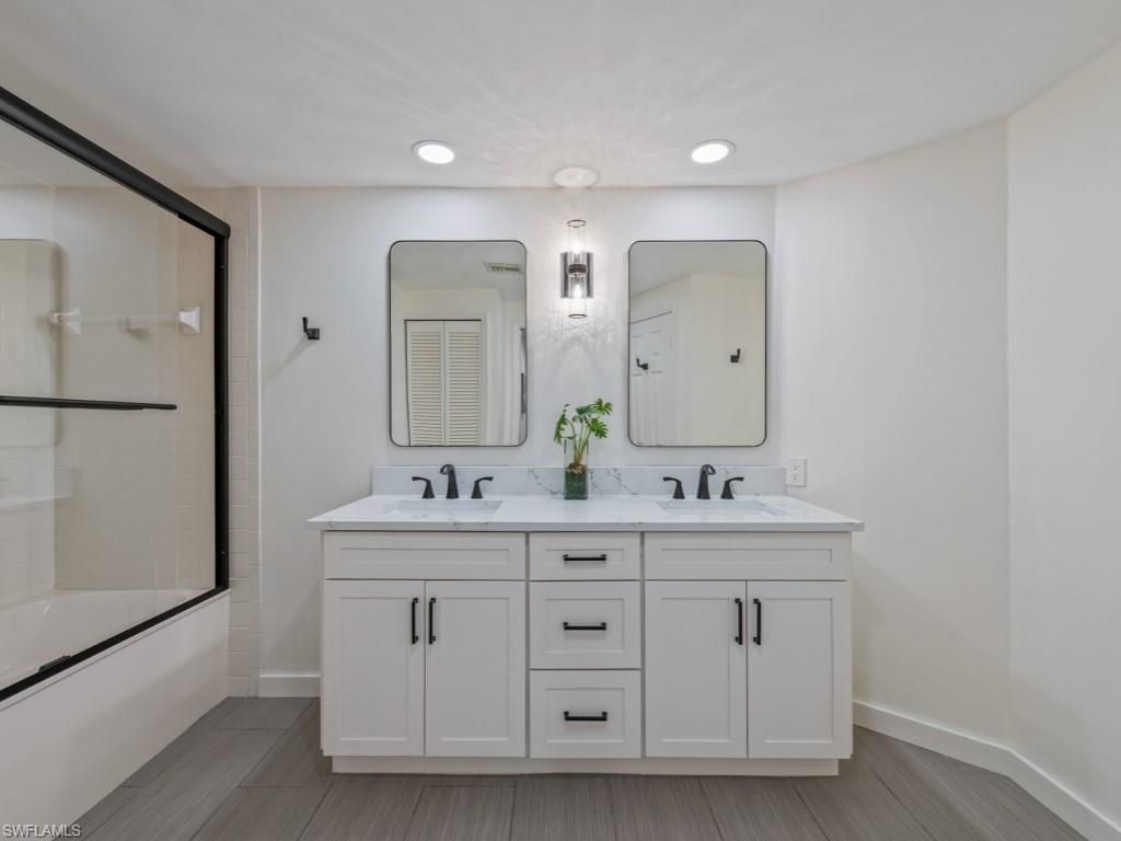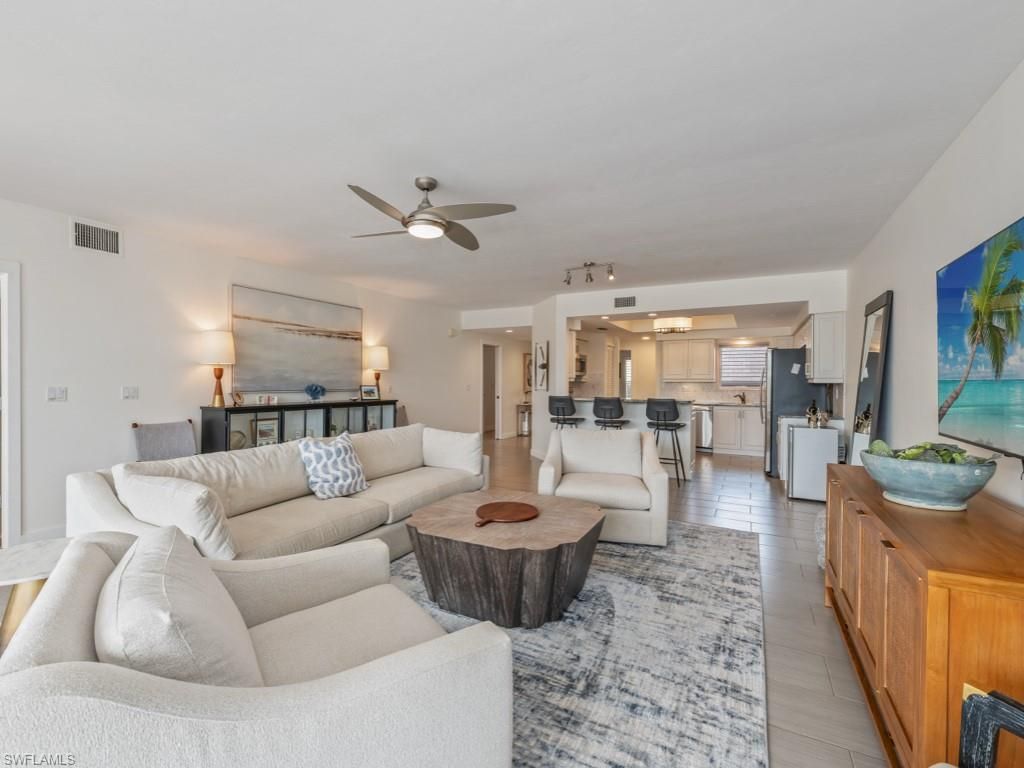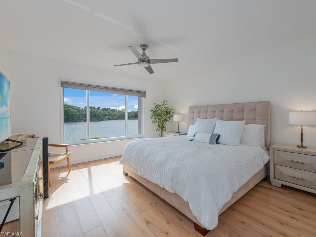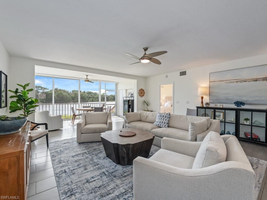 Wake up to glistening lake views and the warmth of southern sunlight in this beautifully updated first-floor residence in Lakeside at Bonita Bay. Thoughtfully redesigned, this 3-bedroom, 2-bath home blends modern comfort with coastal charm. From the moment you enter, peaceful water vistas greet you. Whether you call it home year-round or enjoy it as a seasonal escape, every day here feels like a private lakefront getaway. The kitchen impresses with new custom cabinetry, granite countertops, stainless-steel appliances, and a stylish backsplash. A glass-enclosed sunroom invites you to savor morning coffee or evening cocktails while taking in the tranquil lake views. Enjoy private outdoor access to the lush waterfront lawn from your sunroom, with the community pool just a leisurely stroll away. The versatile third bedroom features custom built-ins, perfect for a home office, hobby space, or guest retreat. Enjoy peace of mind with numerous updates, including new lighting fixtures, newer A/C with advanced filtration, roof, and water heater. The primary suite showcases stunning water views, an updated bath, and wood flooring. Everyday living is effortless with a spacious 2-car detached garage featuring a newer hurricane-rated electric door. Ideally situated near the community gate and clubhouse, you will have both amenities and all that Southwest Florida has to offer right at your fingertips! As a Bonita Bay resident, you'll enjoyexclusive access to a private beach park, the popular Backwater Jack's Restaurant, a boat launch, and bocce, pickleball and tennis courts. Forgolf enthusiasts, there’s an opportunity to join the Country Club, which boasts five championship golf courses, a sports/racquet center, resort-style pool, and a state-of-the-art fitness facility, along with a luxury spa and salon. Don't miss your chance to embrace the unparalleled BonitaBay lifestyle!