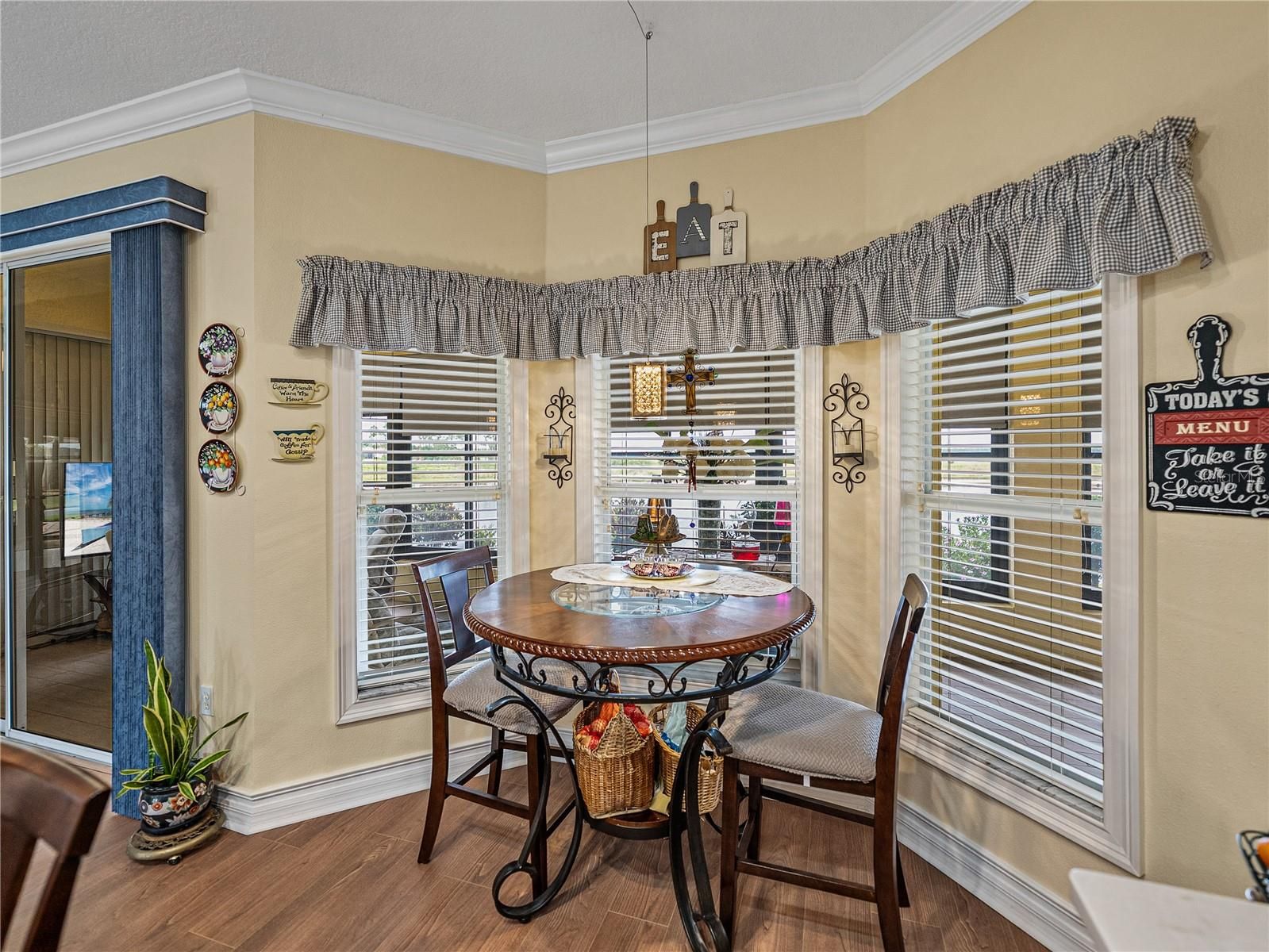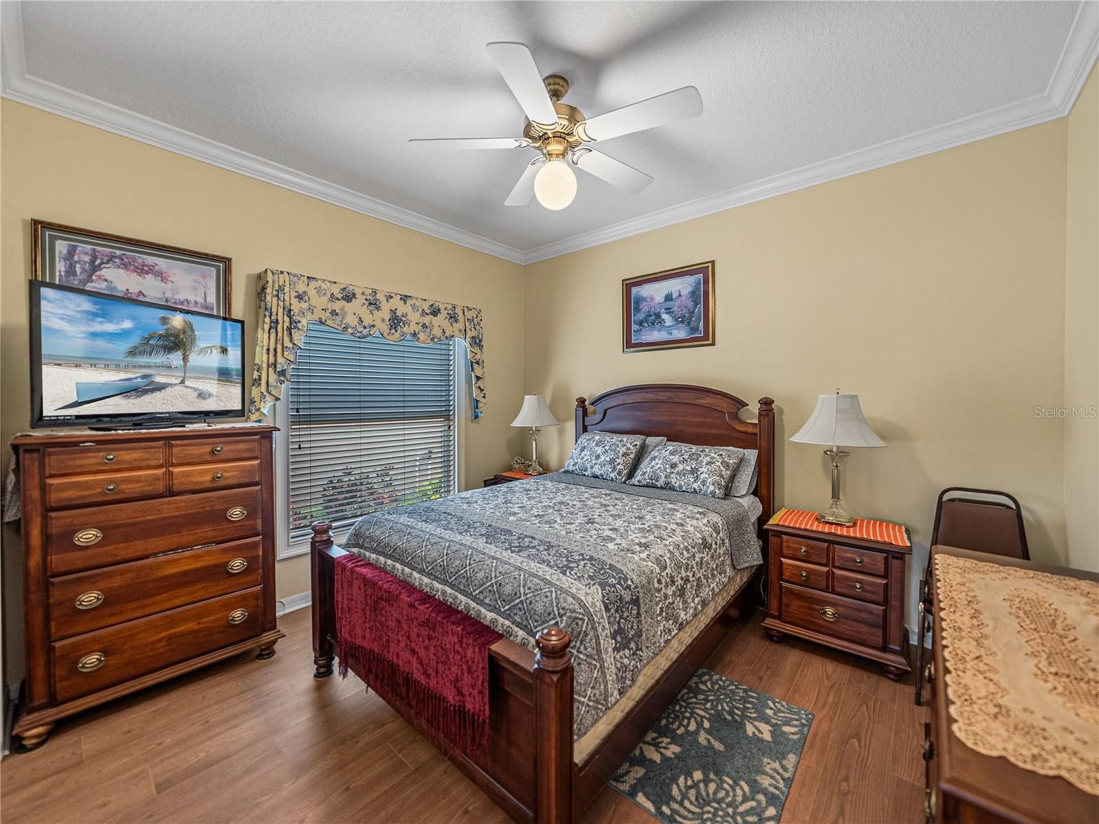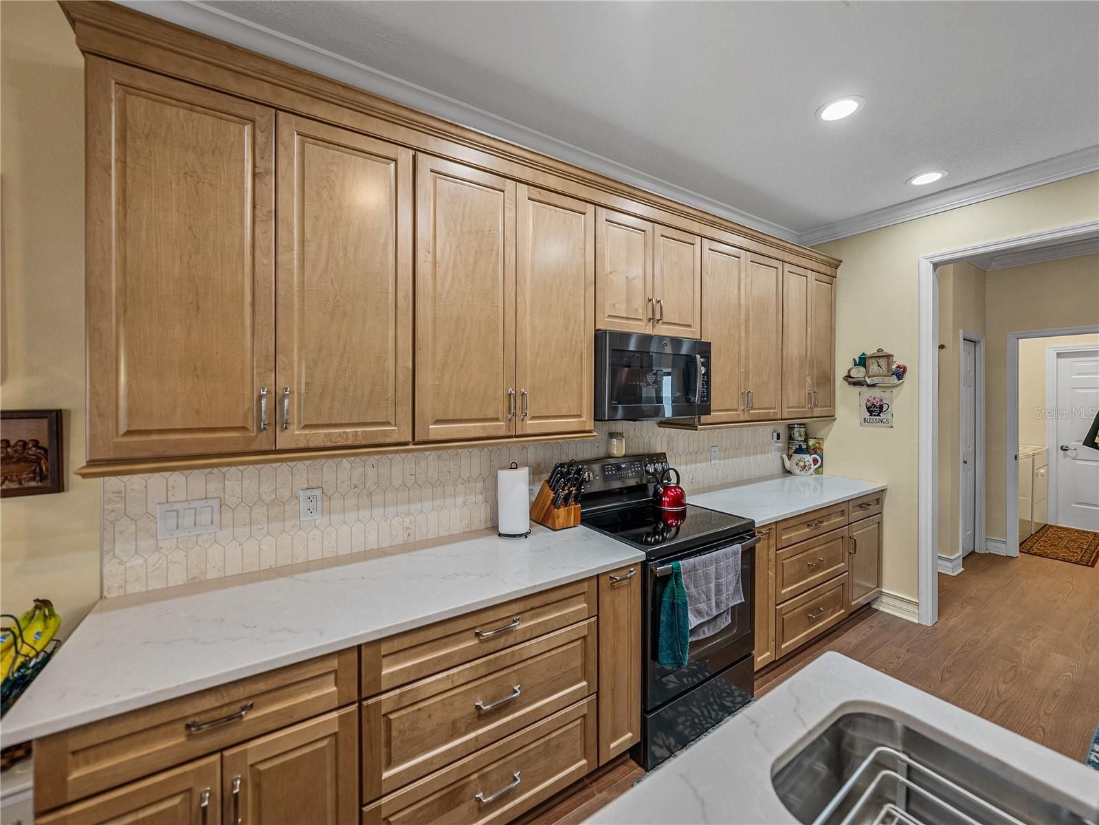 - Ceiling Fan(s), Crown Molding, Eat-in Kitchen, Living/Dining Room, Solid Surface Counters, Solid-Wood Cabinets, Walk-In Closet(s)