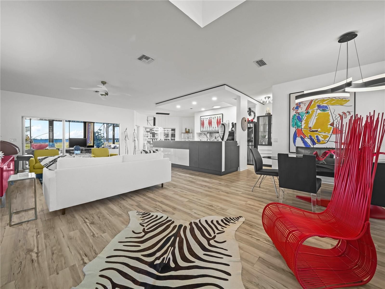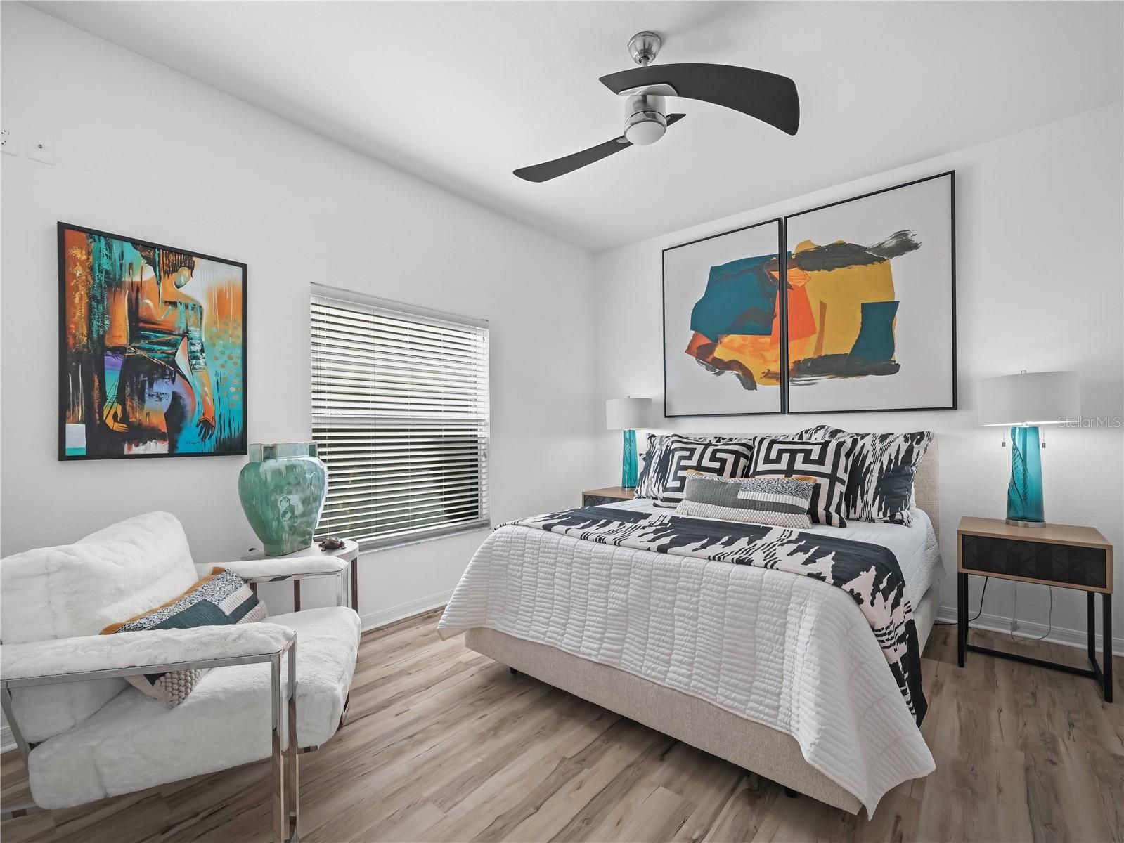 - Ceiling Fan(s), Eat-in Kitchen, Kitchen/Family Room Combo, Living/Dining Room, Open Floorplan, Split Bedrooms, Stone Counters, Thermostat, Walk-In Closet(s), Window Treatments