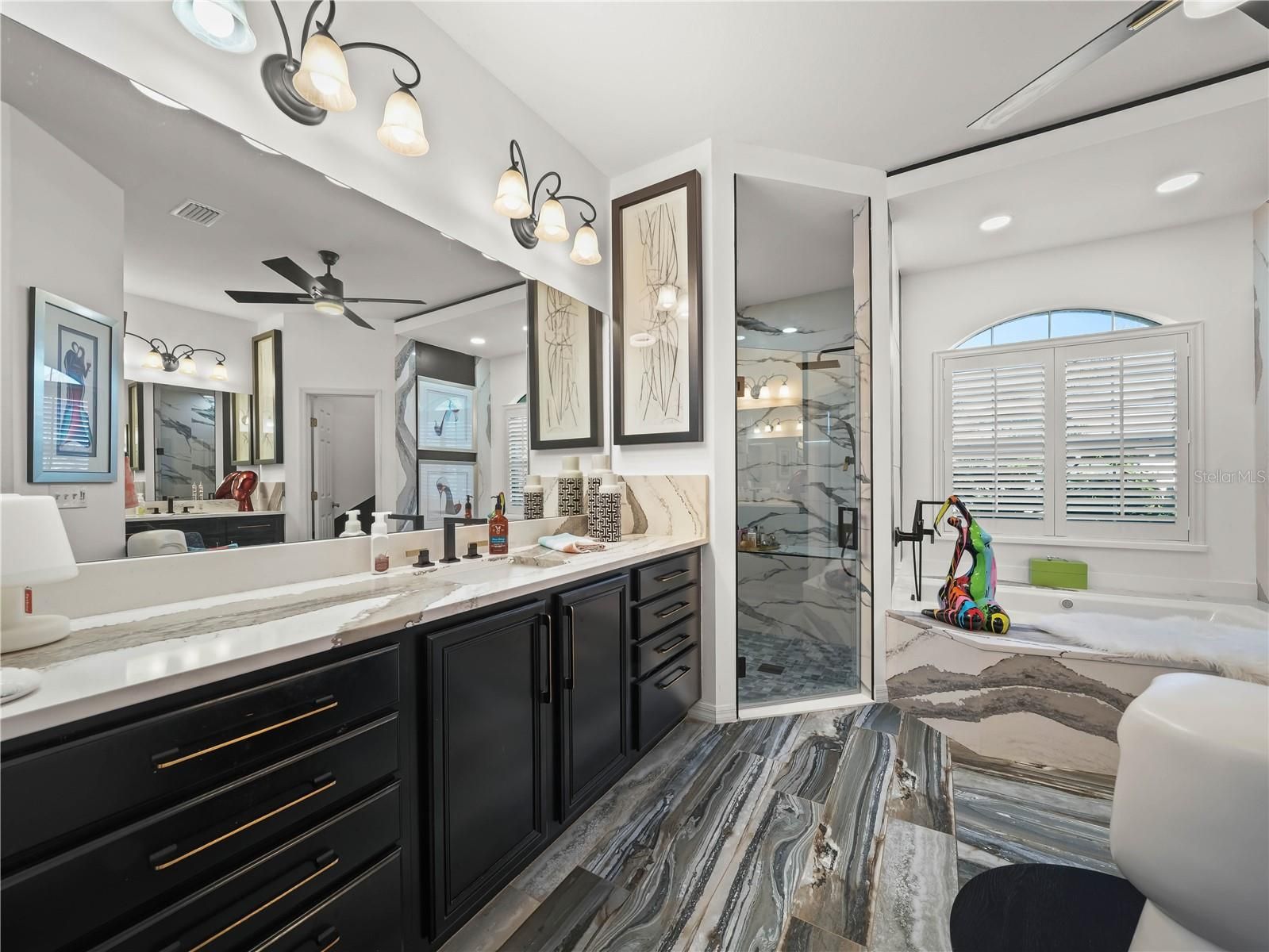 This type of home only becomes available once in a great while in Lake Ashton, an exclusive Florida 55+ community. 4083 Ashton Club Drive Lake Wales, Fl. offers modern-sleek upgrades throughout. This rare property overlooks the community's largest lake, Lake Ashton, and is located on the 4th Fairway of the East golf course. This 3-bedroom, 2-bath home offers over 2,477 square feet under air with interiors painted in a clean, crisp and inviting palette that complement the natural light. The thoughtful Tahiti floor plan includes a versatile third bedroom that could be a den, enhancing convenience and livability for owners and guests alike. A door in the 3rd bedroom provides access to the Florida Room with Acrylic windows, automatic screens and amazing water/golf course views! The Florida Room lives like another living room area. It's ideal for year-round indoor and outdoor living. Gorgeous landscaping frames the lake and golf views, creating a setting that will impress every guest. RELAX outdoors and soak up the Florida Sun in the screened BIRDCAGE with SUNBRELLA and unobstructed views. A two-car air-conditioned garage adds everyday comfort and extra flexibility for storage, hobbies or a climate-controlled workspace. Every detail, from the curb appeal to the interior finishes, has been considered to deliver a polished yet relaxed Lake Ashton Retirement lifestyle. Improvements in this home include an attractive EXTERIOR FINISH with stone accent, a double entry screened enclosure area at the front door, a separate paver sitting area, mature landscape and widened drive. MODERN LIGHTING fixtures can be found throughout. FRONT ENTRY has a Beveled Glass door, Double Sidelights & Eyebrow Glass Above. There is a manual pull screen, too. The oversized PRIMARY SUITE has HIS/HER Walk In Closets, a Granite accent wall and separate sitting area with golf course and water views. FLOORING: A combination of luxury vinyl flooring and tile flow throughout this home. PRIMARY BATH features Upgraded Hardware, Large Soaking AIR BUBBLE tub with Separate Hand Held sprayer, Bidet in the Water Closet, Large Walk In Shower with GLASS DOOR ENTRY, a Rain Shower Head with Hand Held Sprayer, Sitting Bench and Recessed Shelf. Quartz Counter Tops, Plantation Shutters and Ceiling Fan accent this room. The upgraded KITCHEN has a Wolf Induction Stove Top/Wolf Hood, Miele Steam Oven, Warming Drawer, Quartz/Corian Counter Tops, 2 Sinks, 2 Garbage Disposals, Custom Walk In Pantry, Custom Built In Cabinets with Full Extension and Soft Close, Solar Tube and MORE. The newly renovated LAUNDRY ROOM has a custom storage area, wash sink with tiled backsplash, cabinets and double stack washer/dryer. The GUEST BATH offers a comfort height vanity & retiled shower/tub combo with recessed shelf. Auto-Hurricane Shutters on Select Windows, and MORE!!! Living in Lake Ashton means enjoying a Clubhouse w/Outdoor Temp. Controlled Pool, Movie Theater, Bowling Lanes, Bocce Courts, Fitness Center, Grand Ballroom, Tennis & Shuffleboard Courts. The Health & Fitness Center offers a large Indoor Temperature controlled pool, Indoor 1/2 Court Basketball & Racquetball, Tennis & Pickle Ball Courts, Card, Craft and Billiards. Residents w/Golf Memberships enjoy 36 holes of Golf on the East and West Golf Courses in Lake Ashton. There is a Pro-Shop and Eagles Nest (19th Hole/Pub Style Food). Roof was replaced 2021. Birdcage Installed 2022. The Brown/Tan Club Car Golf Cart will be included in the sale.