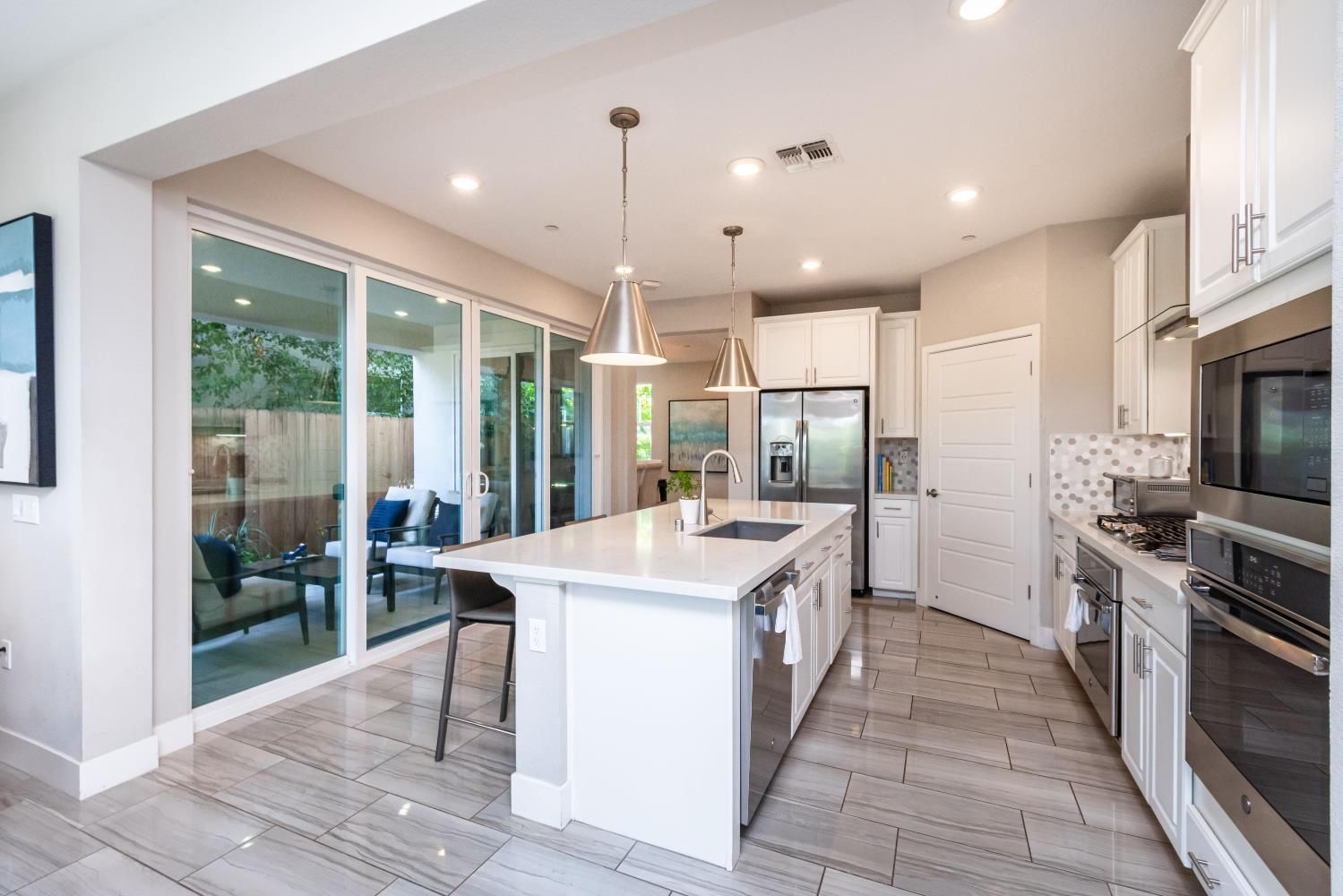 Now is the time to discover this exquisite former model home in the prestigious 55+ gated community of Heritage Solaire where luxury, comfort, and resort-style living come together. Showcasing over $50,000 in premium upgrades, this home truly spared no expense. From the moment you arrive, the inviting courtyard entry welcomes you into a thoughtfully designed open layout, ideal for both everyday living and entertaining. Inside, you'll find premium tile flooring, designer wall treatments, custom curtains, and plantation shutters, all complimented by modern finishes and exceptional craftsmanship throughout. The gourmet kitchen anchors the home, seamlessly flowing into the great room and dining area, and extending to the coveted indoor-outdoor California Room creating the perfect space to gather, relax, and entertain. State-of-the-art appliances, energy-efficient features, and integrated smart home technology elevate both style and functionality. Step outside to your own private retreat an entertainer's dream featuring a built-in BBQ kitchen, checkerboard pavers, and a year-round putting green, all surrounded by beautifully landscaped grounds designed for low-maintenance enjoyment. Ideally located near golf courses, parks, scenic trails, dining, and shopping, this home also offers added convenience with HOA-maintained front yards and solar service through Roseville Electric Utilities. As a resident of Heritage Solaire, you'll enjoy access to the impressive Sol Centre clubhouse, offering a resort-inspired lifestyle with a pool, spa, fitness center, pickleball, tennis, bocce ball, BBQ areas, wine bar, garden, amphitheater, and vibrant social spaces. This is more than a home it's a lifestyle. Don't miss your opportunity to own one of the community's most upgraded and beautifully appointed residences.