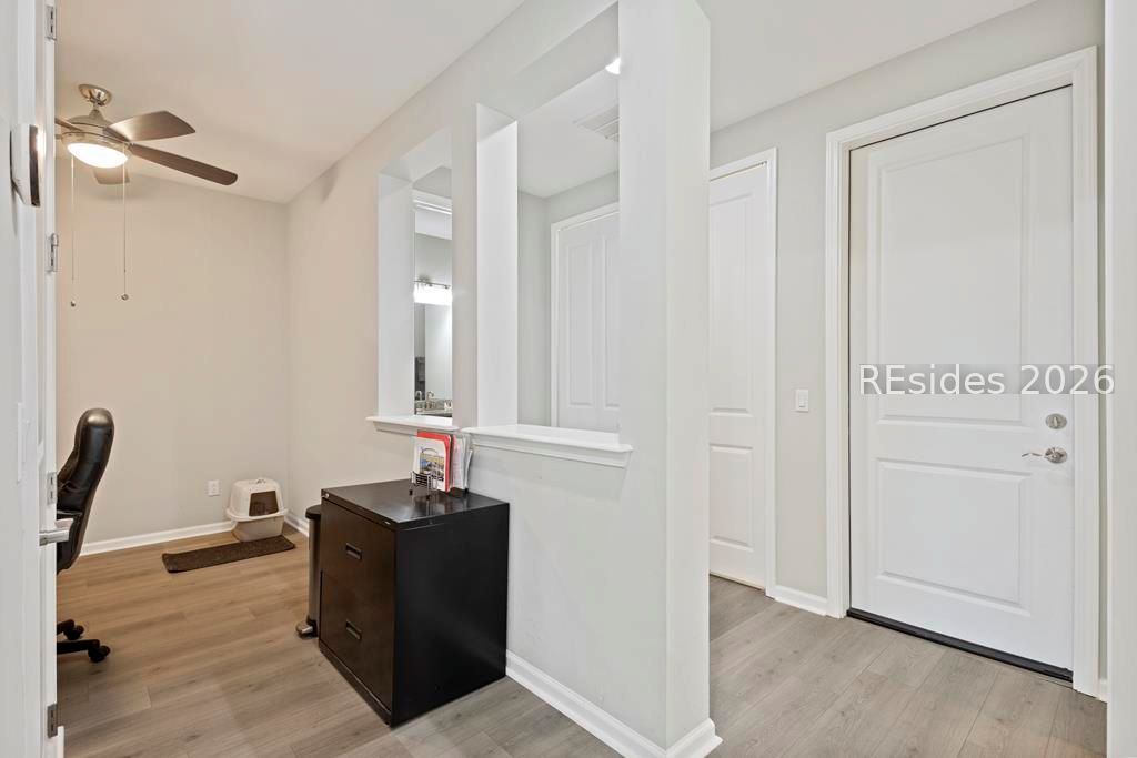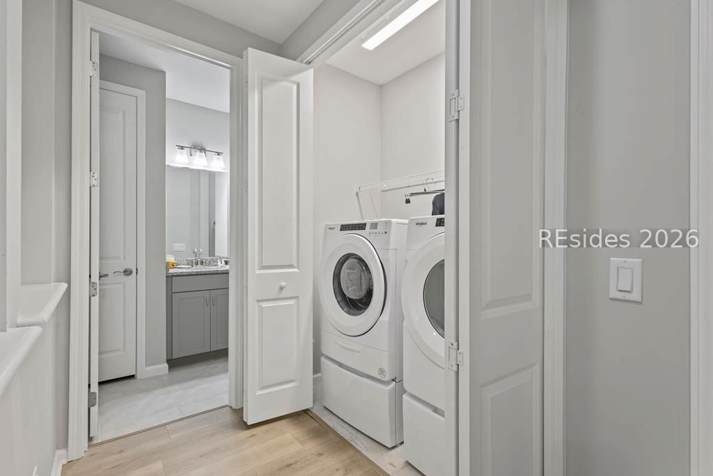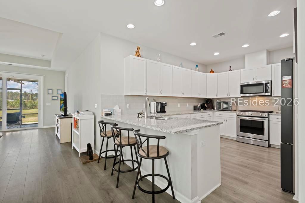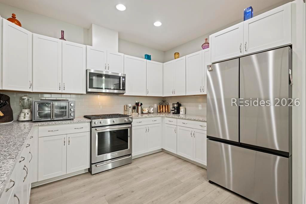 Spectacular lagoon-view Jamaica Villa in Latitude Margaritaville-set on a premier homesite so you can skip the build and start living the resort lifestyle now. This move-in-ready 2BR/2BA home with a flex room (den/office) features LVP flooring throughout and a bright, open layout with excellent bedroom separation. Wake up to calming water views from the primary suite, complete with double vanity and a tiled shower. The oversized eat-in kitchen offers abundant soft-close cabinetry, granite countertops, stainless-steel appliances, and a pantry-ideal for entertaining or easy everyday living. Laundry includes Whirlpool washer & dryer on pedestals. Relax to Lowcountry breezes from the screened porch plus a paver patio extension overlooking the lagoon. Additional upgrades include updated ceiling fans and light fixtures, and a 2-car garage with an epoxy floor. Bonus: 3.75% assumable VA mortgage (qualified buyers). Resort-style amenities include : 3 pools, Theatre, 2 Fitness Centers, Restaurant, Tennis, Basketball, Bocce, Pickleball, 2 Dog Parks, walking trails and miles of sidewalks. Additionally there is a Lake Club with a beach, kayaks/canoes, library, Ballroom, Yoga room, Ping Pong and porches to take in a gorgeous sunset. Don't wait-see the Matterport 3D tour and schedule your private showing today!