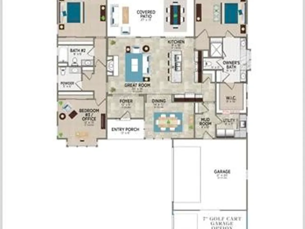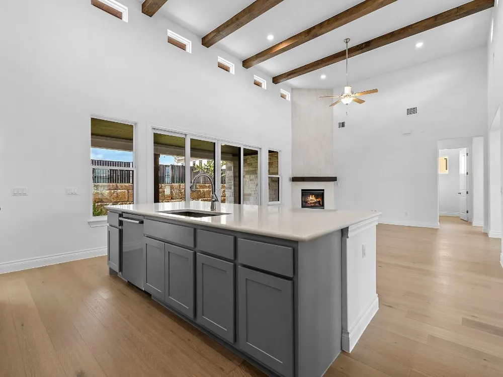 - Ceiling Fan(s), Double Vanity, Entrance Foyer, Granite Counters, Kitchen Island, Main Level Primary, Open Floorplan, Pantry, Storage, Solid Surface Counters, Vaulted Ceiling(s), Walk-In Closet(s)