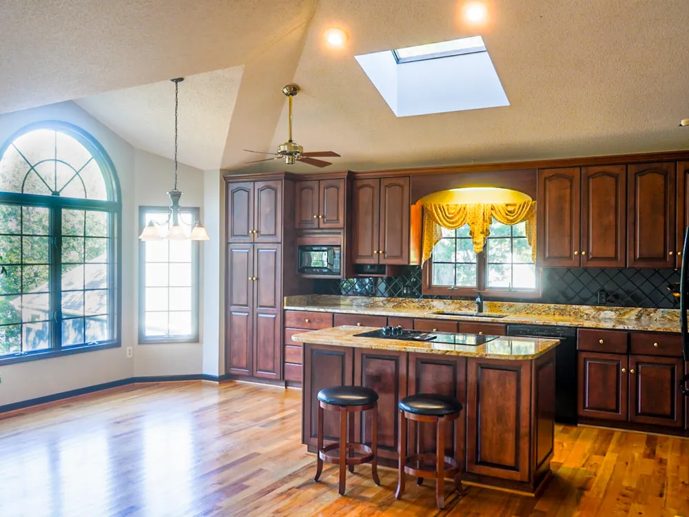 - Blinds, Kitchen Island, Wired for Data, Washer/Dryer Hookup, Wallpaper, Smoke Detector, Skylights, Eat-in Kitchen, Furnace Room, Entrance Foyer, Electric Dryer Hookup, Cable TV, Built-in Features