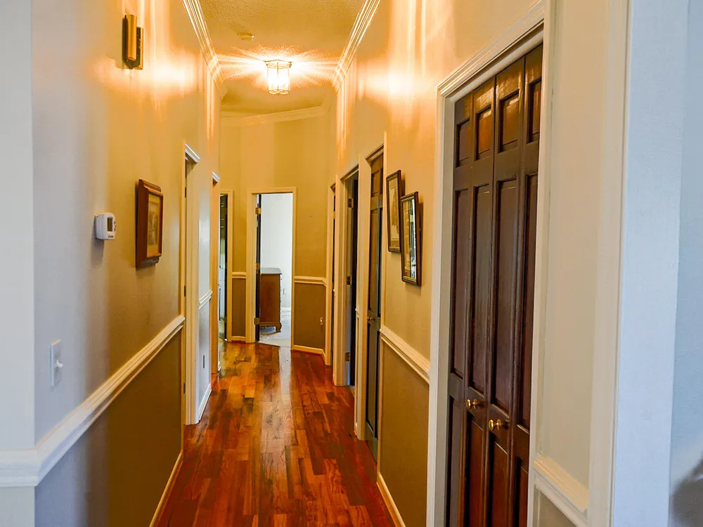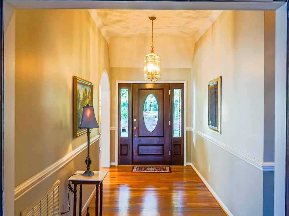 Classic Lakeside Living with Timeless QualityDiscover a piece of Savannah Lakes Village history with this exceptionally well-built, expansive home. Constructed in 1994 by renowned Spratlin Home Builders near the community's inception, this 4,200 sq ft brick and vinyl residence boasts solid construction and enduring quality that defines classic craftsmanship.Breathtaking Views and Prime LocationThis home is perfectly positioned to capture spectacular north-facing views of the Little River and its private cove. This tranquil setting provides a stunning natural backdrop from nearly every room.Main Level EleganceThe main level is designed for both formal entertaining and comfortable living:Formal Spaces: Enjoy a traditional formal living room and dining room, ideal for hosting holidays and gatherings.Private Retreats: A secluded private library offers a perfect space for a home office or quiet study.Primary Suite: The spacious primary suite offers comfort and direct access to a screened-in porch, allowing you to start and end your day taking in the serene lake environment.Views: Large, north-facing windows throughout the main level capture the breathtaking water views.Lower Level VersatilityThe expansive lower level is a true hub for recreation and hobbies, offering endless possibilities:Entertainment: An oversized game room is ready for fun and relaxation.Amenities: Includes a dedicated wine cellar and a versatile hobby room.Workshop: A full workshop provides the perfect space for projects, complete with a convenient golf cart garage door for easy access and storage.Guest Quarters: Features two additional bedrooms and a full bath, perfect for hosting family or guests.The main level opens onto an expansive open deck, seamlessly connecting the home to the stunning natural landscape and offering multiple access points to enjoy the serene private cove.This is a rare opportunity to own a piece of the community's legacy--a home where quality construction meets an irreplaceable waterfront view.