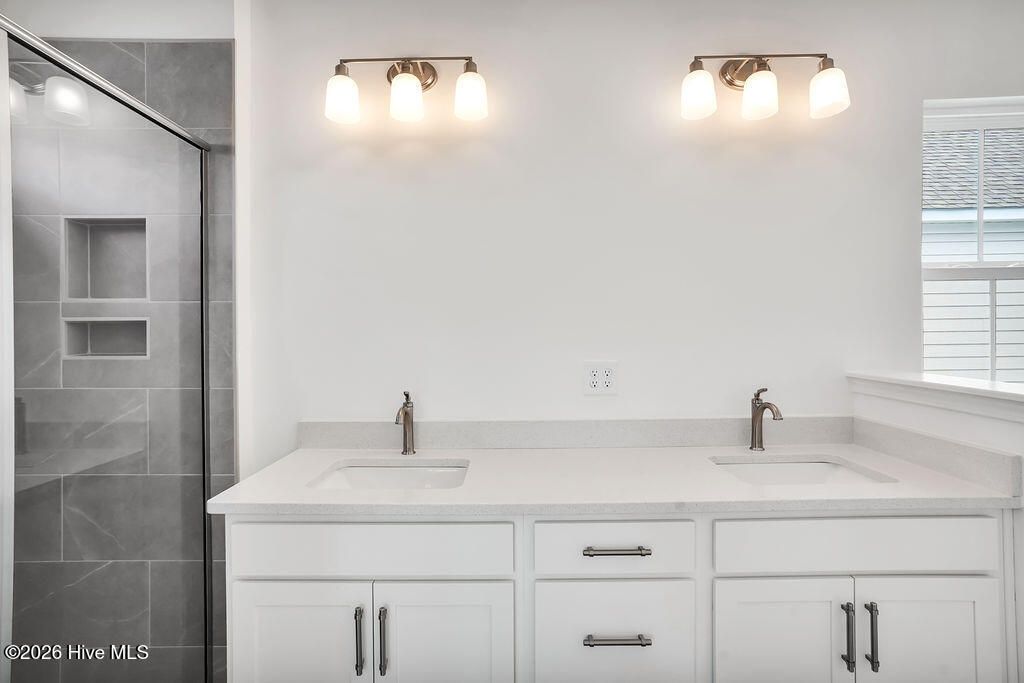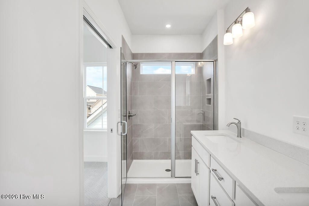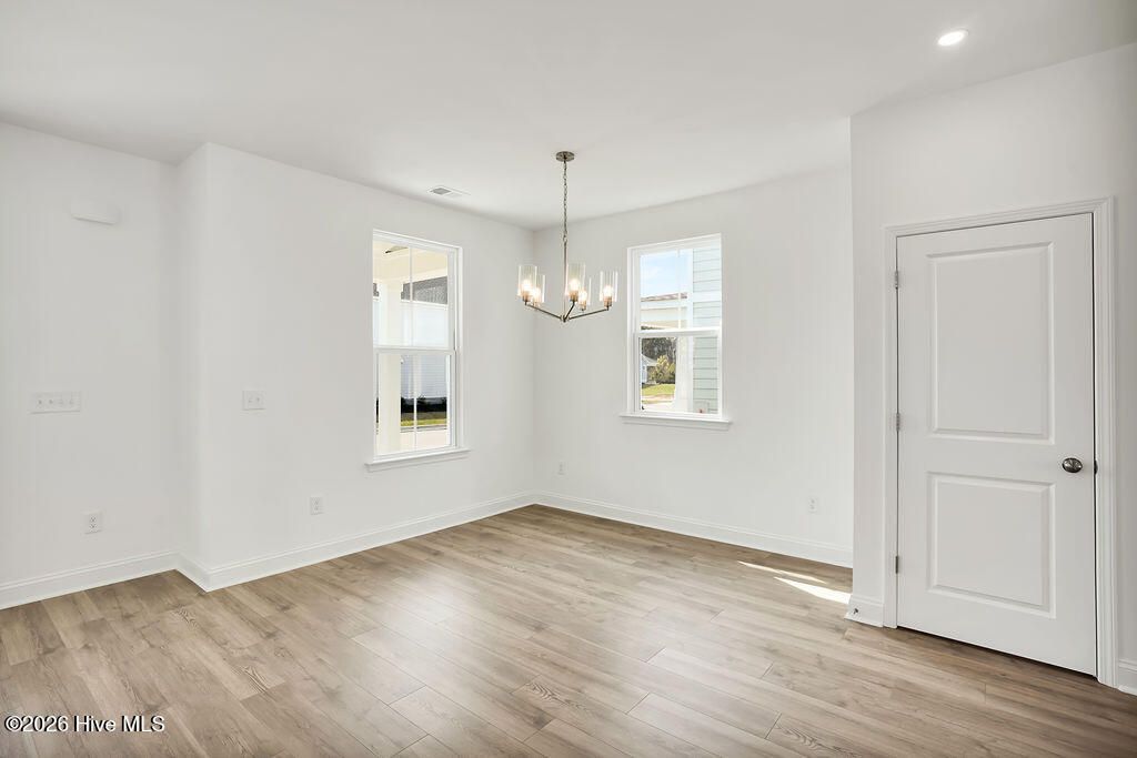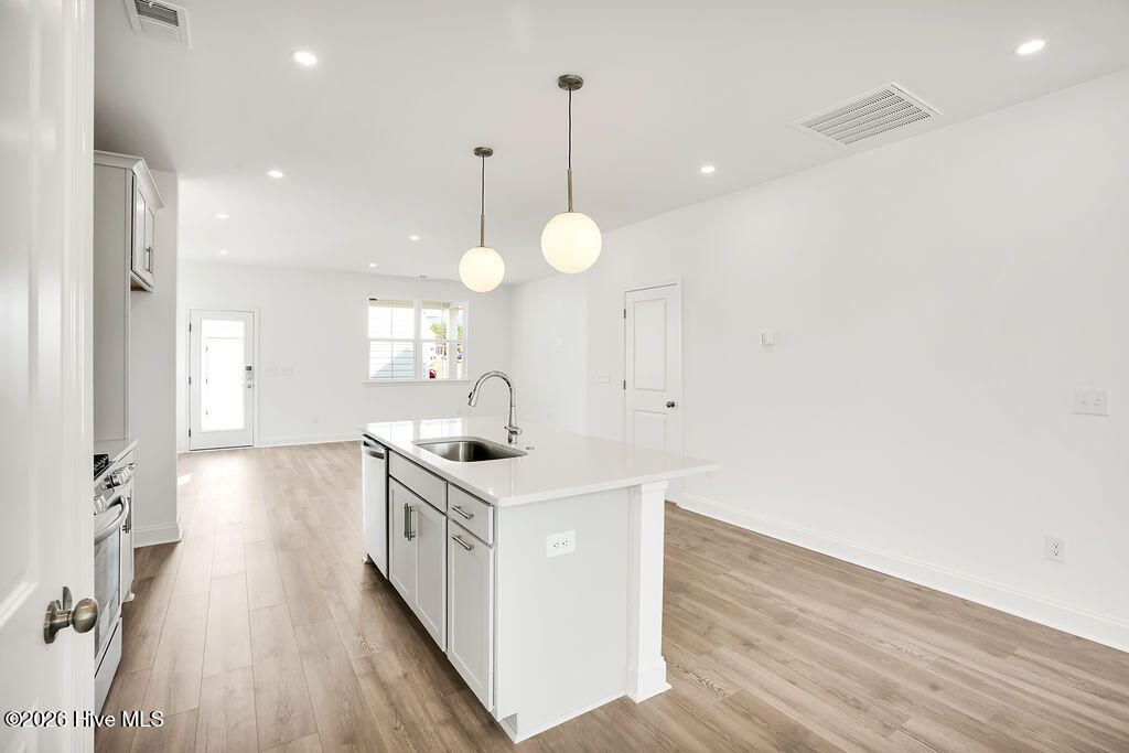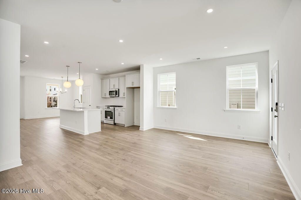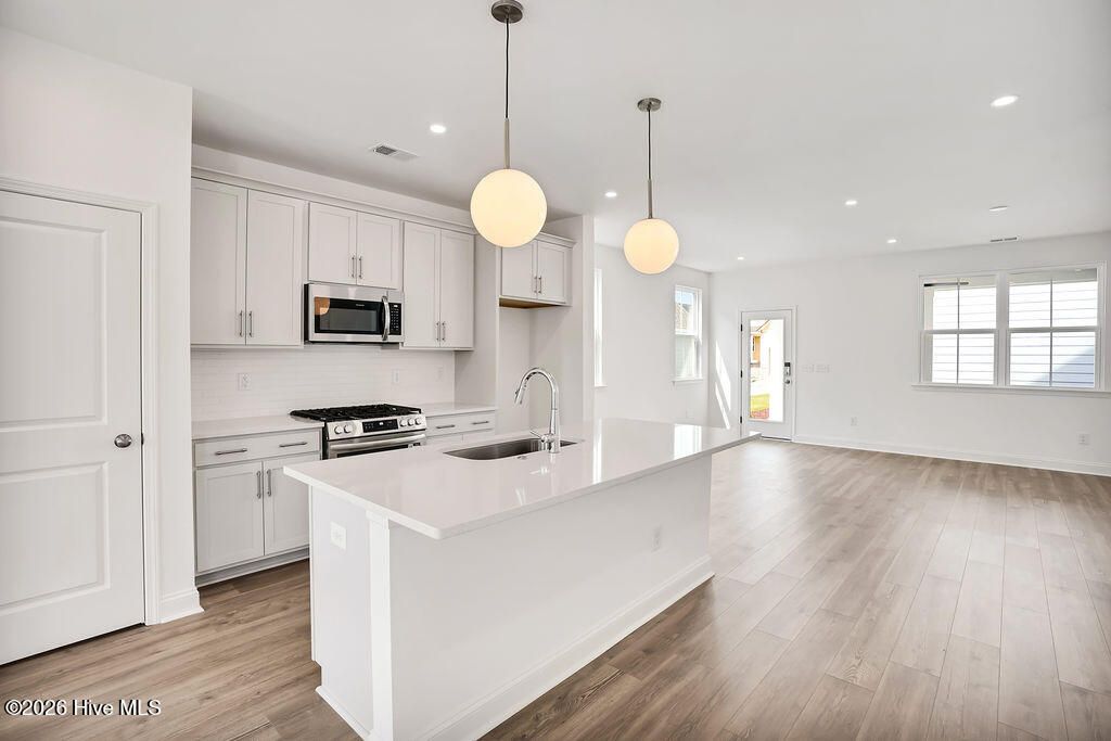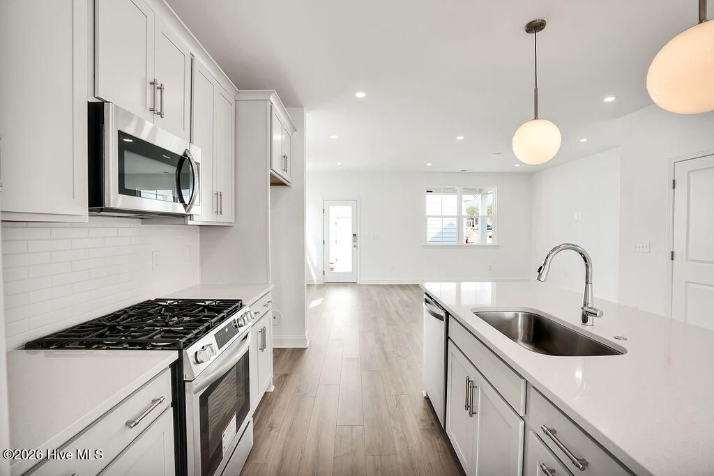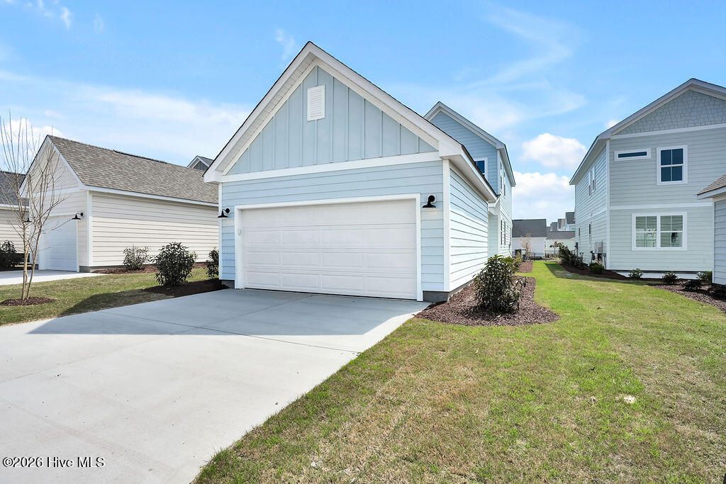 Quick Move-In home! The Haywood built by New Leaf Builders features 3 bedrooms and 2.5 baths with an inviting open floor plan filled with natural light. The kitchen showcases Blanco Maple quartz countertops, Frost 42'' upper cabinets, and stainless steel appliances, including a gas range, microwave, and dishwasher. Upstairs, the primary suite offers comfort and style. The primary bathroom features a white dual vanity topped with Blanco Maple quartz countertop and a tiled walk-in shower. Two additional guest bedrooms and a full guest bath complete the upper level. Enjoy outdoor living on the covered back porch, perfect for relaxing or entertaining. A detached two-car garage provides convenience and additional storage. Riverlights is a new home community surrounded by the coast and Cape Fear River, where nature is part your everyday routine. With easy access to the Cape Fear River, the intercoastal waterways, a family-friendly pool, a new dog park, gym and a 38-acre lake, you can kayak, paddleboard or stroll along the community dock any time of day. Enjoy the three-mile loop around the lake and scenic nature trails that weave throughout Riverlights. Conveniently located minutes to Historic downtown Wilmington, beaches, restaurants and shopping the location of Riverlights is unbeatable. [Riverlights] [The Haywood]