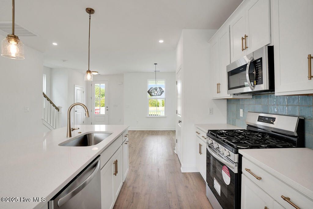 Estimated Completion: Spring 2026! The Haywood built by New Leaf Builders features 3 bedrooms and 2.5 baths with an inviting open floor plan filled with natural light. The kitchen showcases Blanco Maple quartz countertops, Frost 42'' upper cabinets, and stainless steel appliances, including a gas range, microwave, and dishwasher. Upstairs, the primary suite offers comfort and style. The primary bathroom features a white dual vanity topped with Blanco Maple quartz countertop and a tiled walk-in shower. Two additional guest bedrooms and a full guest bath complete the upper level. Enjoy outdoor living on the covered back porch, perfect for relaxing or entertaining. A detached two-car garage provides convenience and additional storage. Riverlights is a new home community surrounded by the coast and Cape Fear River, where nature is part your everyday routine. With easy access to the Cape Fear River, the intercoastal waterways, a family-friendly pool, a new dog park, gym and a 38-acre lake, you can kayak, paddleboard or stroll along the community dock any time of day. Enjoy the three-mile loop around the lake and scenic nature trails that weave throughout Riverlights. Conveniently located minutes to Historic downtown Wilmington, beaches, restaurants and shopping the location of Riverlights is unbeatable.