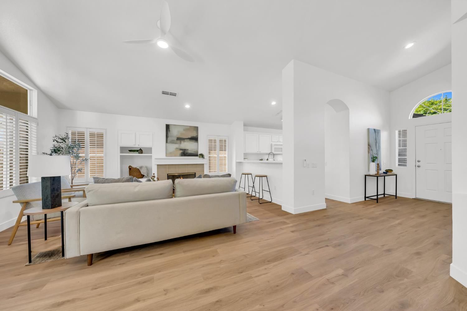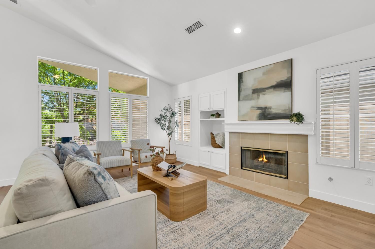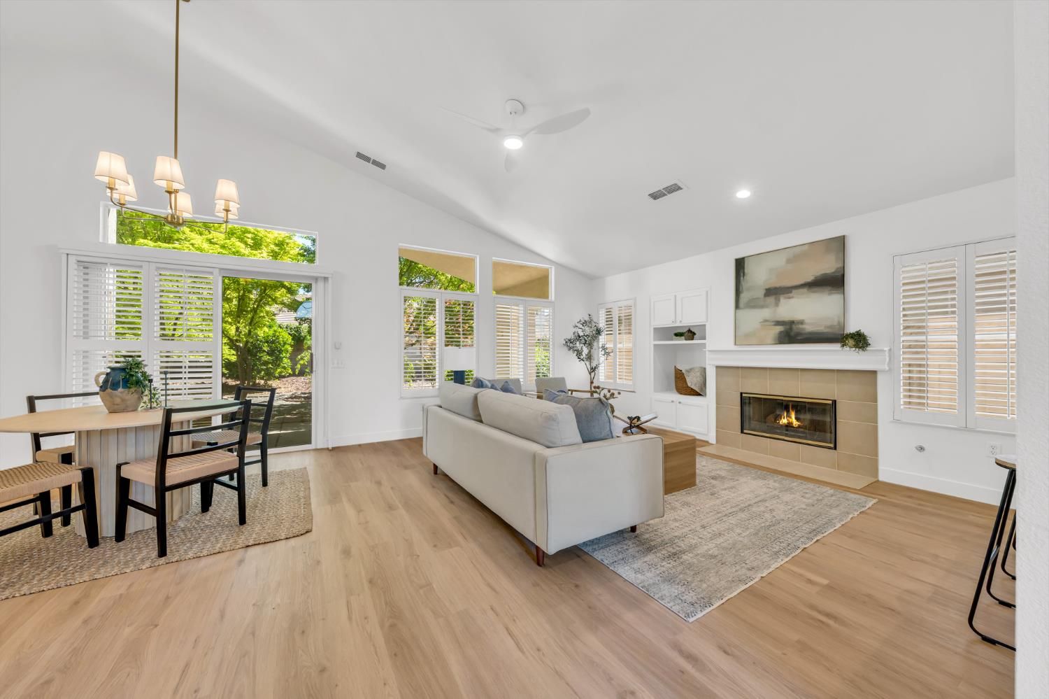 Completely refreshed and move-in ready, this Sun City Roseville rose tree floor plan has been thoughtfully upgraded from top to bottom. Luxury vinyl plank flooring flows seamlessly throughout, complemented by new 4-inch baseboards, fresh interior paint, and updated lighting that creates a bright, cohesive feel in every room. The kitchen features granite countertops, while both bathrooms have been elevated with quartz surfaces and updated finishes. Added cabinet hardware throughout brings a polished, cohesive touch. A cozy log fireplace with gas starter adds warmth and everyday convenience perfect for relaxing evenings at home. Designed for easy, low-maintenance living, every detail has been considered just move in and enjoy.