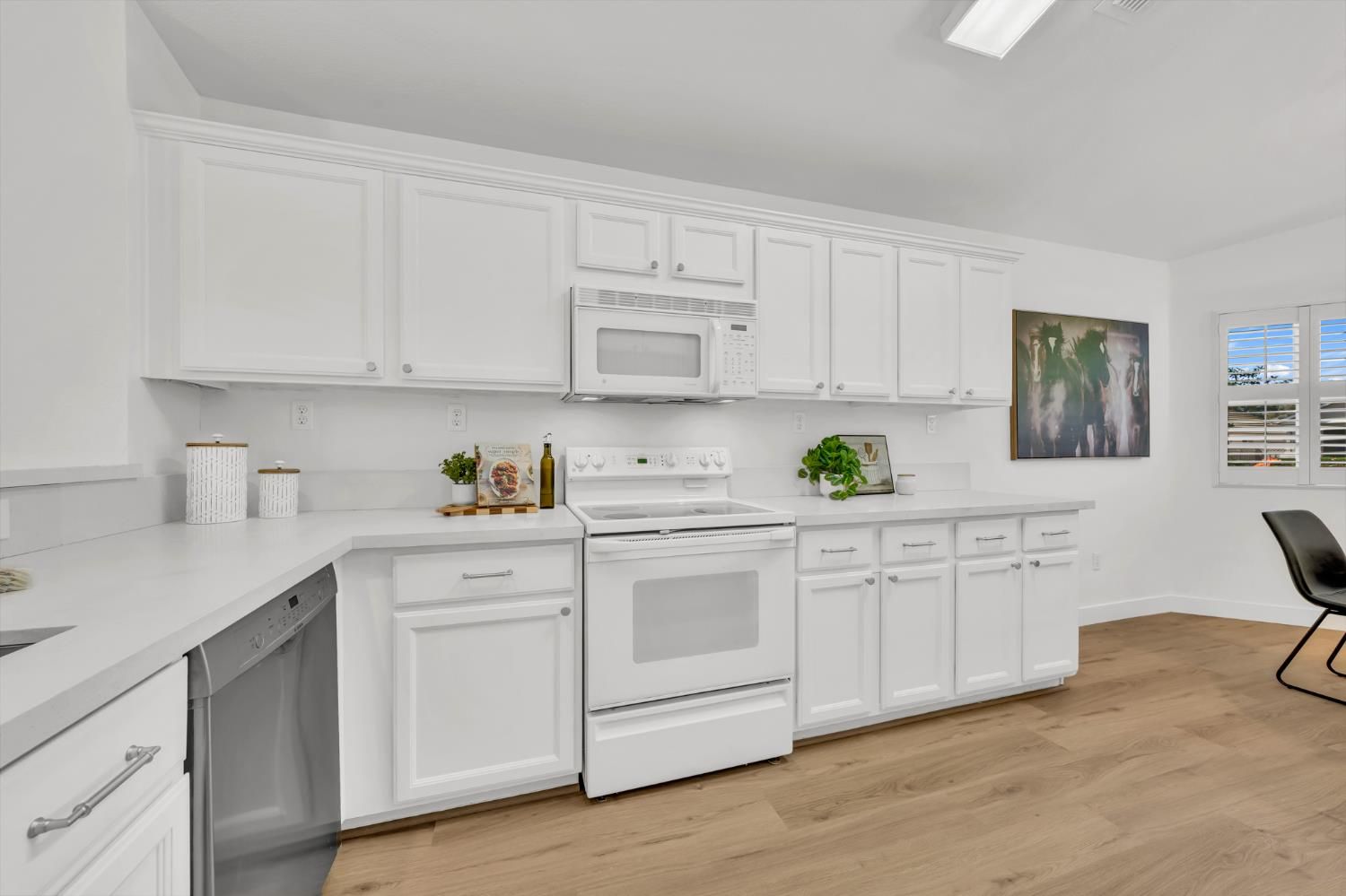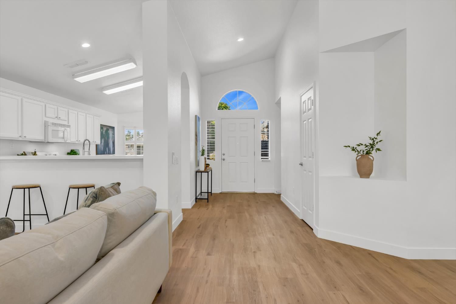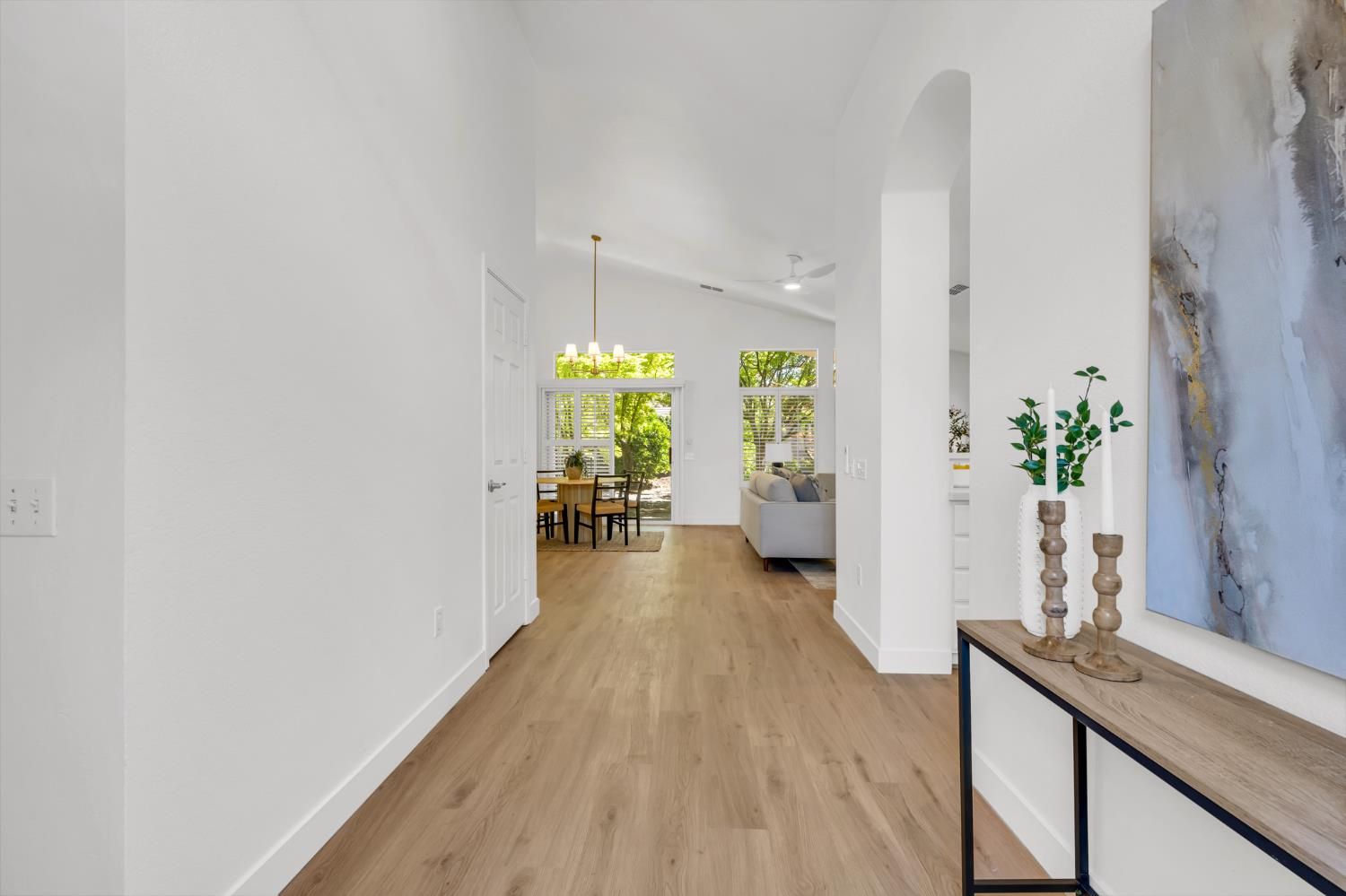 Completely refreshed and move-in ready, this Sun City Roseville rose tree floor plan has been thoughtfully upgraded from top to bottom. Luxury vinyl plank flooring flows seamlessly throughout, complemented by new 4-inch baseboards, fresh interior paint, and updated lighting that creates a bright, cohesive feel in every room. The kitchen features granite countertops, while both bathrooms have been elevated with quartz surfaces and updated finishes. Added cabinet hardware throughout brings a polished, cohesive touch. A cozy log fireplace with gas starter adds warmth and everyday convenience perfect for relaxing evenings at home. Designed for easy, low-maintenance living, every detail has been considered just move in and enjoy.