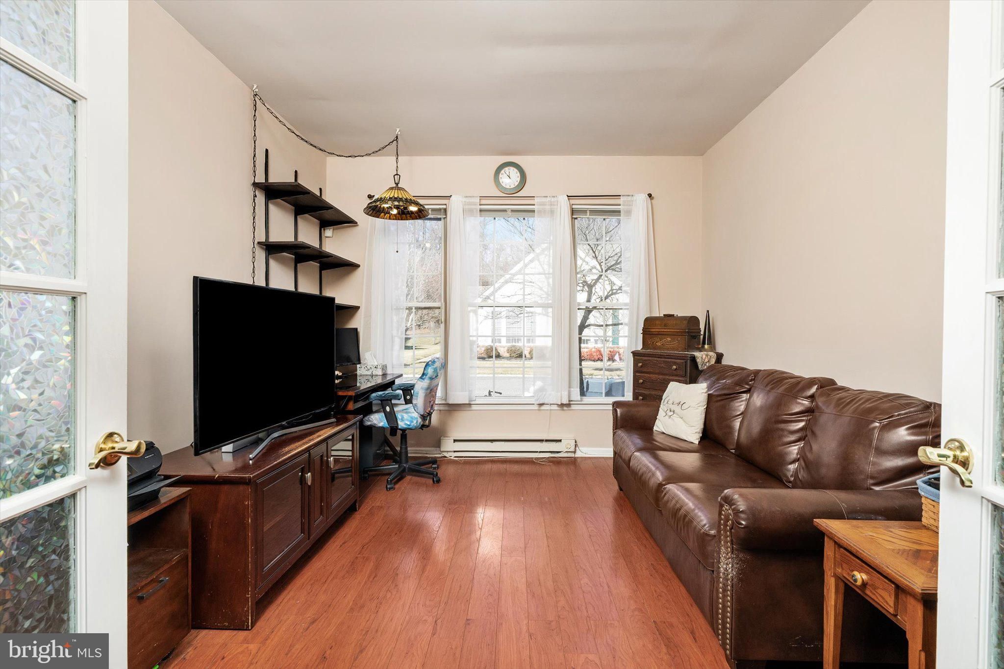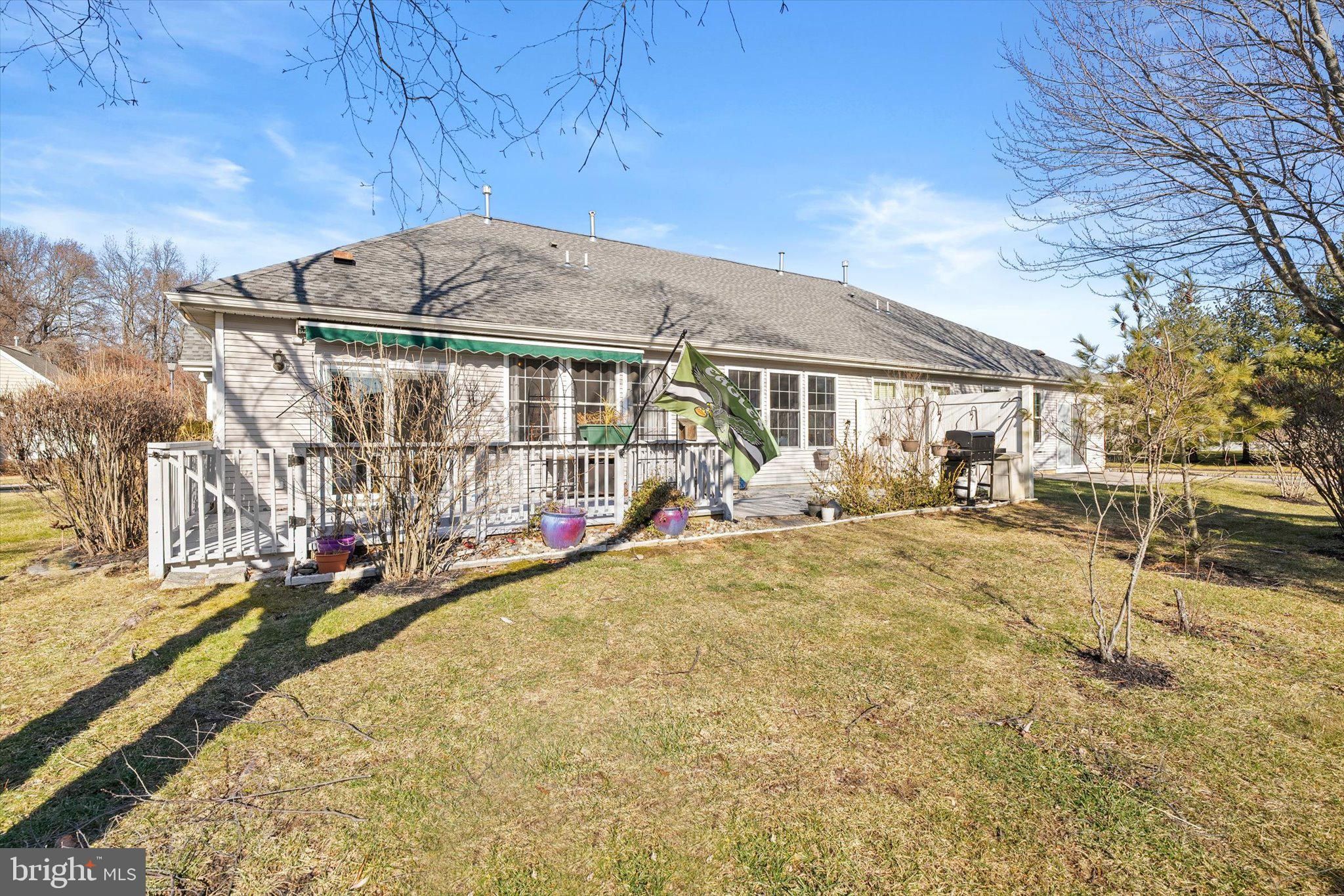 Nestled deep within Locusts Hill, this 2 bed, 2 bath with den Dogwood model is ready for you to call it home! As you enter the front door, the double french doors offer the perfect home office or quiet living retreat. Dedicated spaces for living, dining, and kitchen provide you distinct areas of the home while offering great site lines between each of them. The spacious primary suite includes an en suite bath and walk-in closet. A second bedroom, full guest bath and laundry area complete the interiors. The backyard space includes an expanded deck and patio area with privacy landscaping. Loads of upgrades during the seller's 10 years of ownership. Kitchen refresh in 2021 with new counters, backsplash and sink. Primary bath refreshed with new shower, counter and sink. Guest bath refreshed with new sink and bathroom cabinet. PLUS...roof replacement in 2020 and newer HVAC, kitchen appliances, windows in primary, slider in kitchen, and remote controlled blinds in living room.