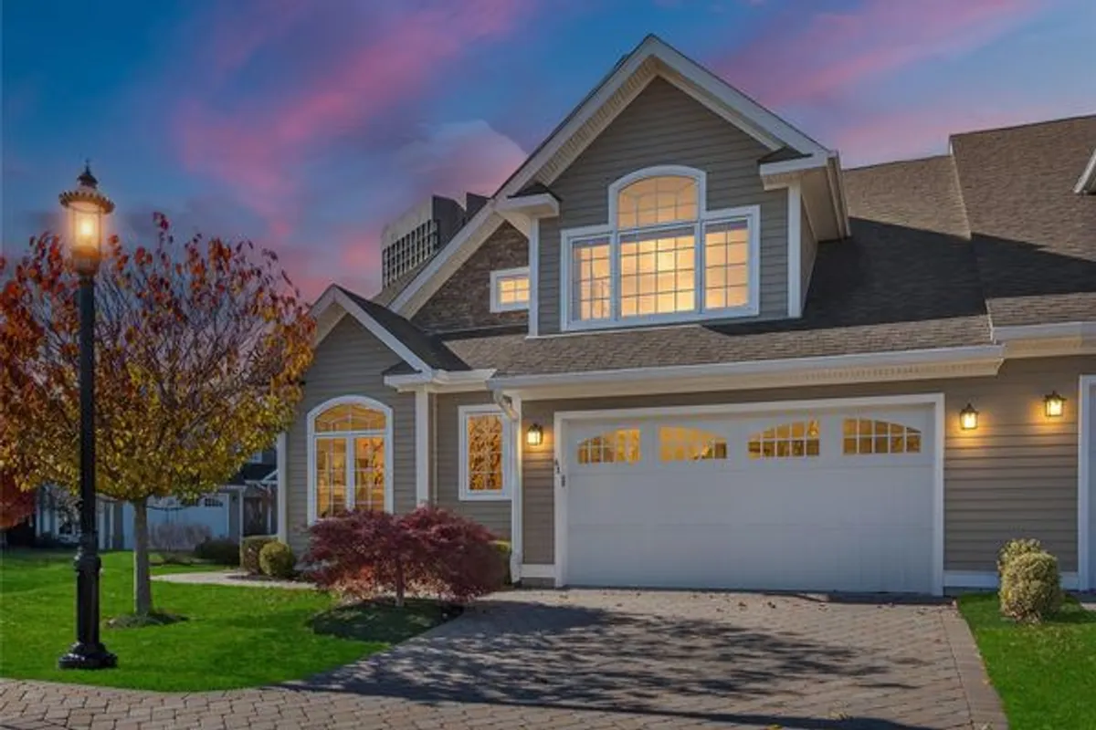 Luxury End Unit - in a Premier 55+ Community. This exceptional 2-bedroom (Primary bedroom on the main floor + 1 additional bedroom on the upper floor), 2.5-bath end-unit Townhome with a private side entry is a rare opportunity in one of the area’s most desirable 55+ luxury communities. Surrounded by mature landscaping and filled with natural light, this residence offers refined living inside and out. The interior showcases hardwood floors throughout, custom crown molding and trim, and oversized windows. The main level includes a sun flooded formal dining room to the great room with cathedral ceiling and gas fireplace. A walk-in laundry room, and a gourmet kitchen with a double - wall oven and separate cooktop and pantry with rollout drawer features. Off the family room is the oversized patio with custom full size electric awning surrounded by large - mature privacy landscaping. The main floor - primary suite features a custom built-in walk-in closet and a spa-inspired bath with walk-in shower. Upstairs, enjoy the sun filled loft and additional walk in closet, and the second spacious bedroom with a large walk in closet and spacious en-suite bathroom. The home has a soft water system installed along with central vacuum. The main floor windows enjoy privacy tint for added comfort. Community Residents have access to a wide variety of amenities including: sparkling outdoor pool with sundeck and private cabanas, Bocce court, tennis courts, and putting green for year-round recreation and scenic walking trails perfect for exercise or leisurely strolls. Additionally, a clubhouse featuring a state-of-the-art fitness center, multipurpose rooms, and elegant dining areas for social gatherings and events. This community offers the perfect balance of leisure and activity in a welcoming setting. This move-in ready end unit is the perfect blend of elegance, comfort, and convenience—set within a vibrant 55+ community.