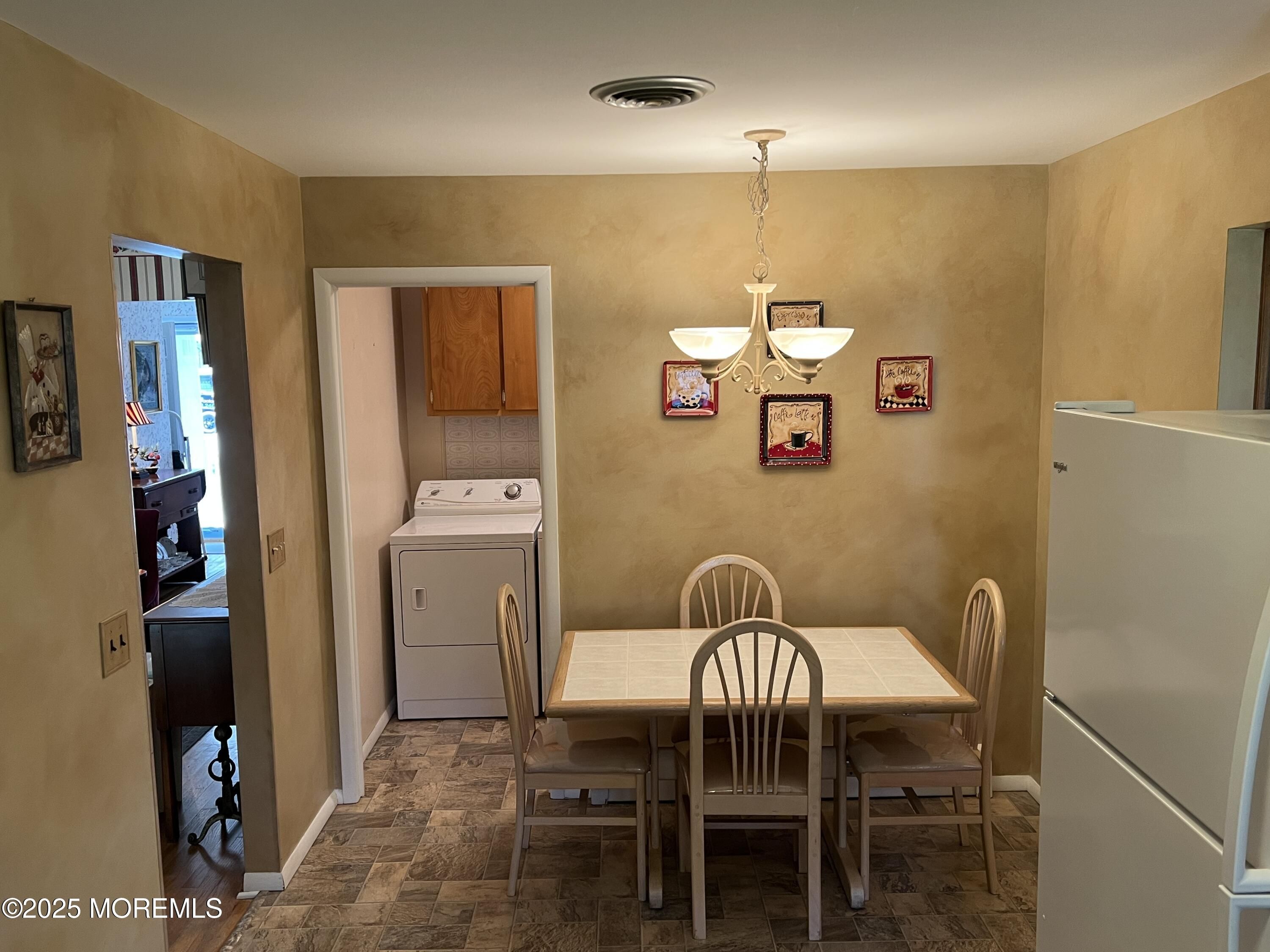 Meticulously maintained 2 BR 2 BA home in the desirable Silver Ridge Park Westerly adult community. This spacious layout features a primary BR w/full bath, an eat-in kitchen, dining rm, living rm, and a cozy den w/fireplace. A bonus rm adds an extra 110 sq ft, perfect for office or hobby space. Laundry rm and abundant storage throughout. Recent updates include a new A/C unit and new sliding glass doors. Outdoors you'll find a cement patio, well for outdoor sprinklers, and peaceful natural surroundings. Community clubhouse offers activities and pool for an active lifestyle.