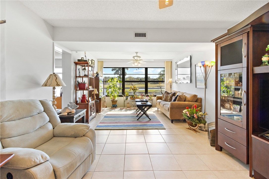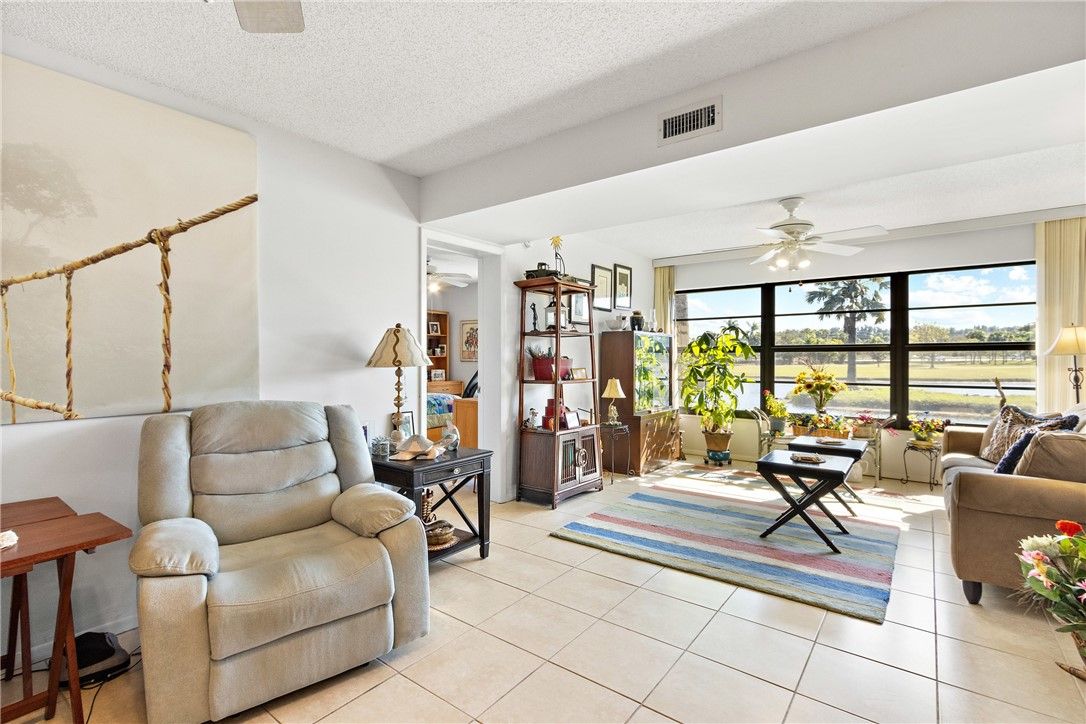 Charming FIRST FLOOR condo boasting stunning lake & golf course views! Beautifully renovated kitchen features sleek stainless steel appliances & spacious pantry! Enjoy an installed osmosis water filtration system. Oversized tile floors throughout add a modern touch, while impact windows & hurricane shutters add an extra layer of comfort. Enjoy a huge walk-in primary closet, walk-in shower & split spacious bedrooms! Convenience of in-unit washer/dryer, an covered parking space, plus amenities like heated pools, pickle ball, bocce ball & more! Golf course open to public! Close to beach/shopping!