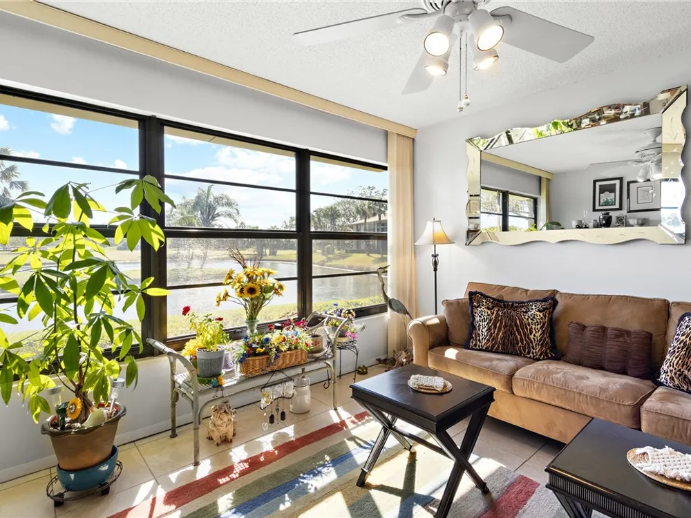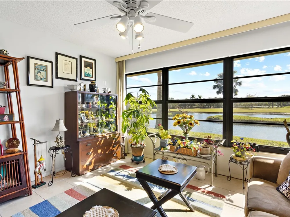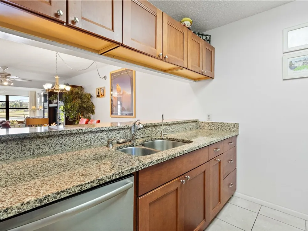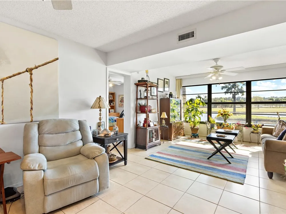 Charming 1st fl condo boasting stunning lake & golf course views! Beautifully renovated kitchen features sleek stainless steel appliances & spacious pantry! Enjoy fresh, clean water w/ installed osmosis filtration system! Oversized tile floors throughout add a modern touch, while impact windows & added electric hurricane shutters add an extra layer of comfort! Enjoy a huge walk-in primary closet, walk-in shower & split spacious bedrooms! Convenience of in-unit washer/dryer, plus amenities like heated pools, pickle ball, bocce ball & more! Golf course open to public! Close to beach & shopping!